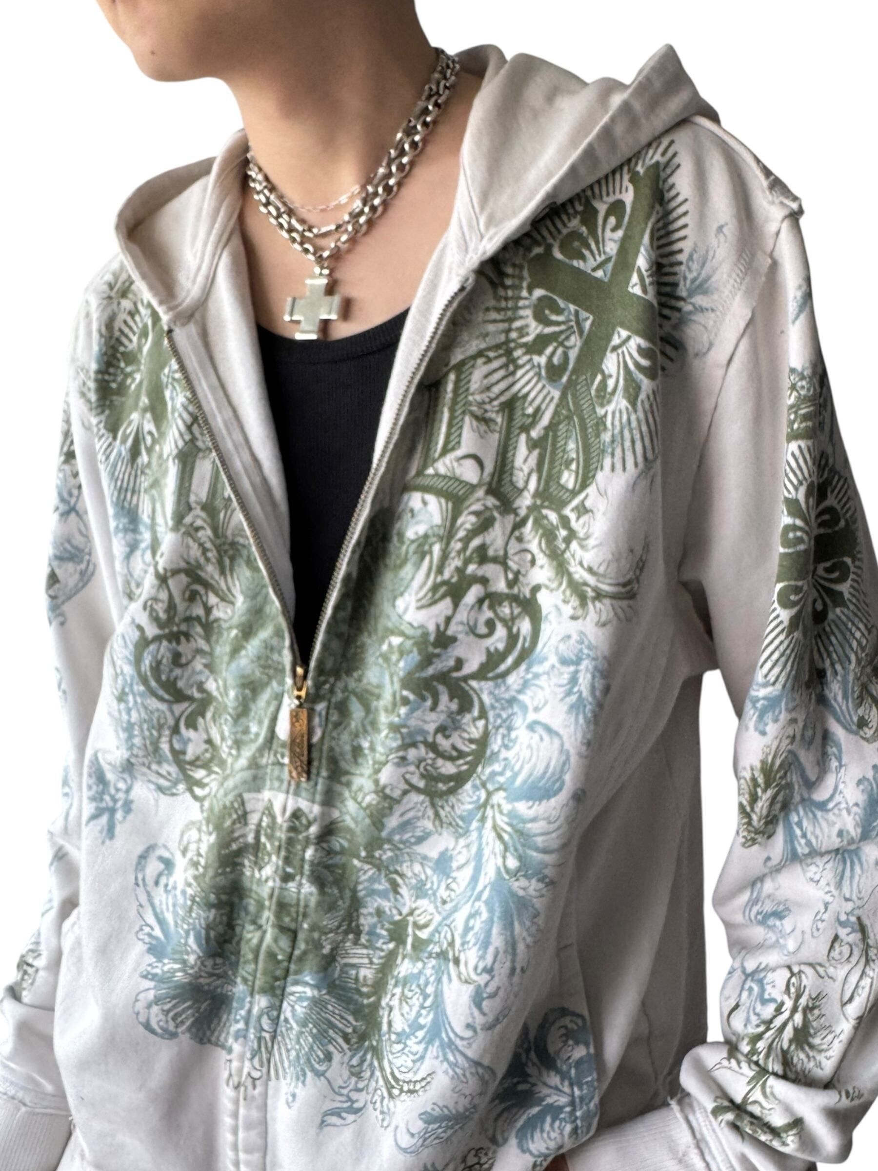 ♾Filter♾ cross motif design zip up hoodie sizeXL