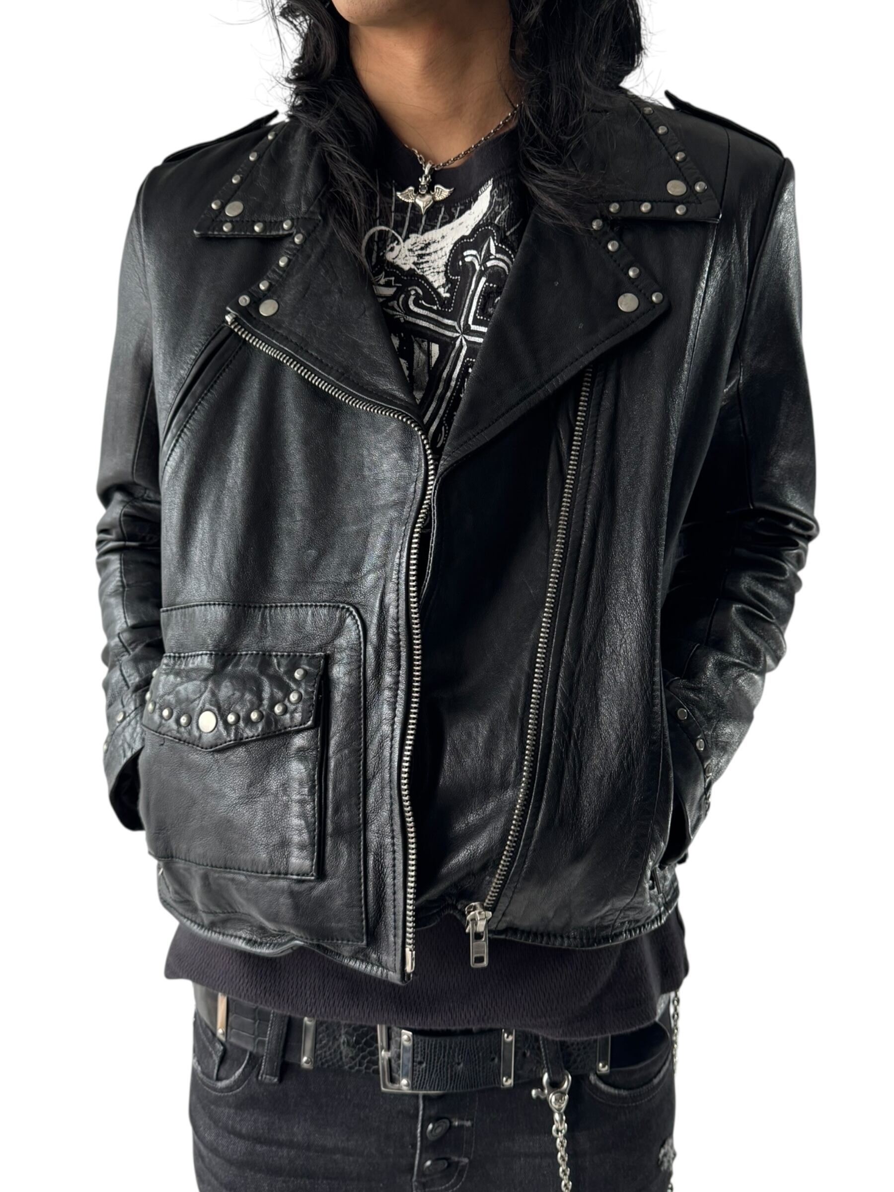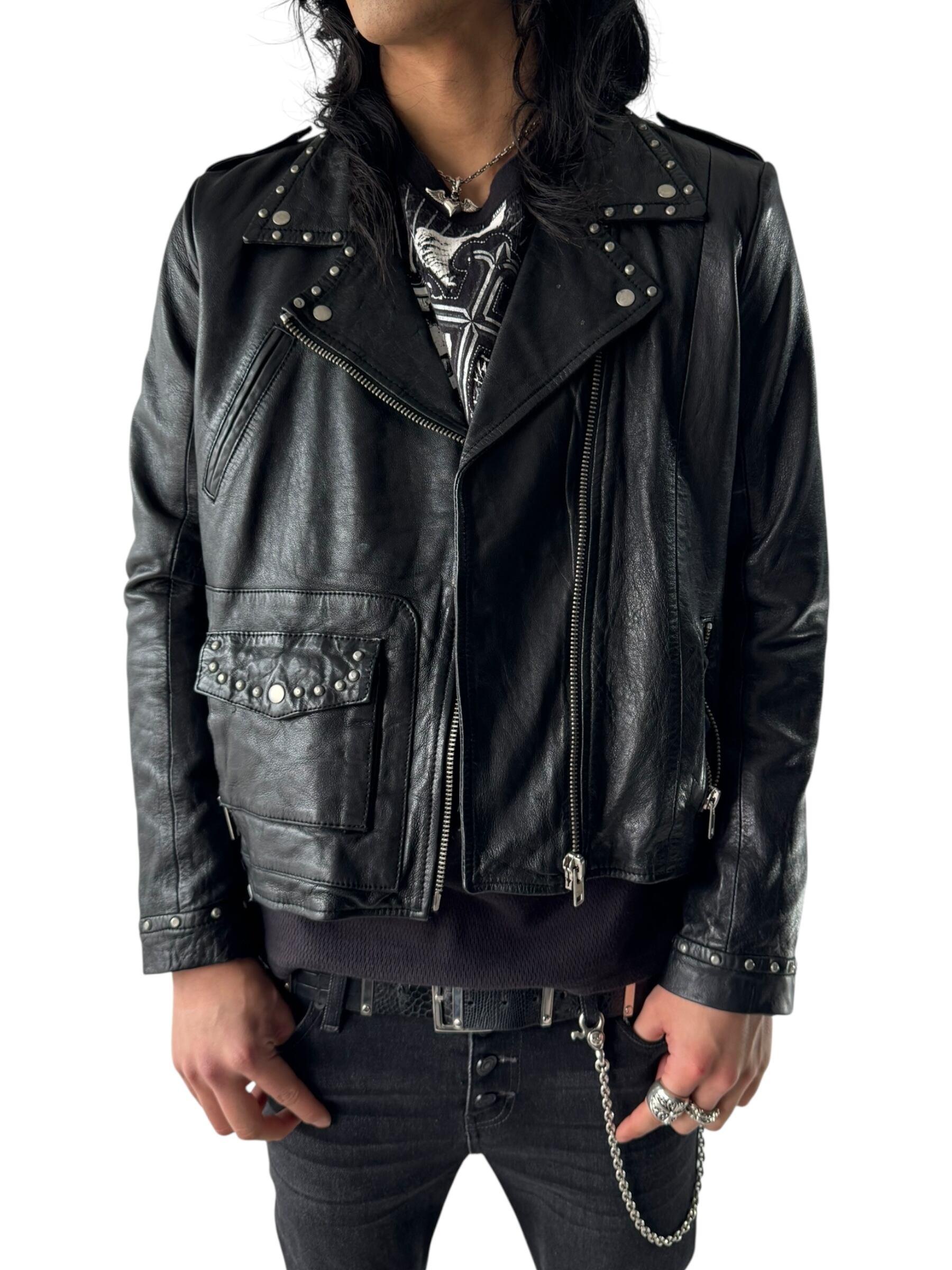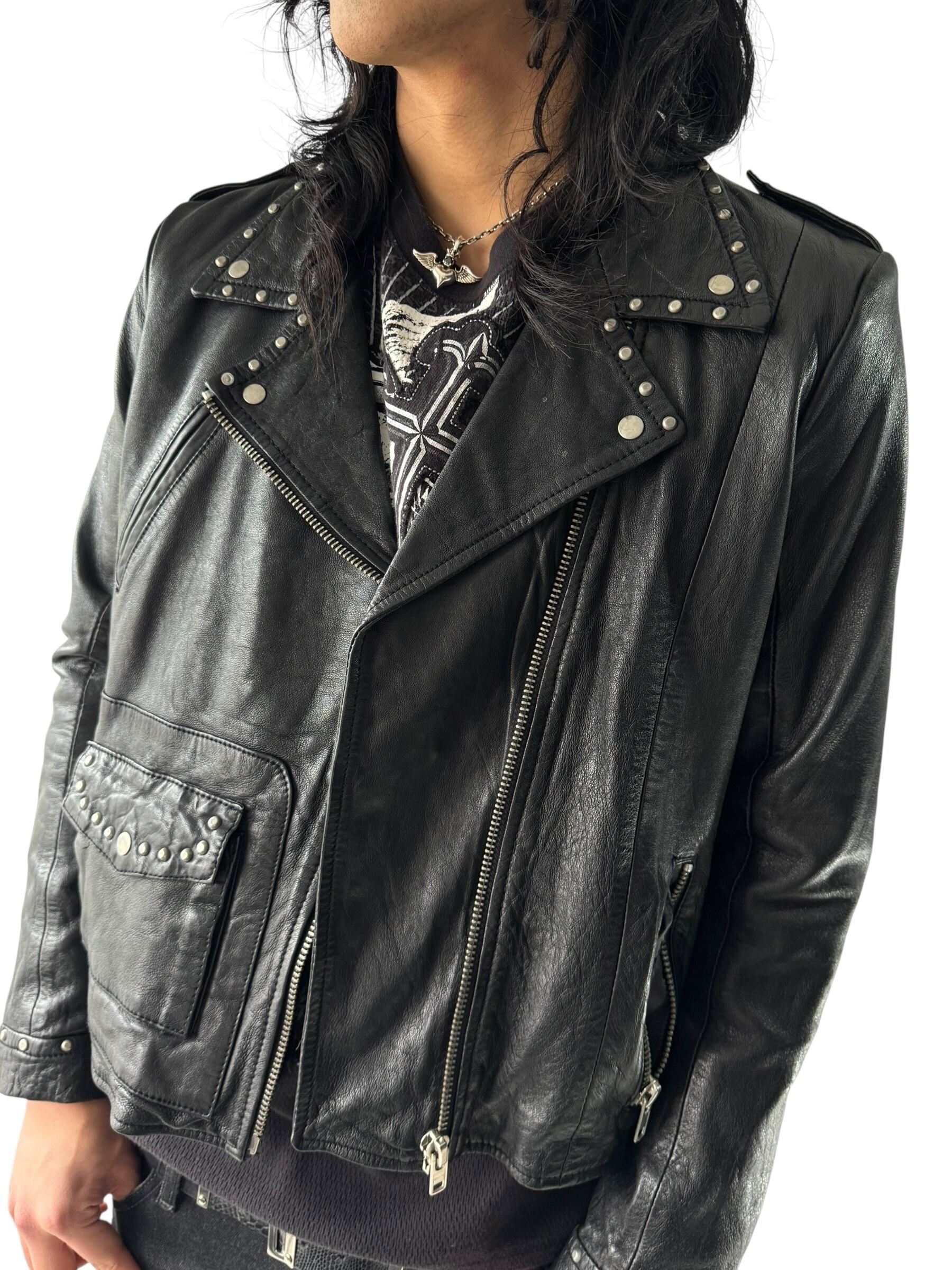 各所にスタッズが打ち込まれたライダースジャケットの入荷❣️❣️
