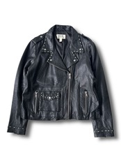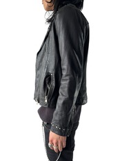 Round stud design leather double rider jacket