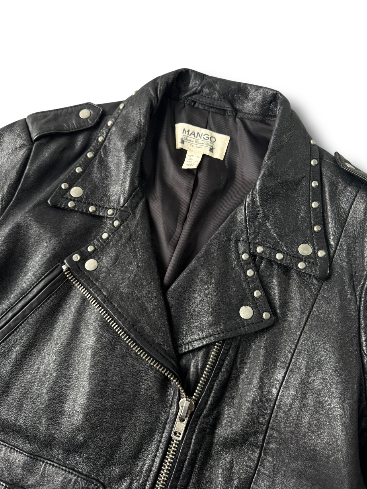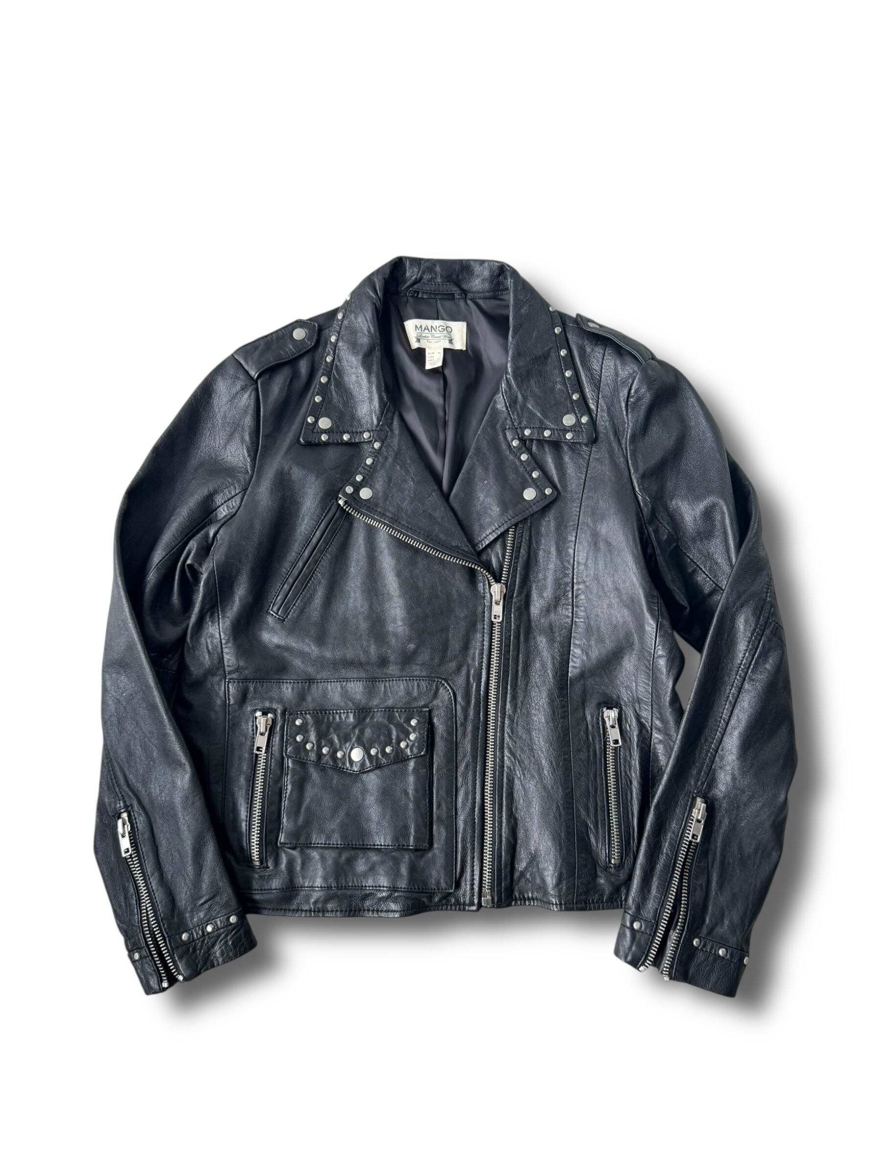 ♾️MANGO♾️ Round stud design leather double rider jacket
