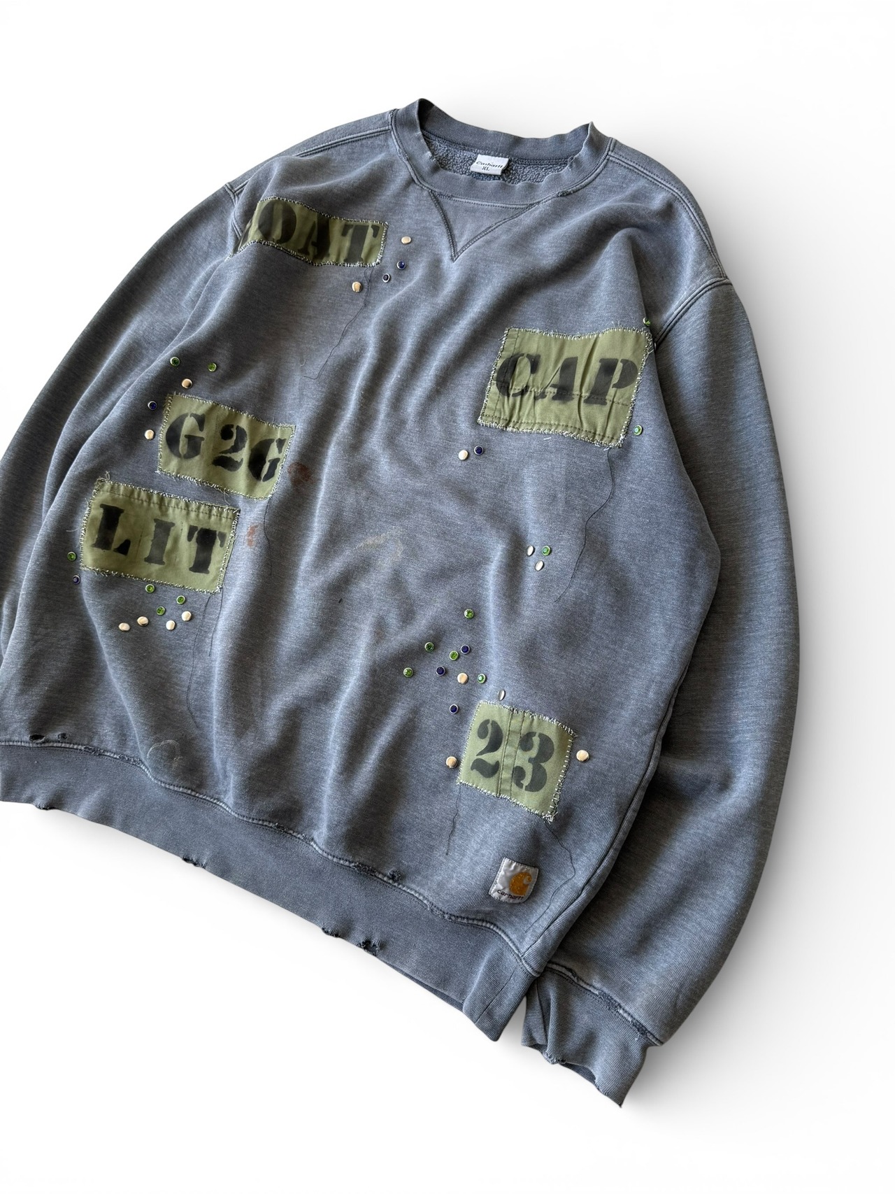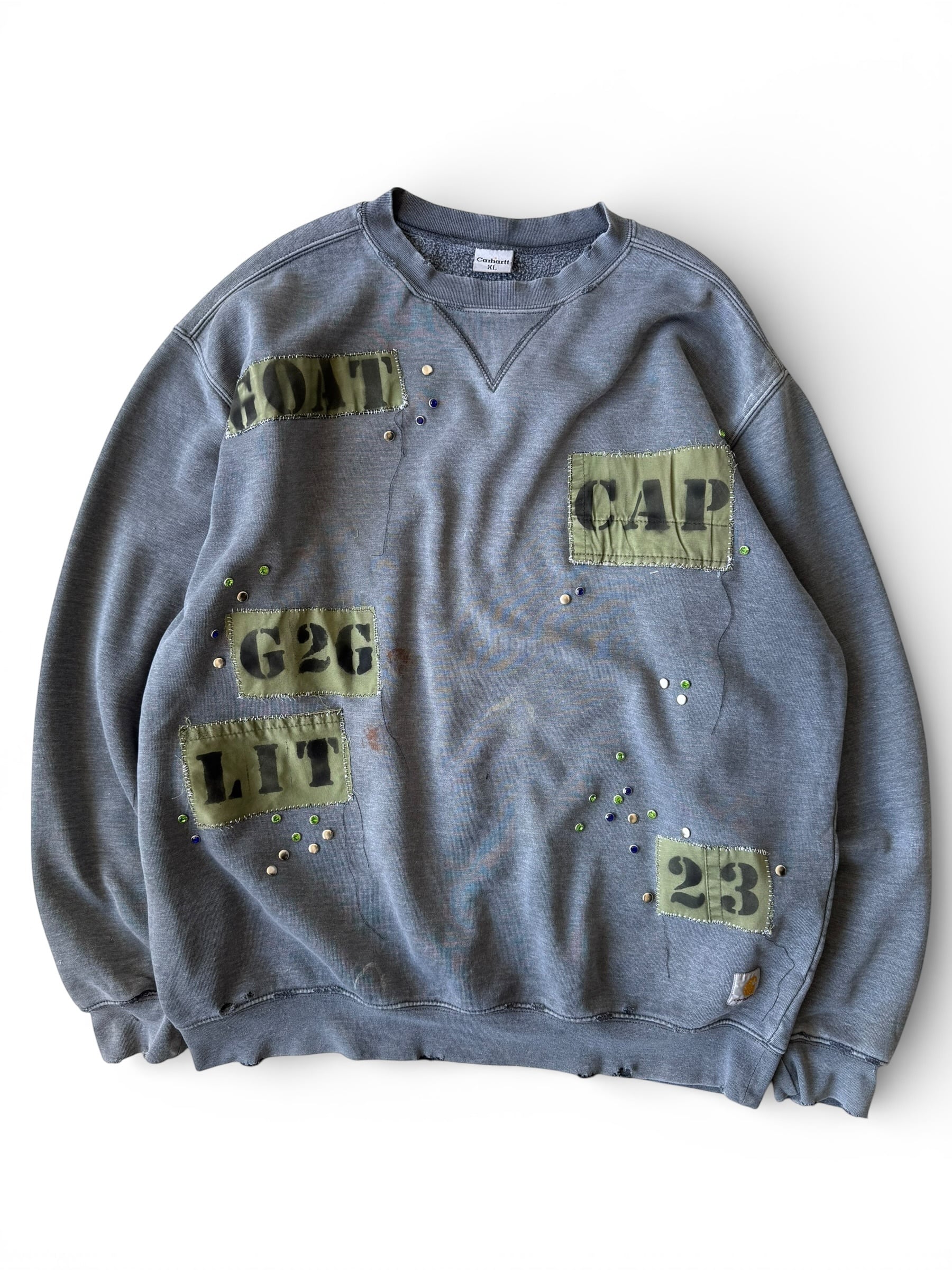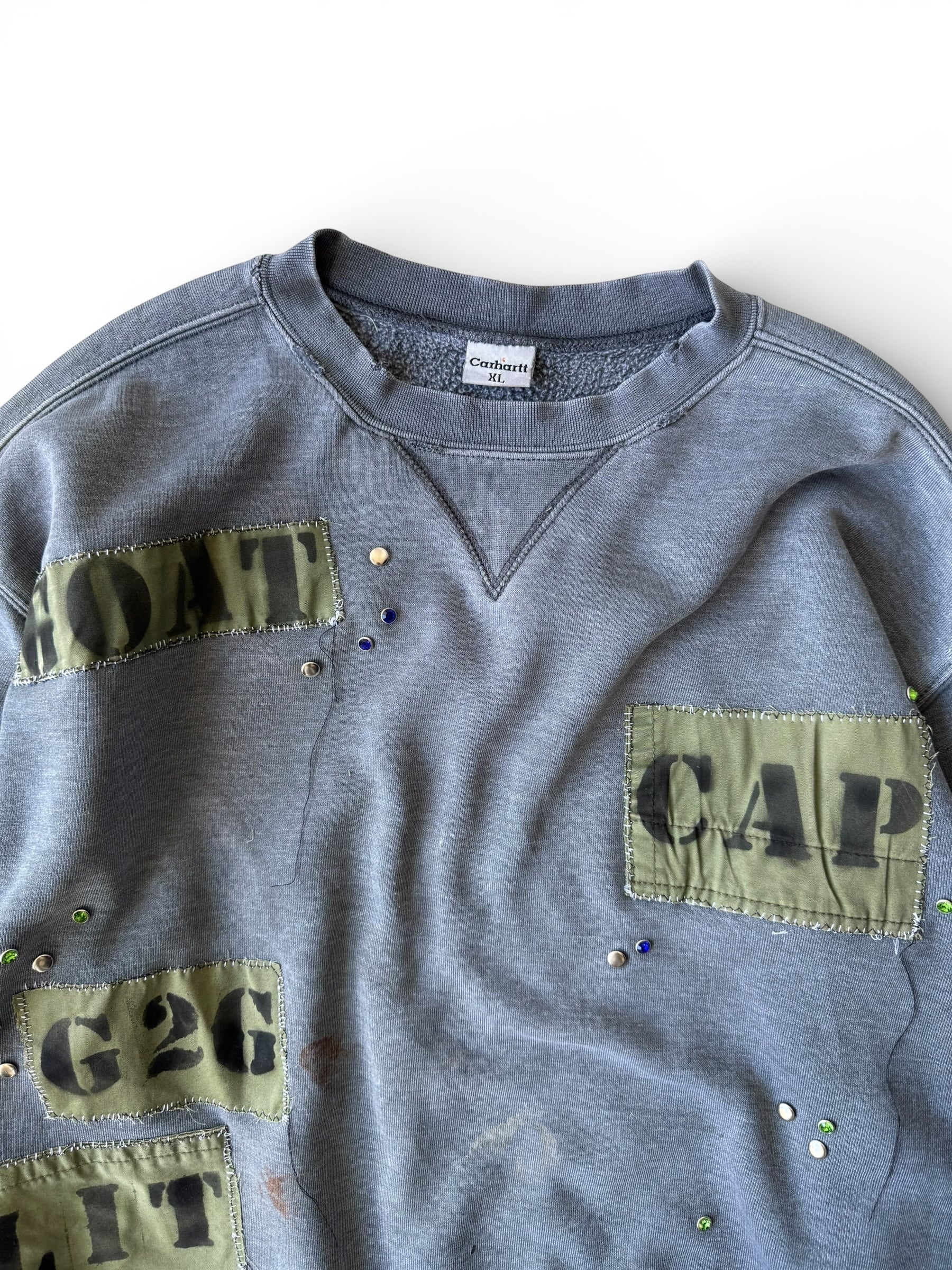 【Remade Used】 "old carhartt" Embellished patch design Sunfade design sweat shirt