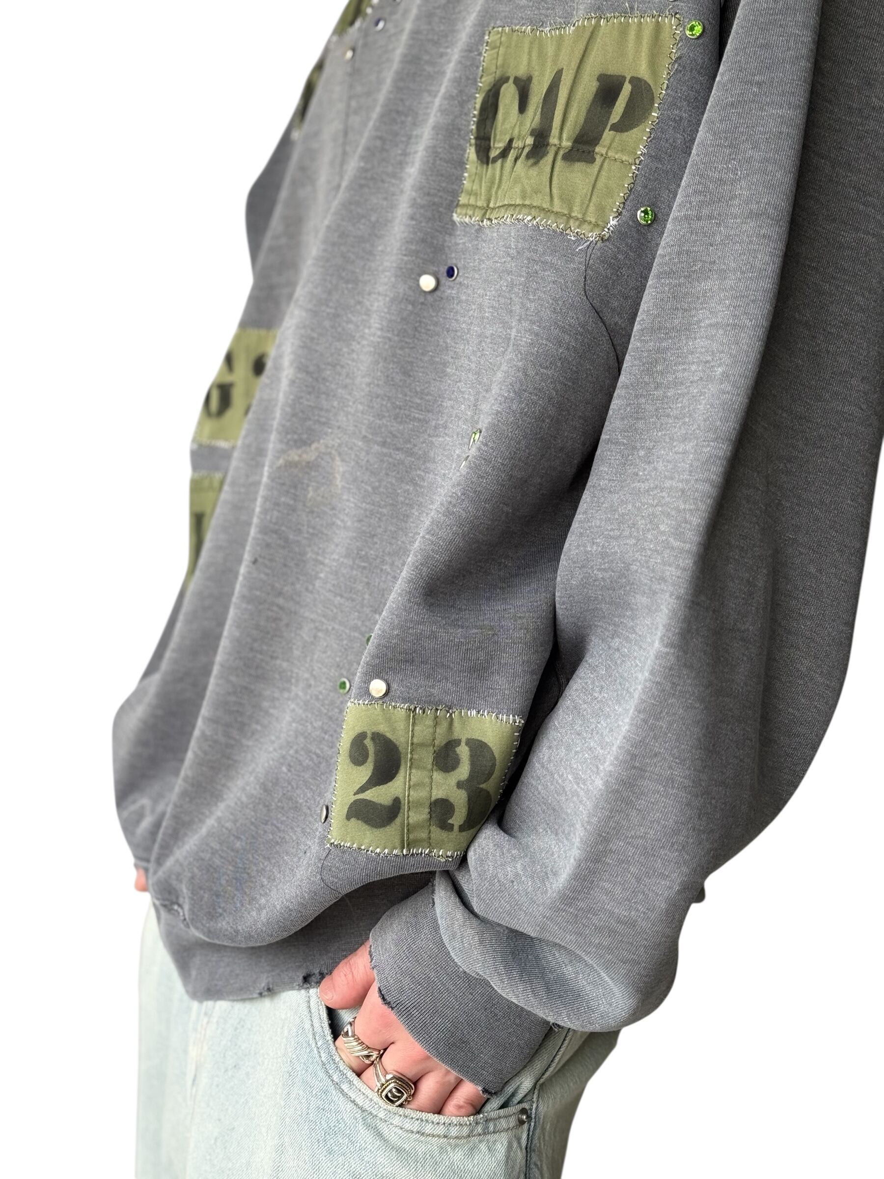 無造作にデコられたラインストーン初め、ミリタリー生地にステンシルの入ったパッチデザイン!!!!!