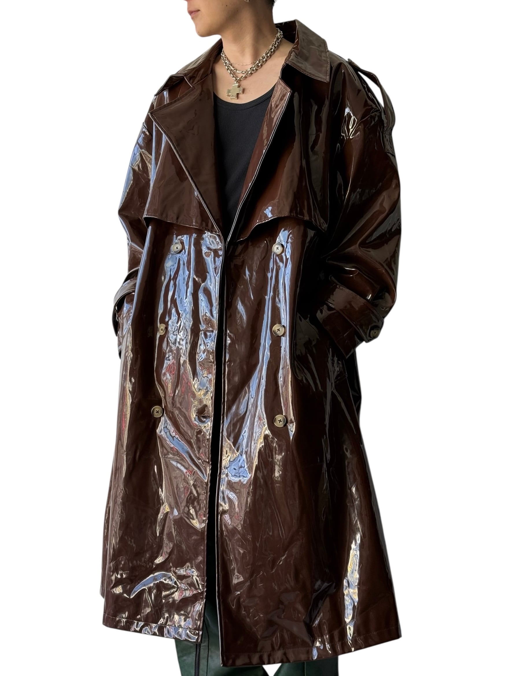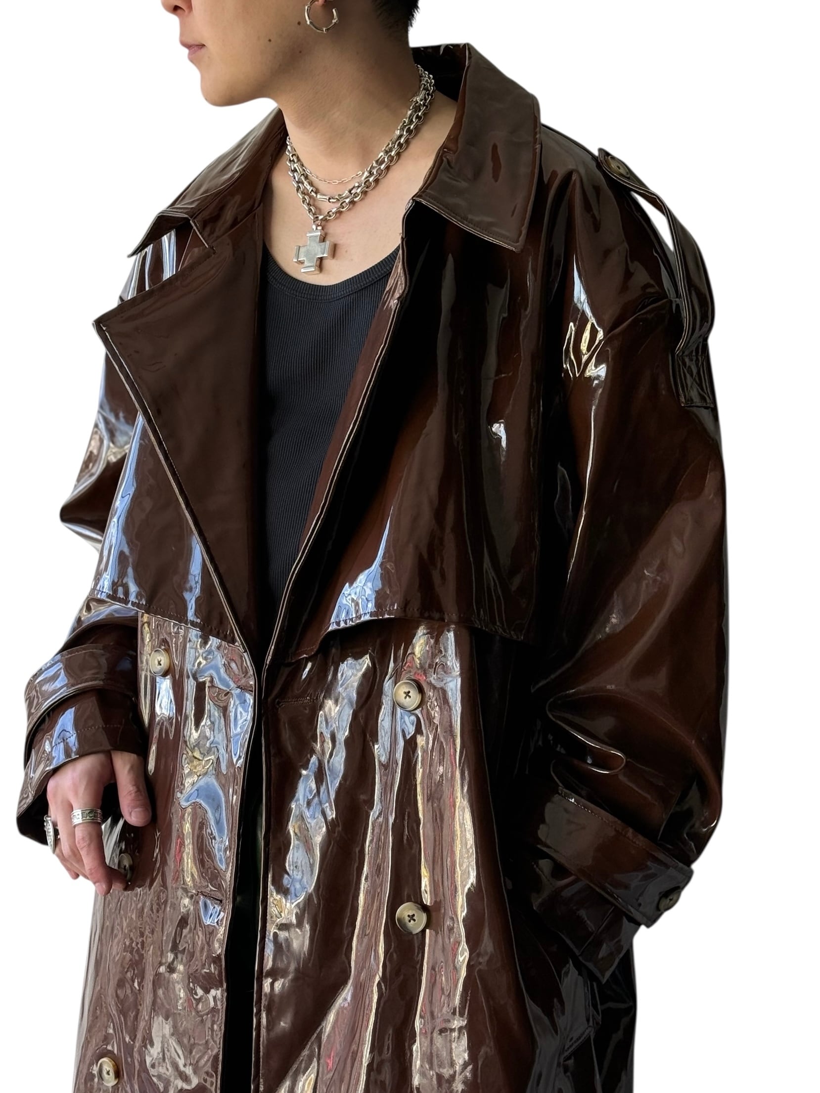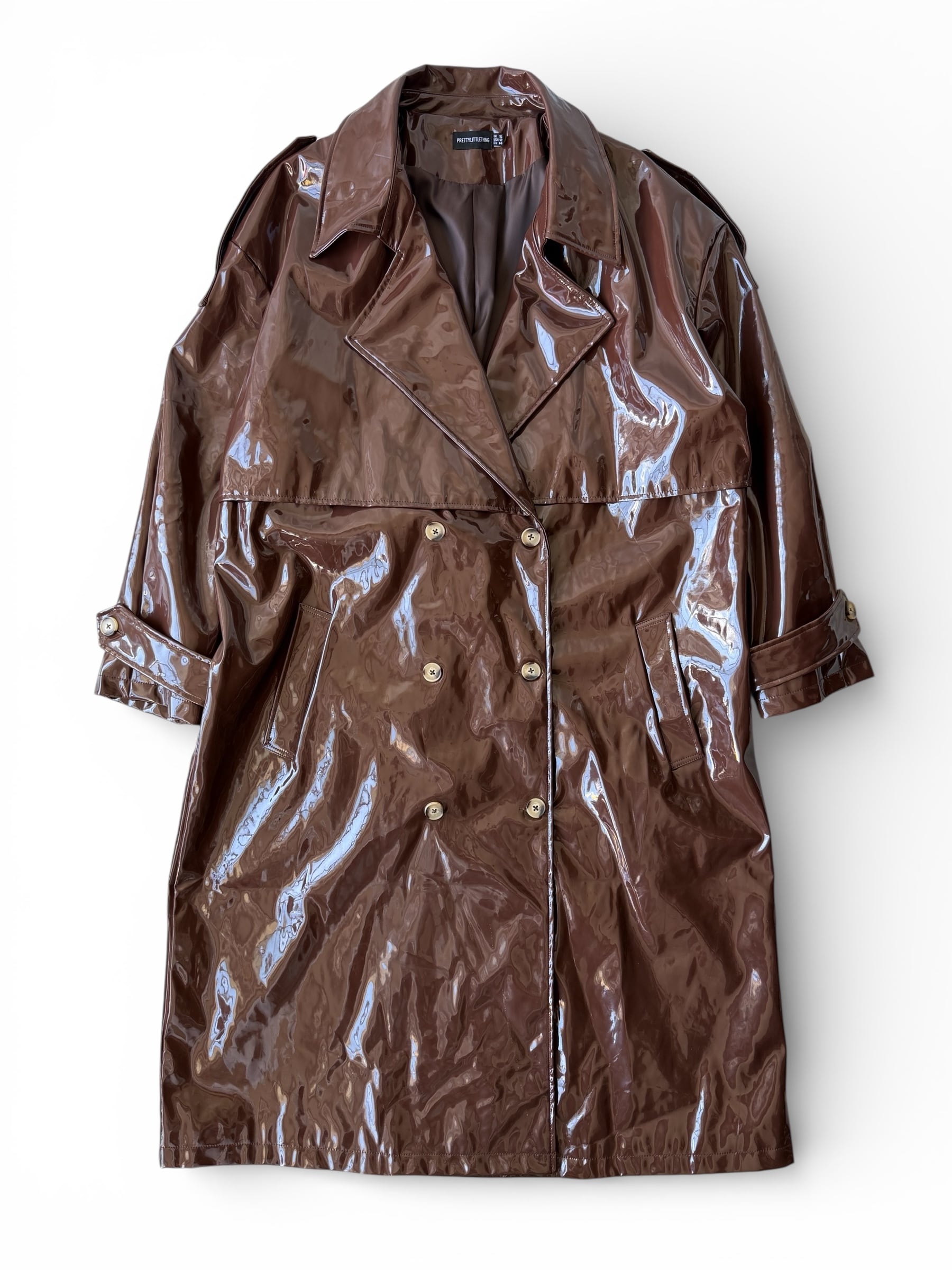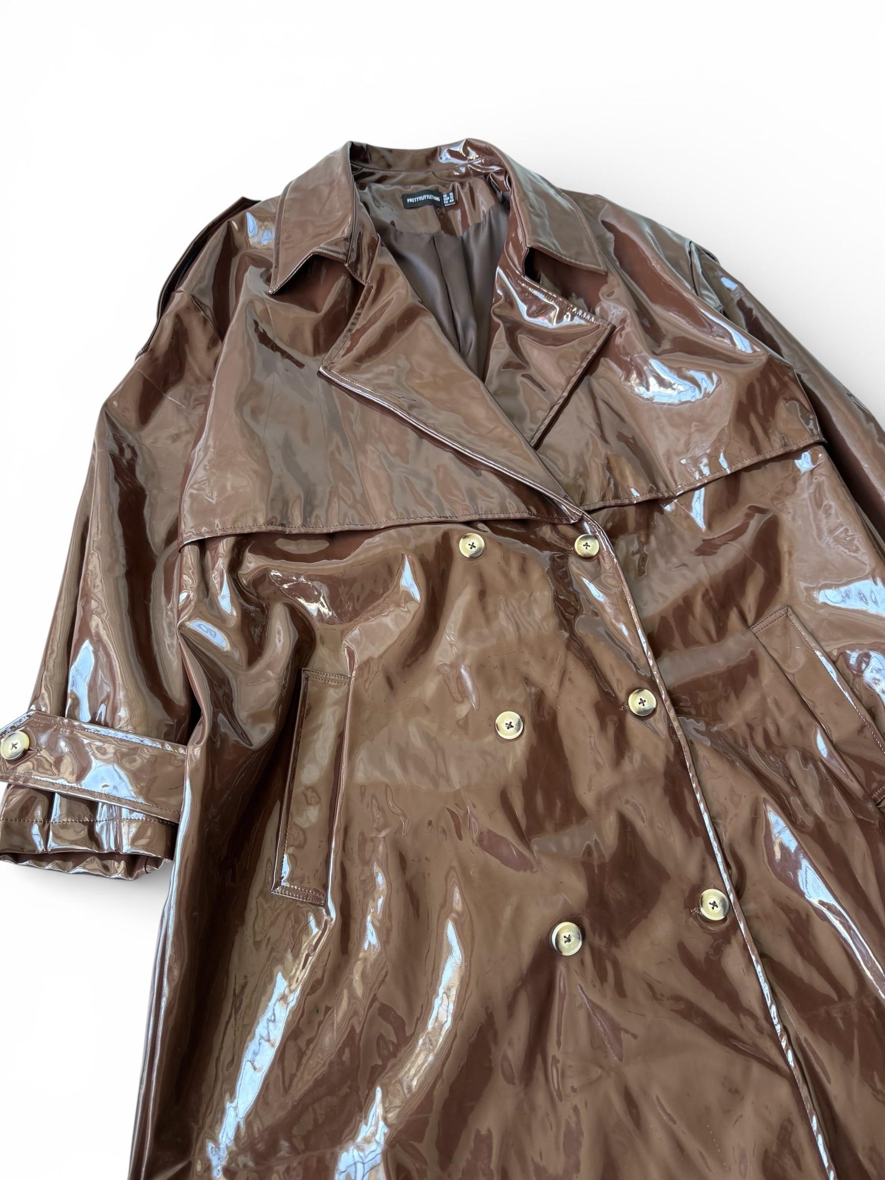 【PRETTY LITTLETHING】Oversized patent leather trench coat