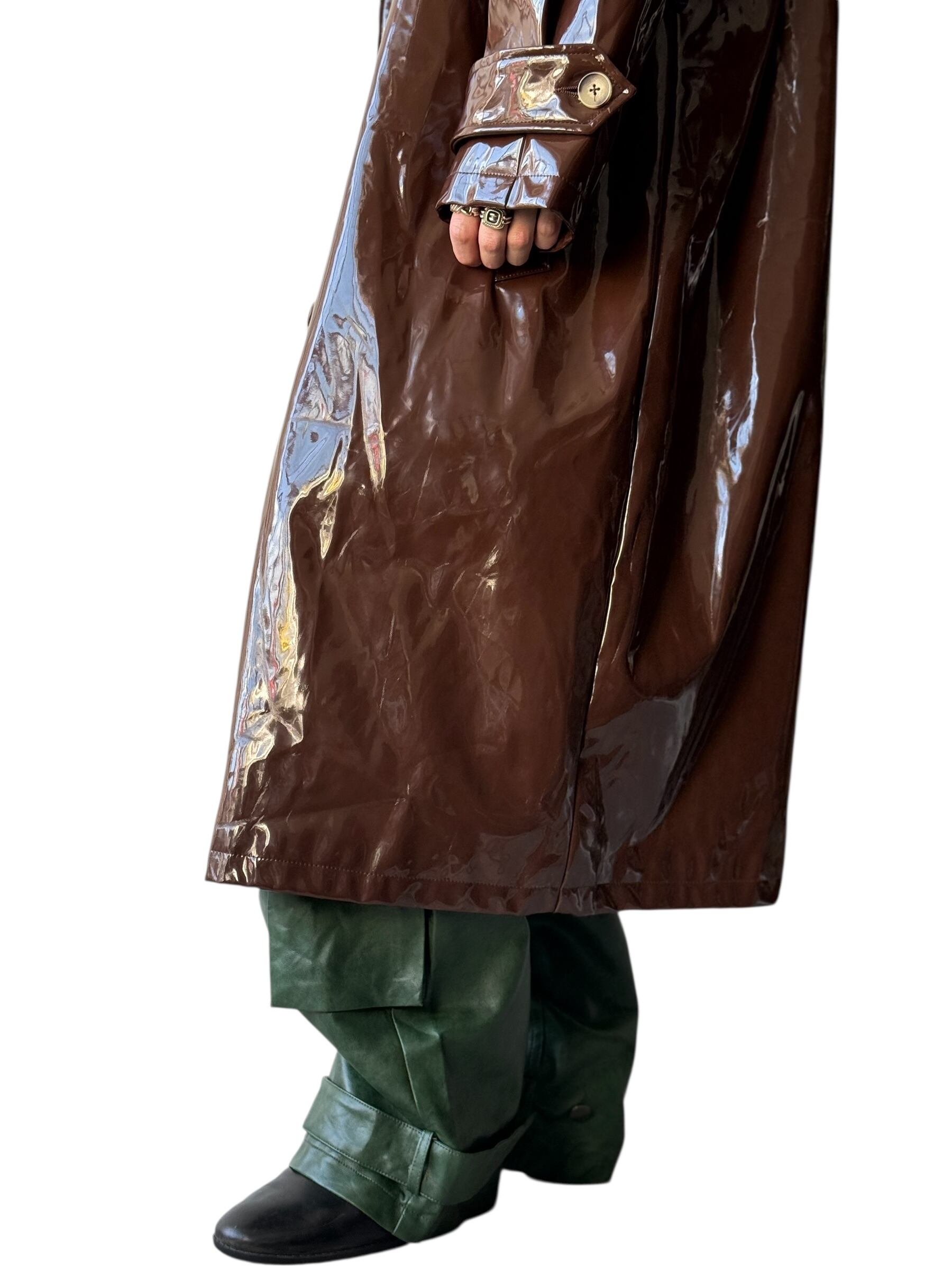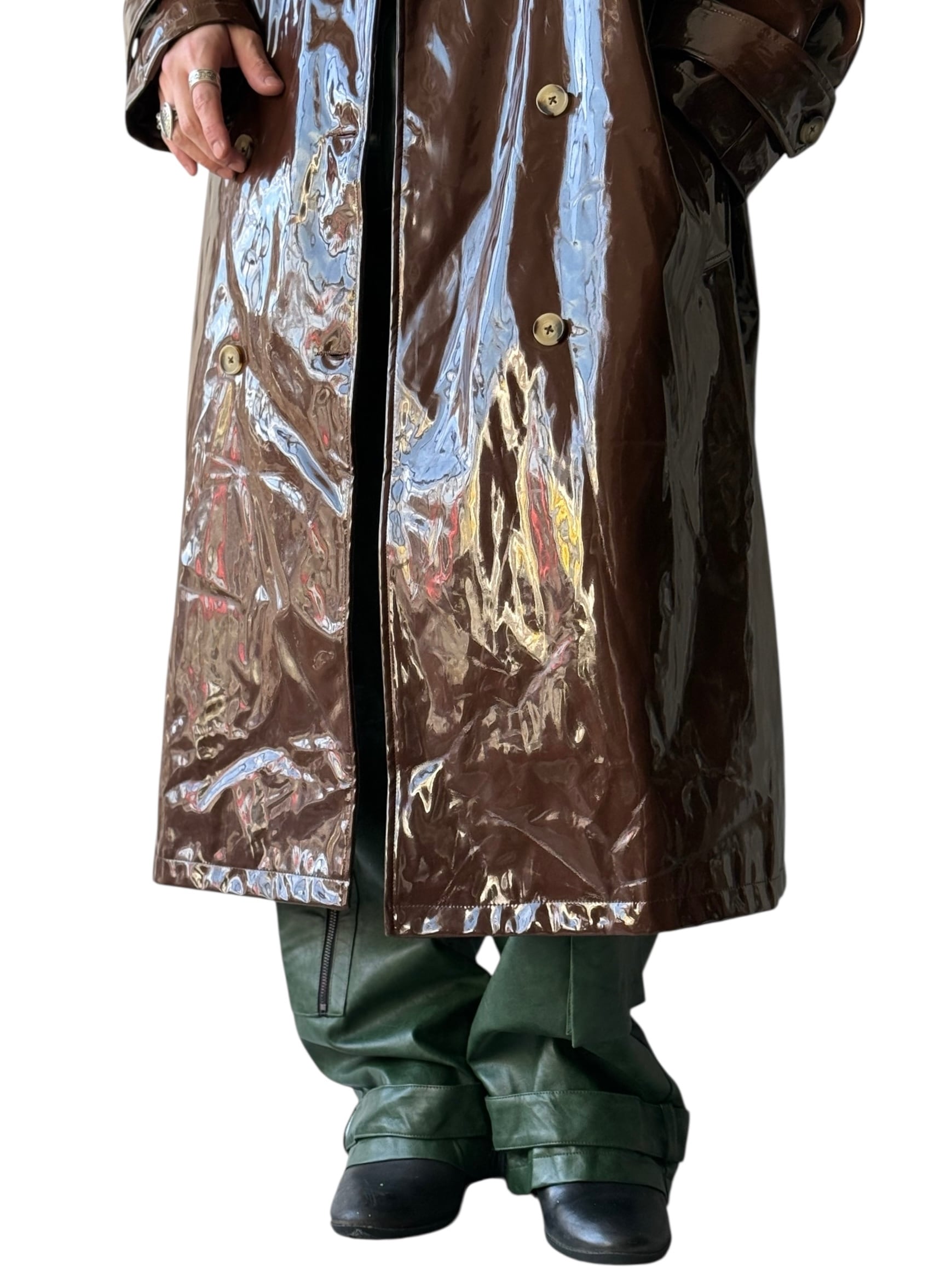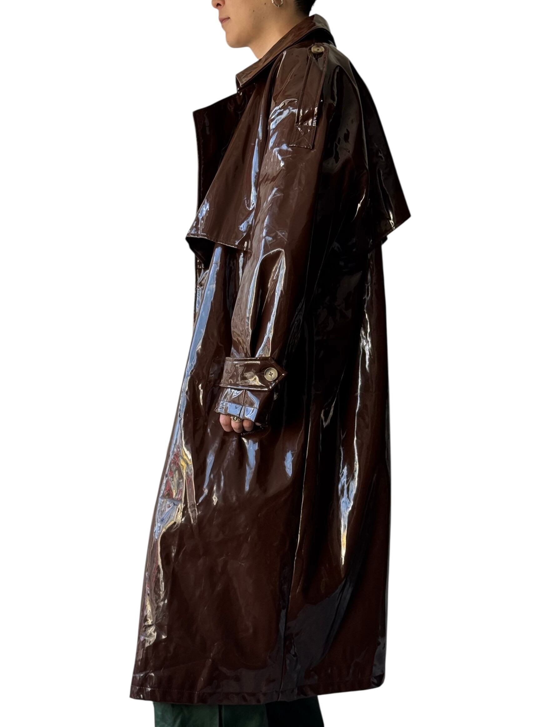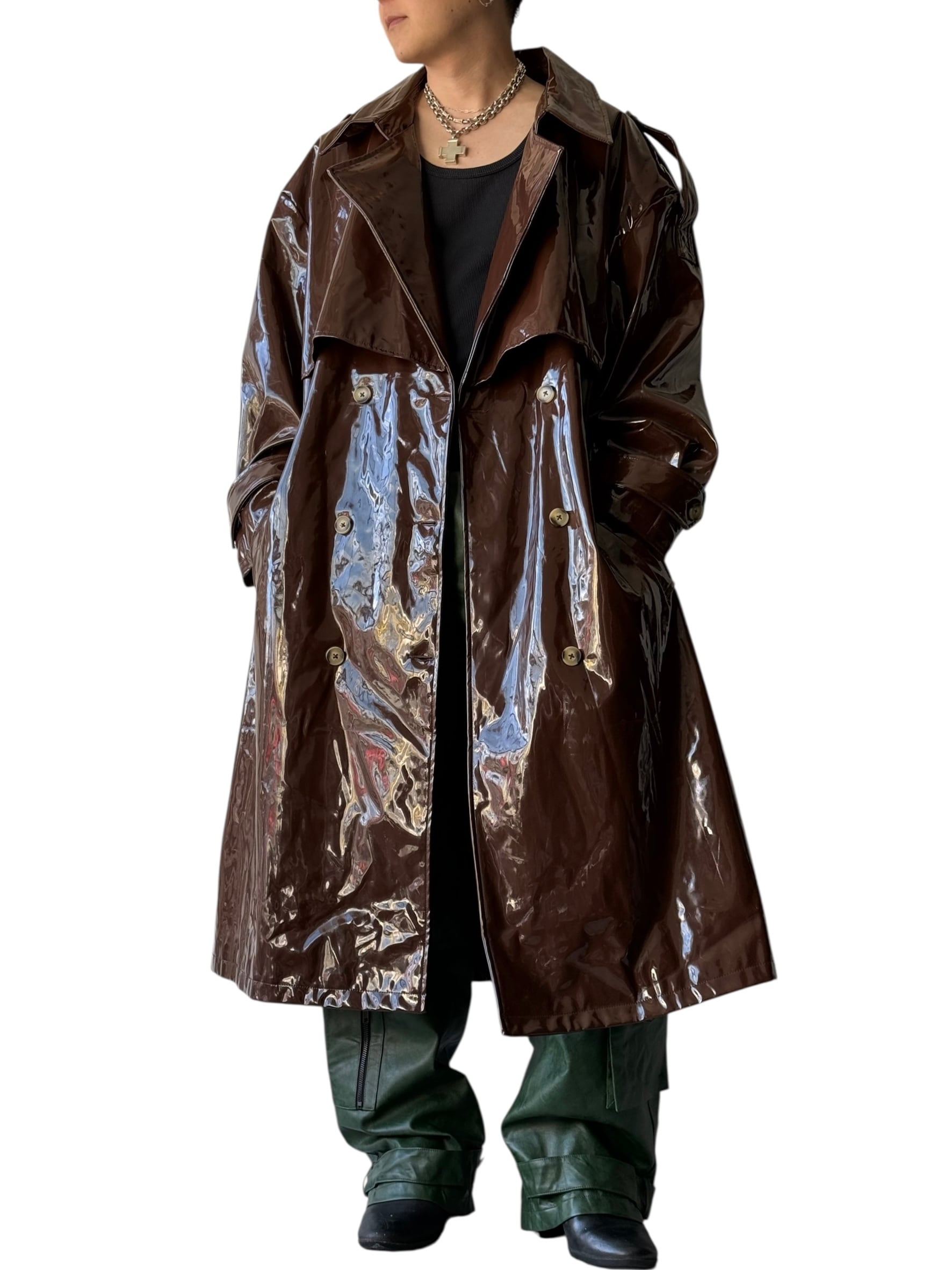 【PRETTY LITTLETHING】Oversized patent leather trench coat