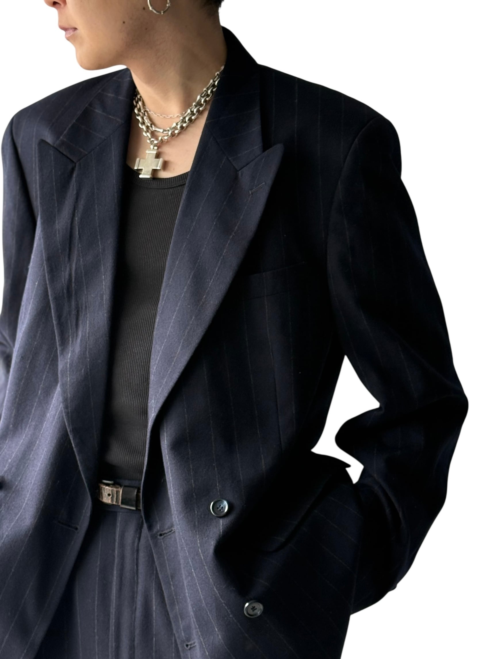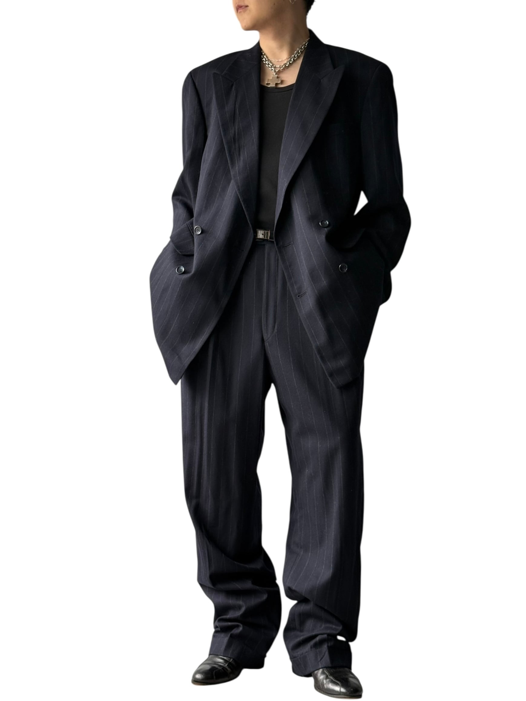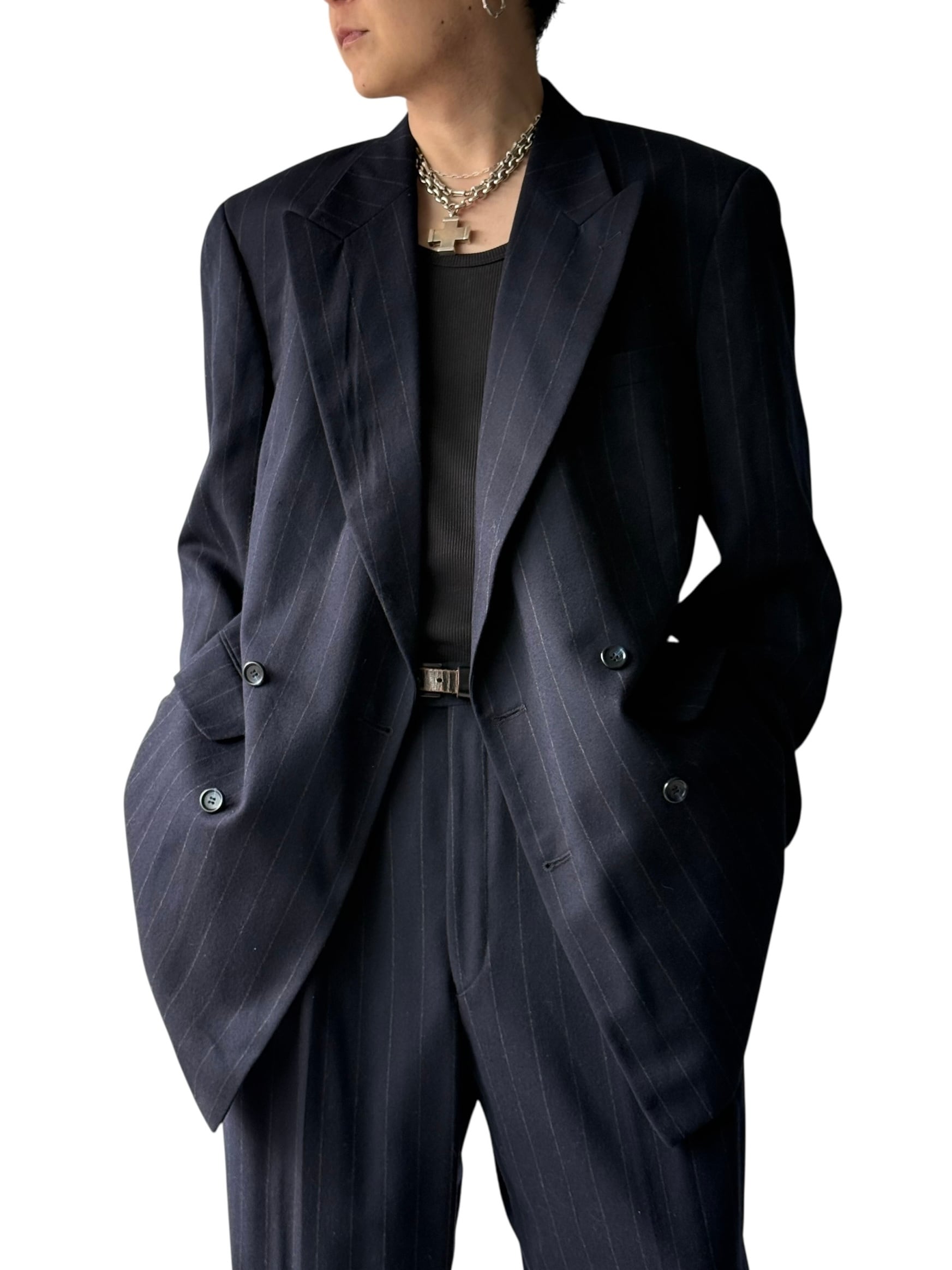 【80s JONES NEW YORK】cashmere wooled Chalk Stripe Double-Breasted Suit