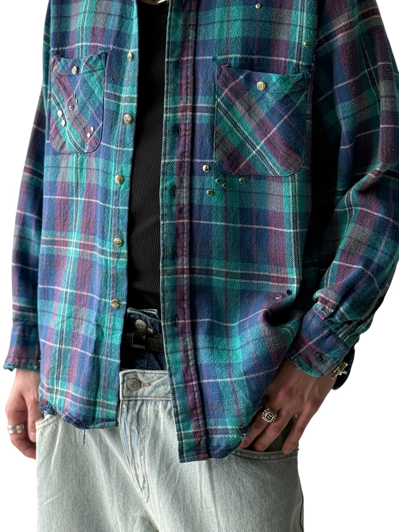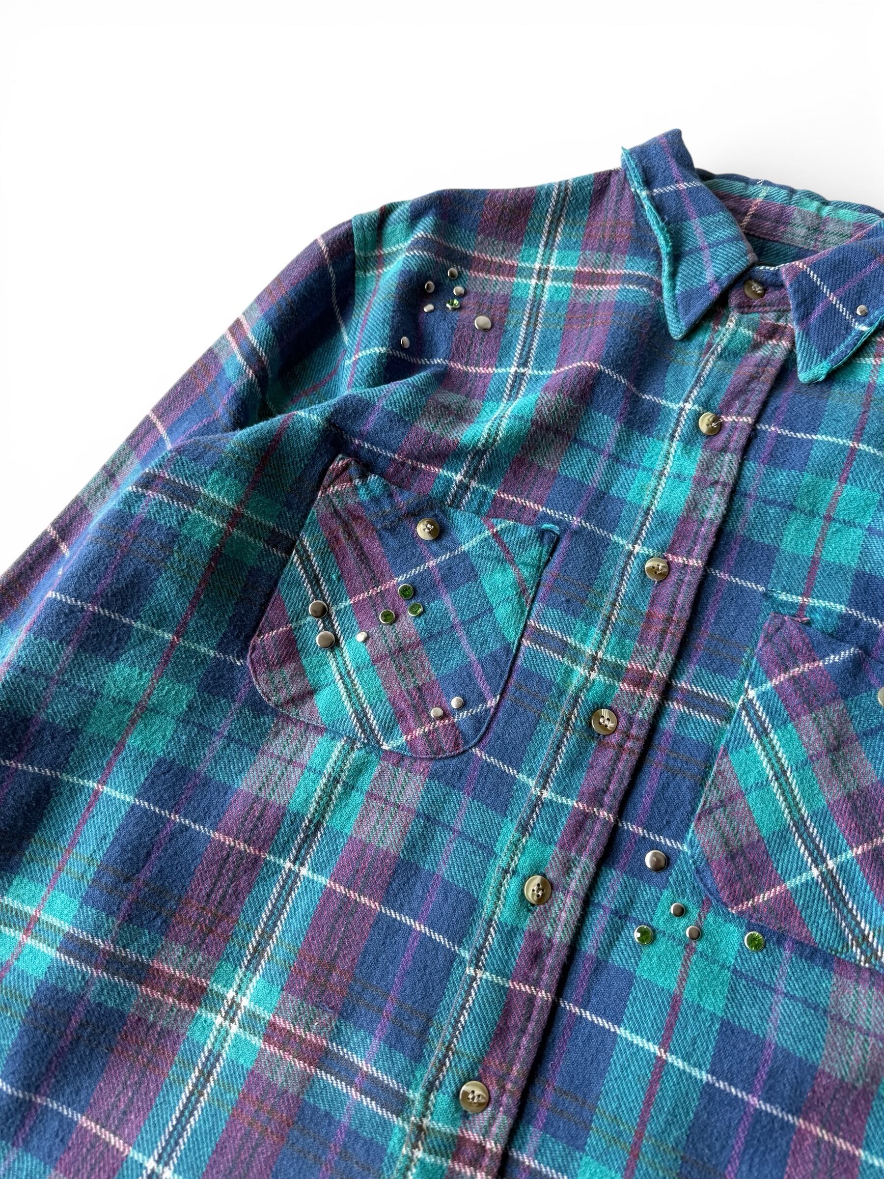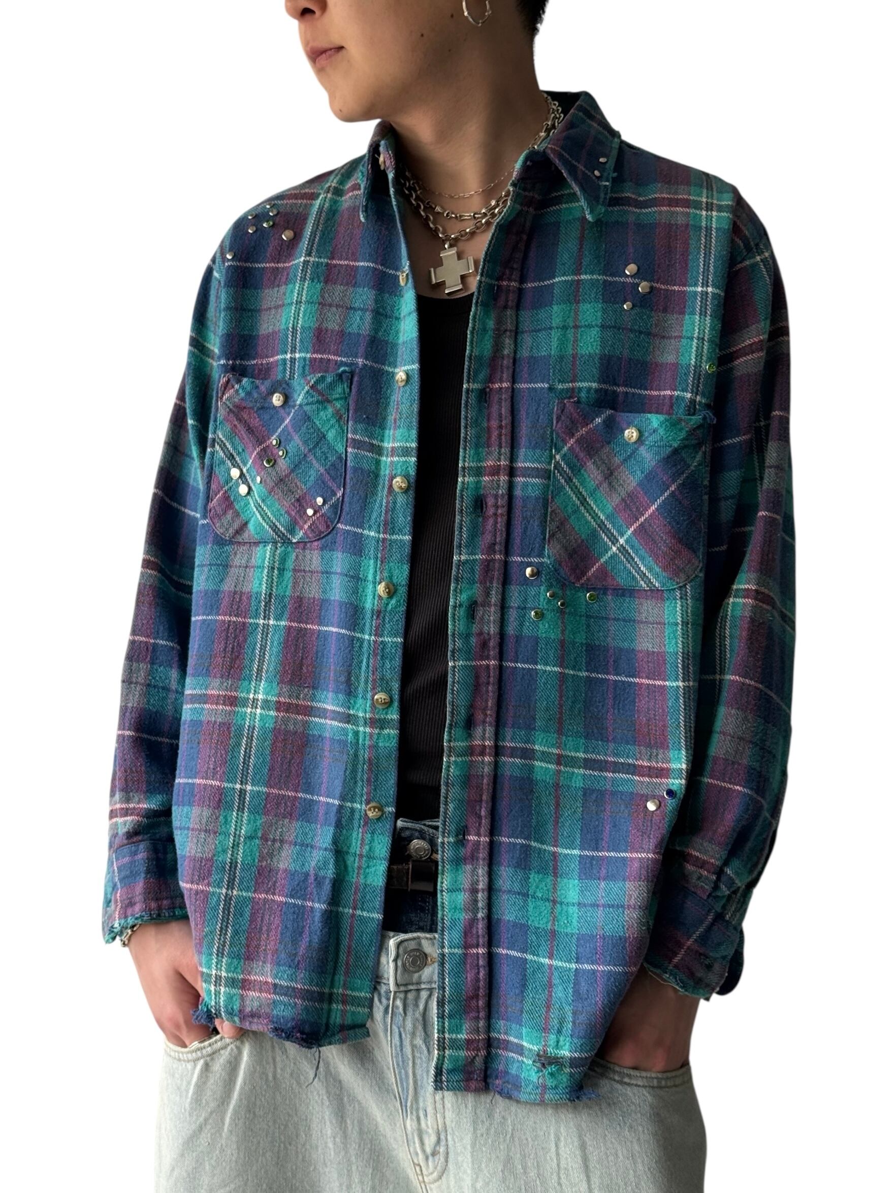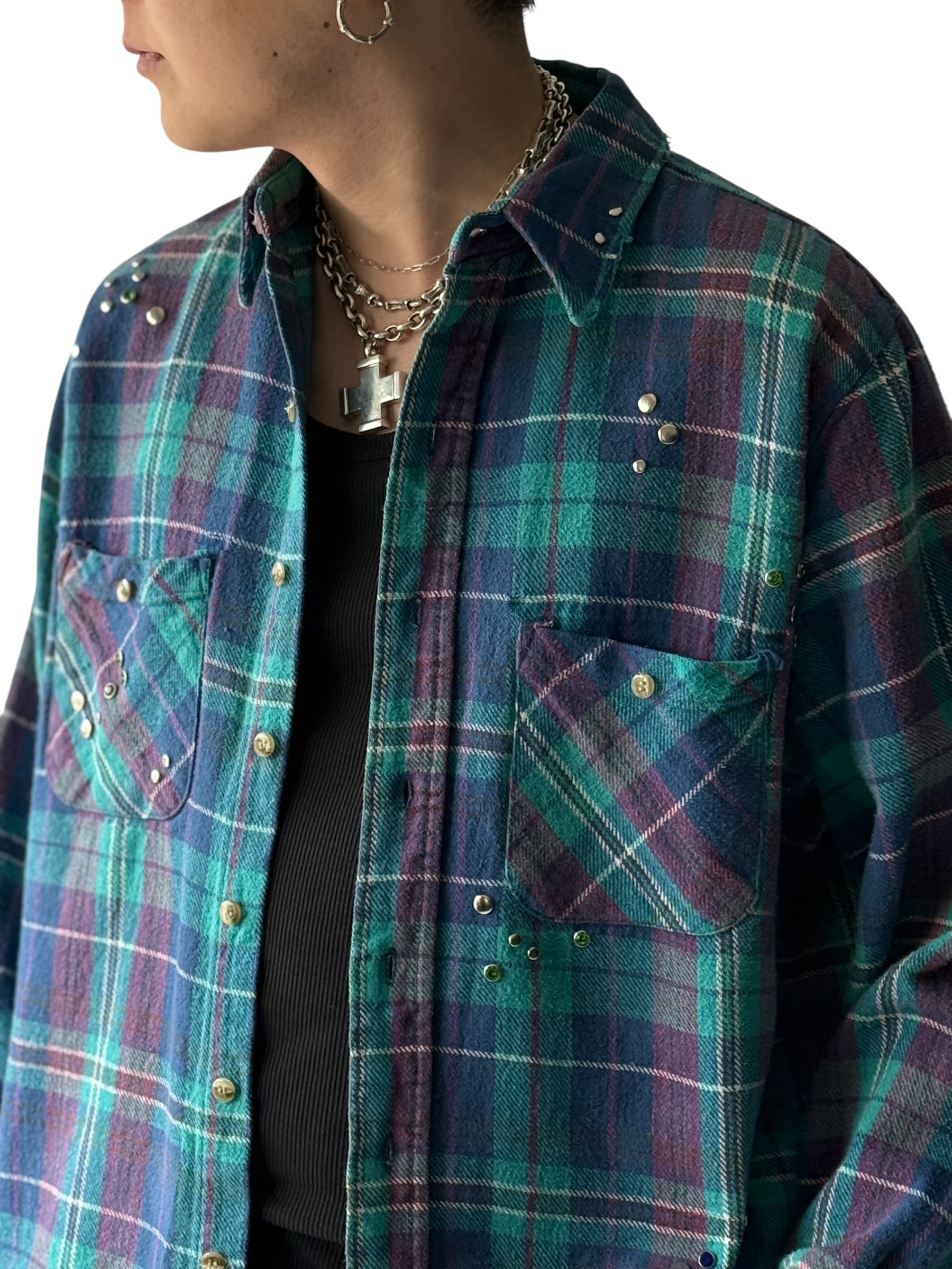 【1857 Manhattan】 Madras Check patterned studs custom flannel shirt L/S