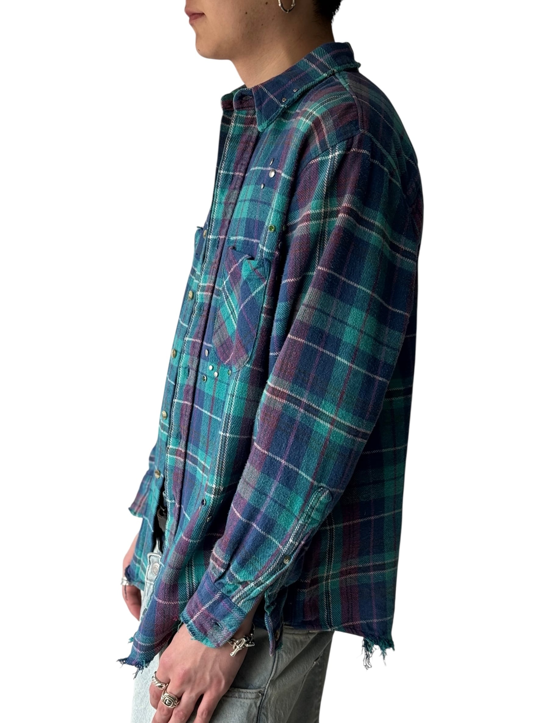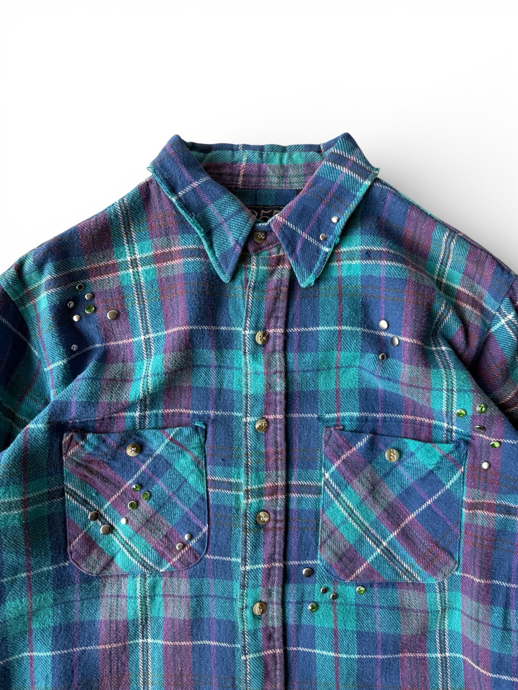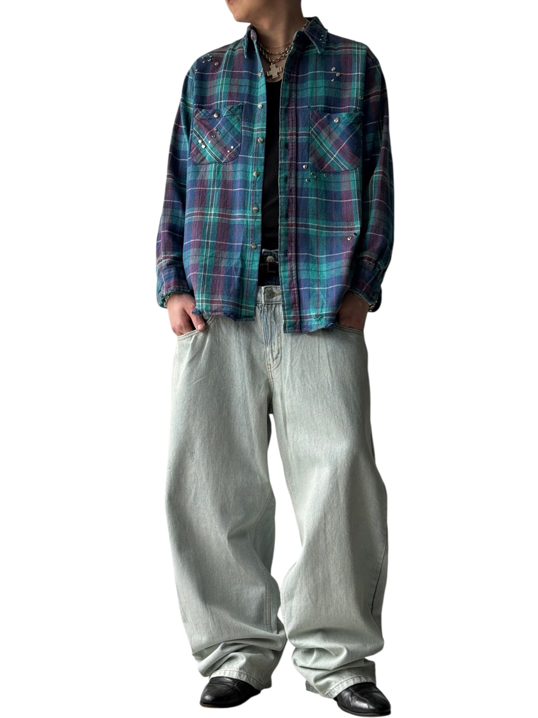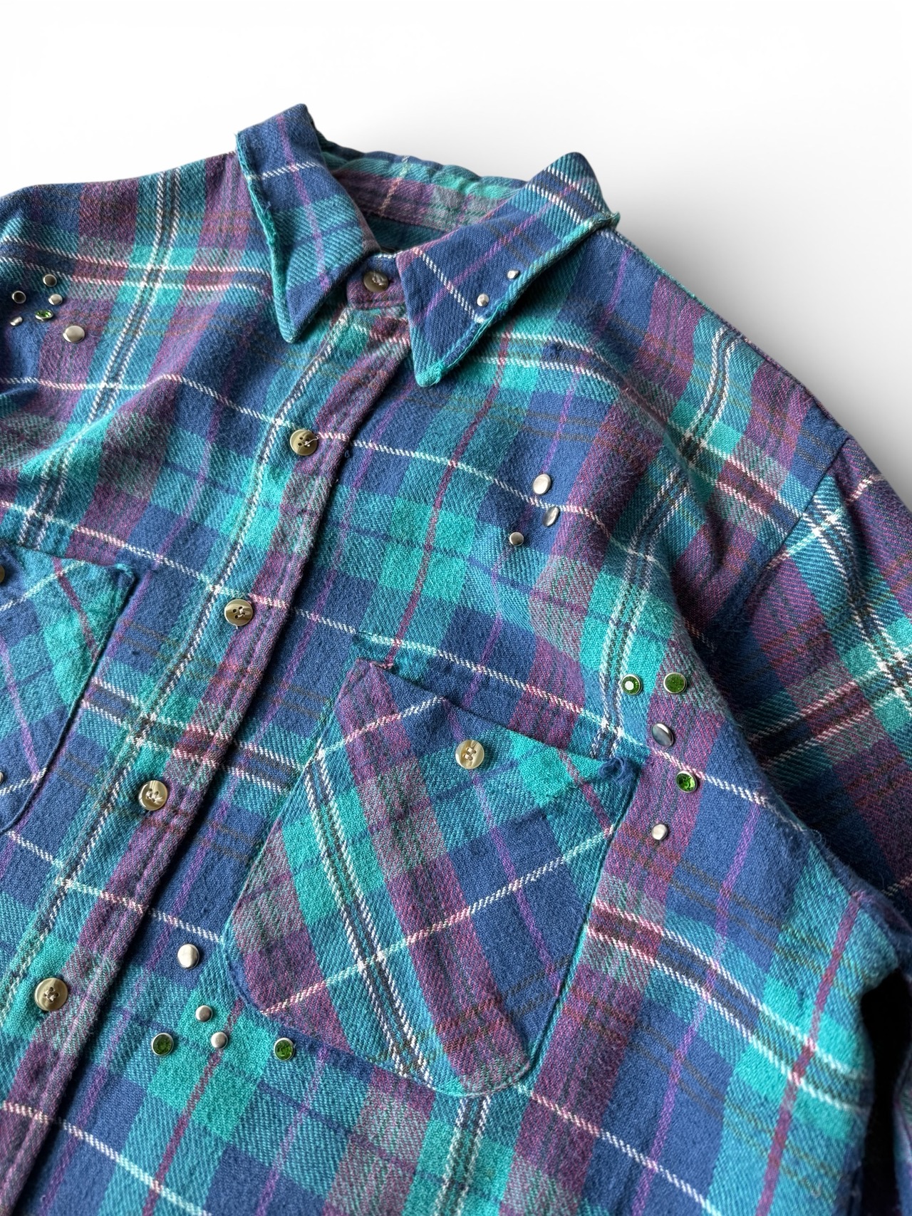 【1857 Manhattan】 Madras Check patterned studs custom flannel shirt L/S