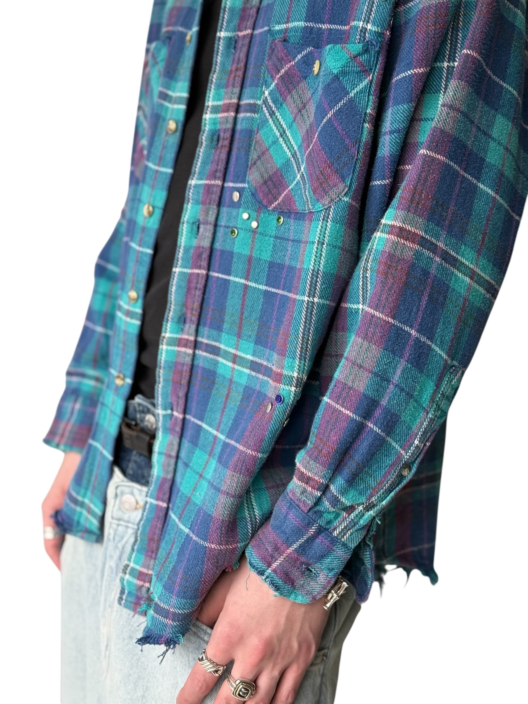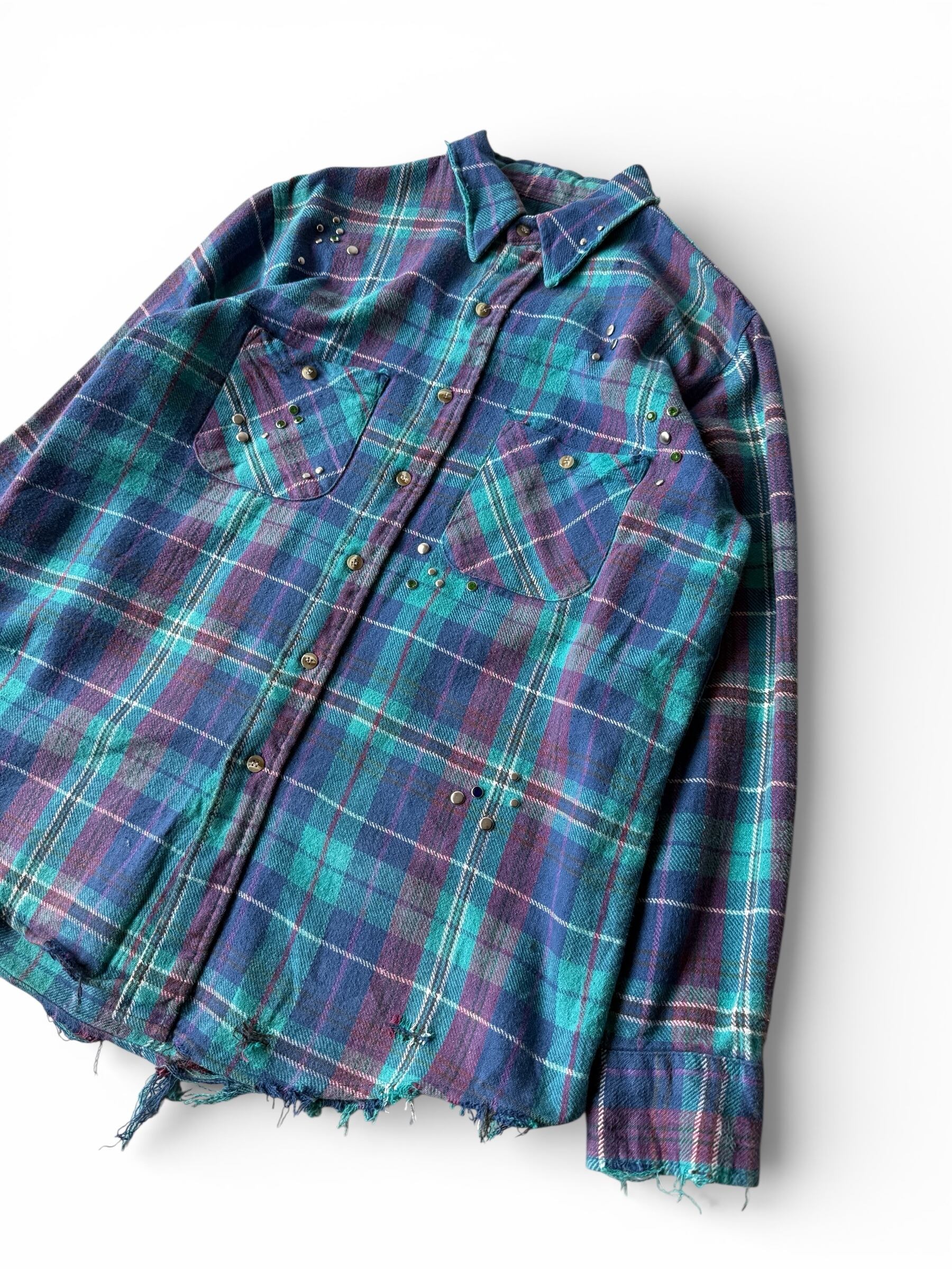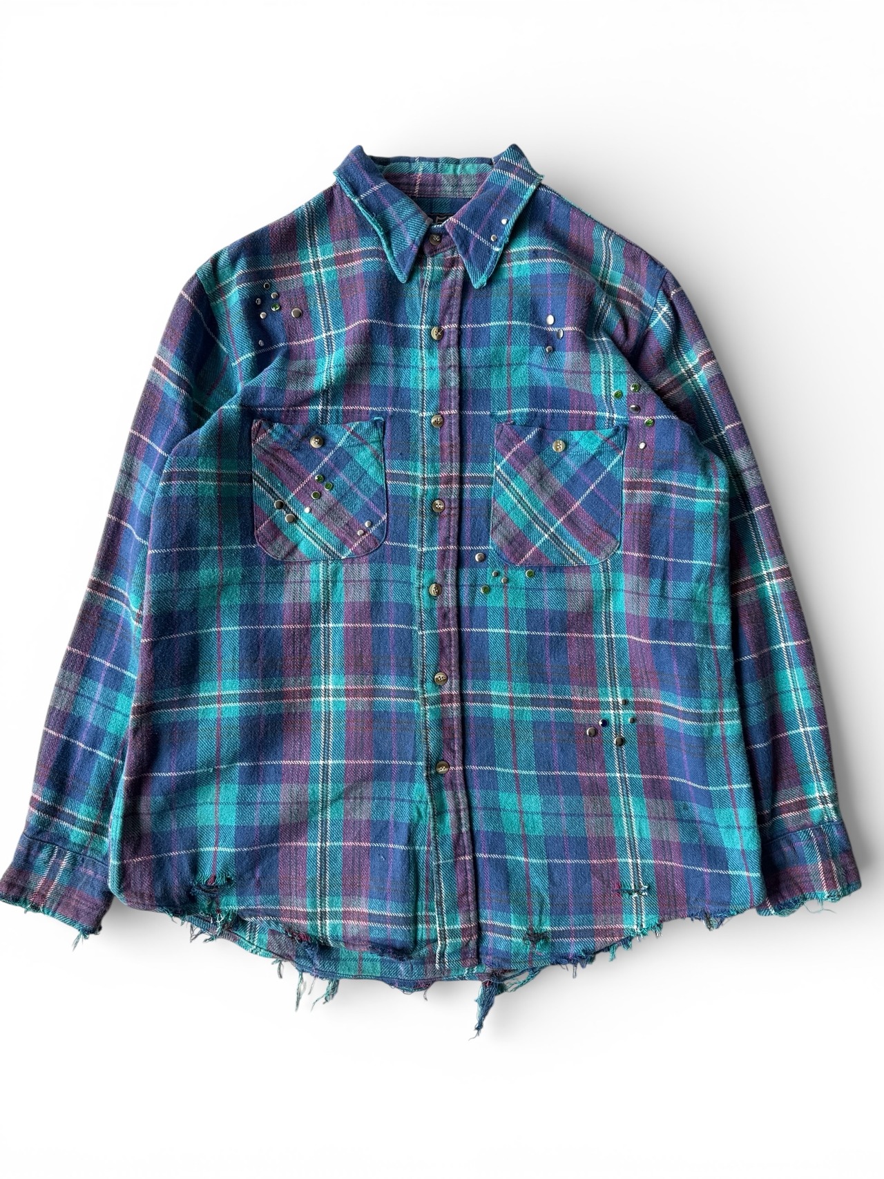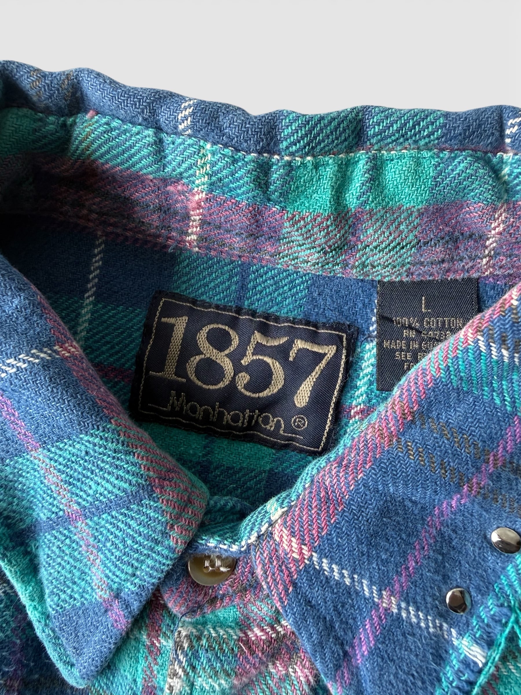 【1857 Manhattan】 Madras Check patterned studs custom flannel shirt L/S
