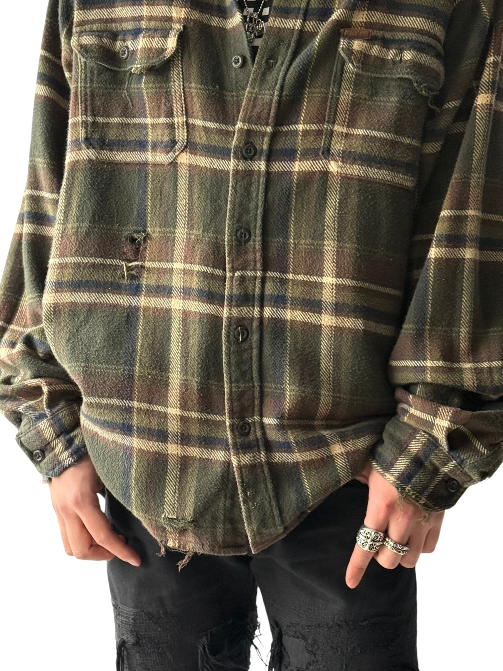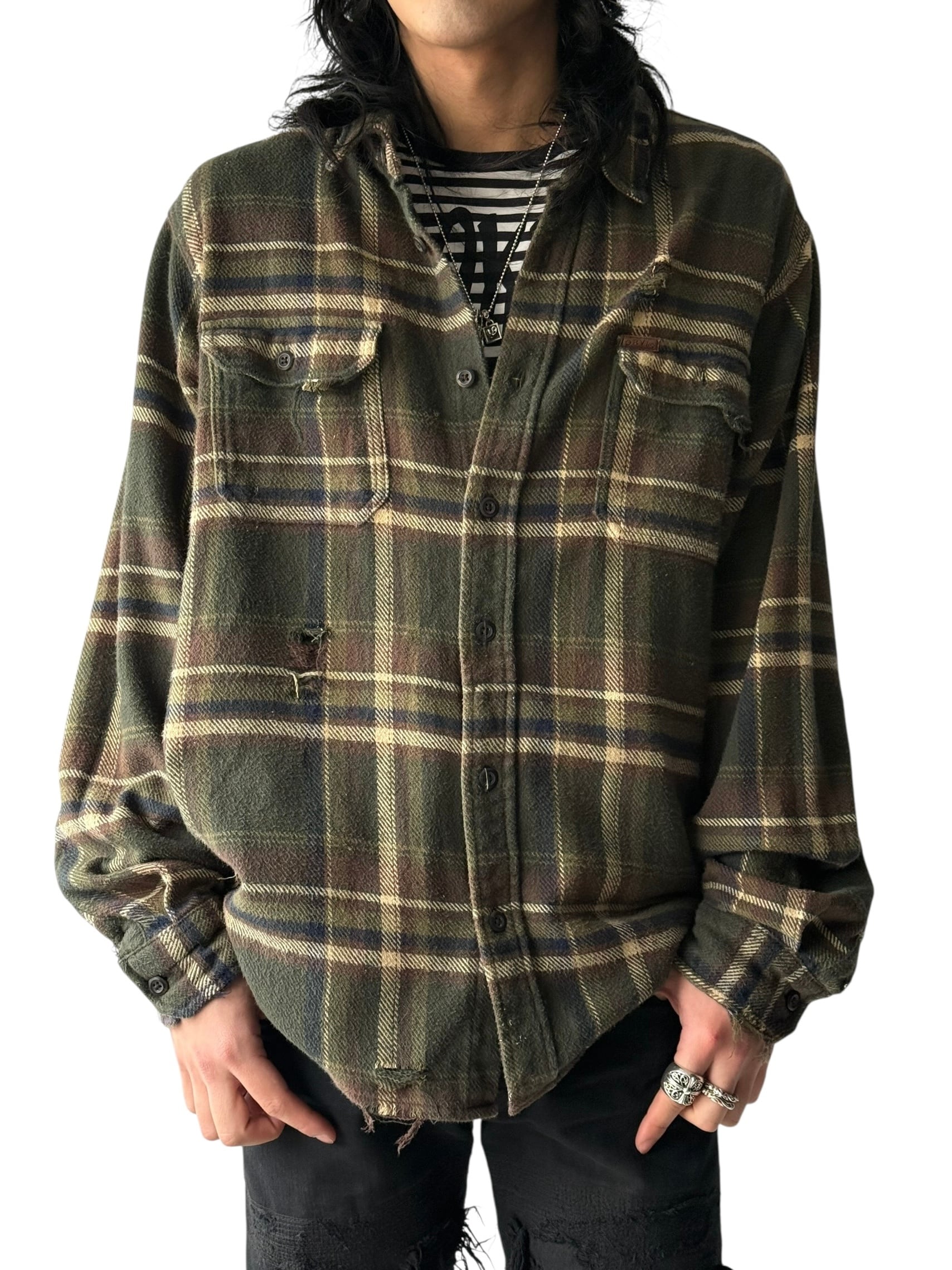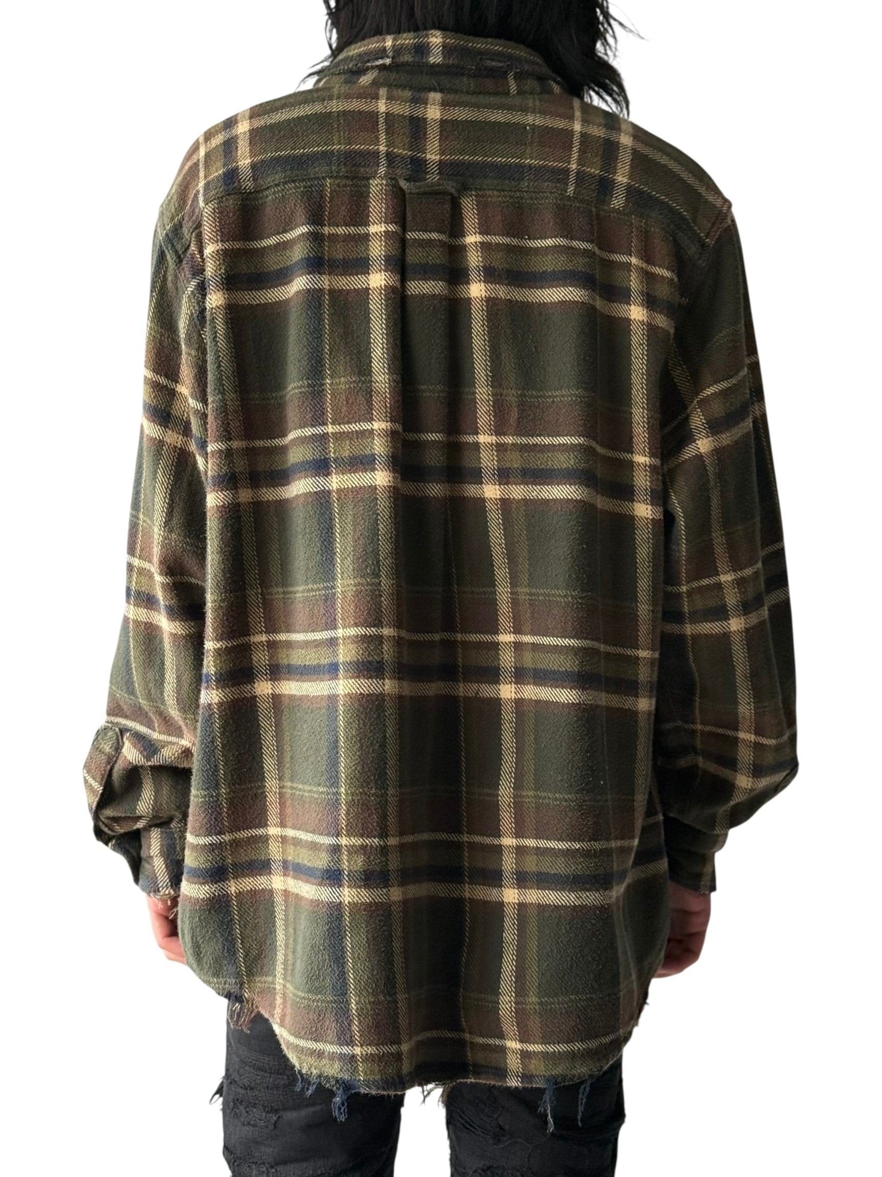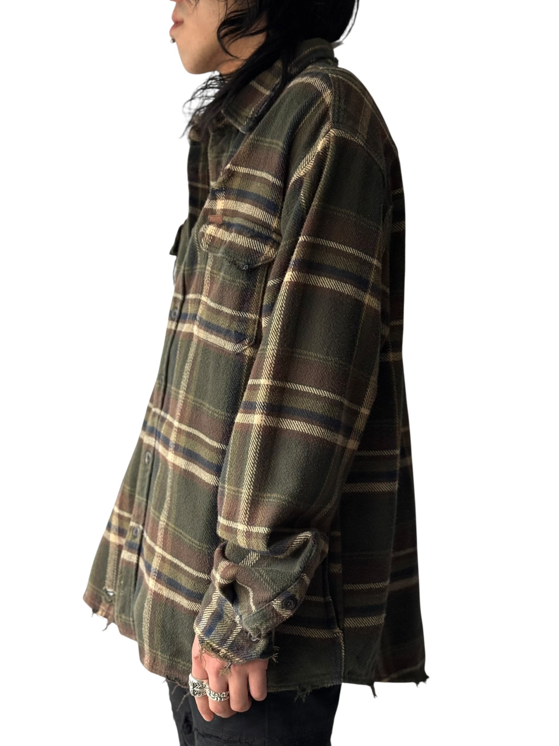 Oversized Heavy flannel crushed design check shirt L/S size:XXL