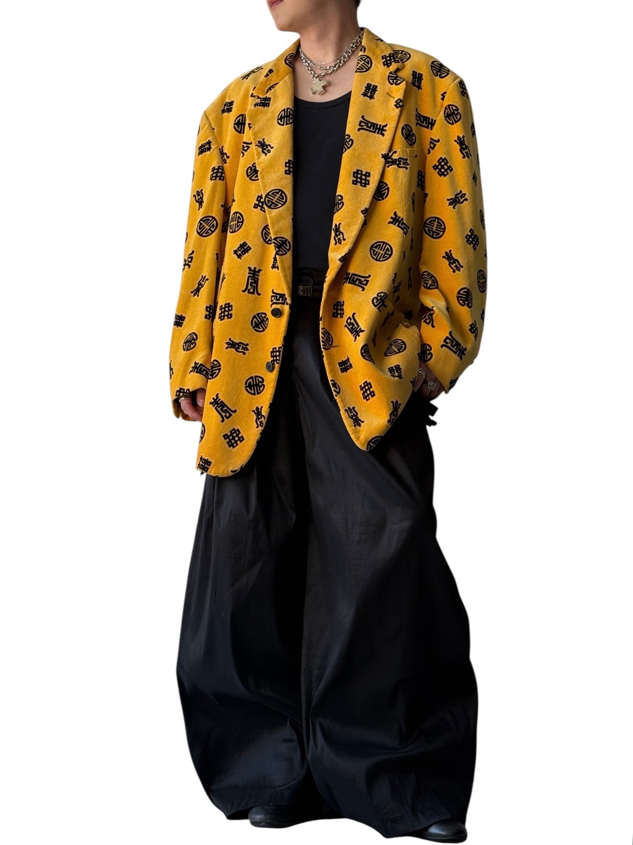 国の伝統的な文様である「喜喜(ダブルハピネス)」や、長寿を意味する「寿」をモチーフにした漢字のデザインが特徴的な総柄が他には無い存在感とオーラ✨