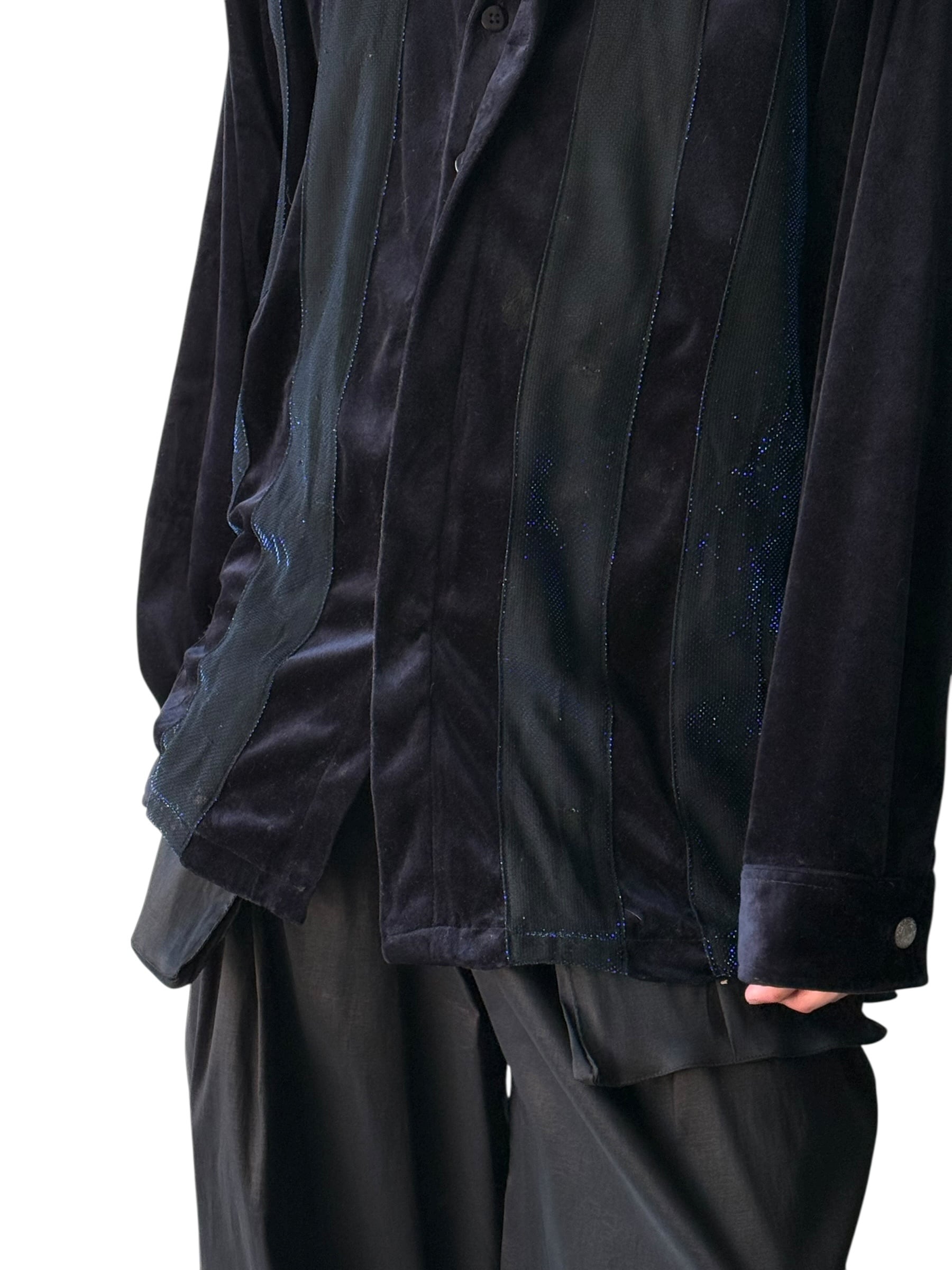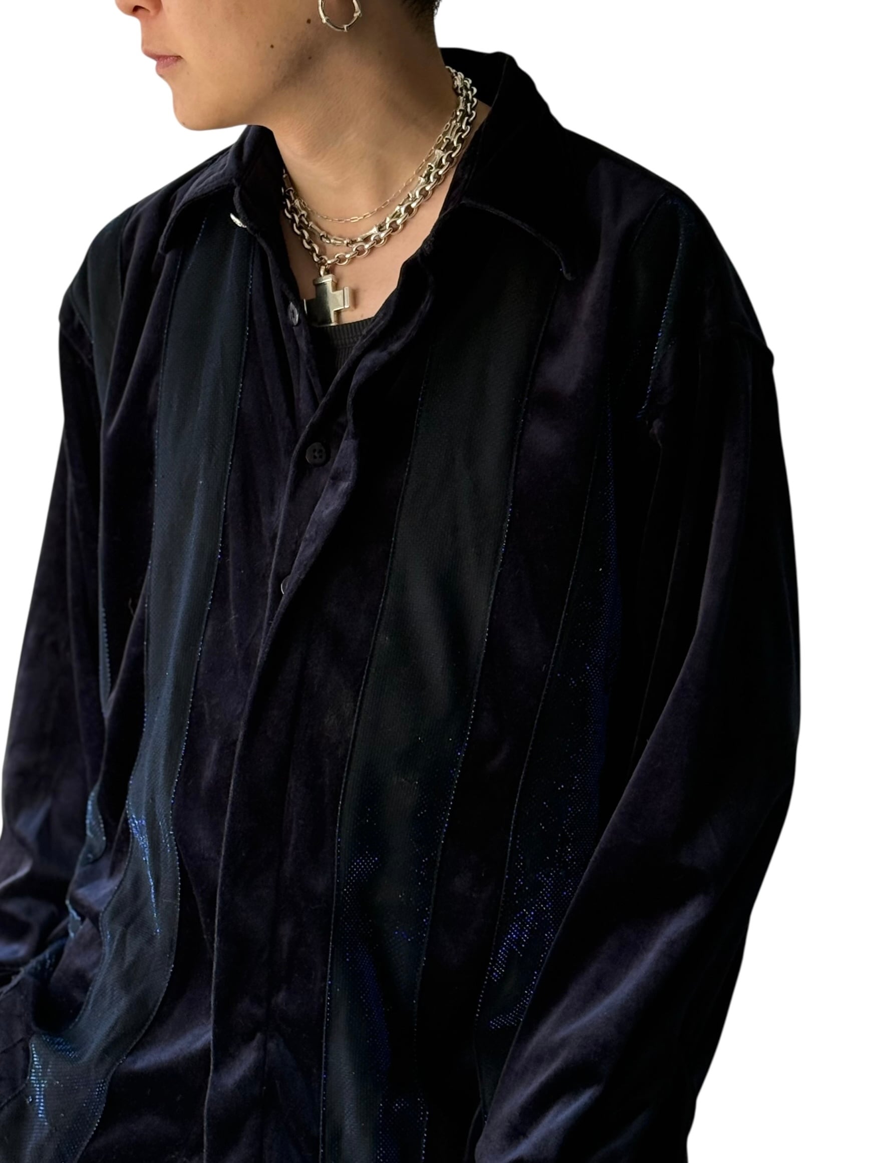 奇跡のラメ入りでベロア素材のストライプデザインなお洒落シャツ‼️ ベロアの重厚感とメタルボタンやラメの高級感があわさりとてつもない❗️