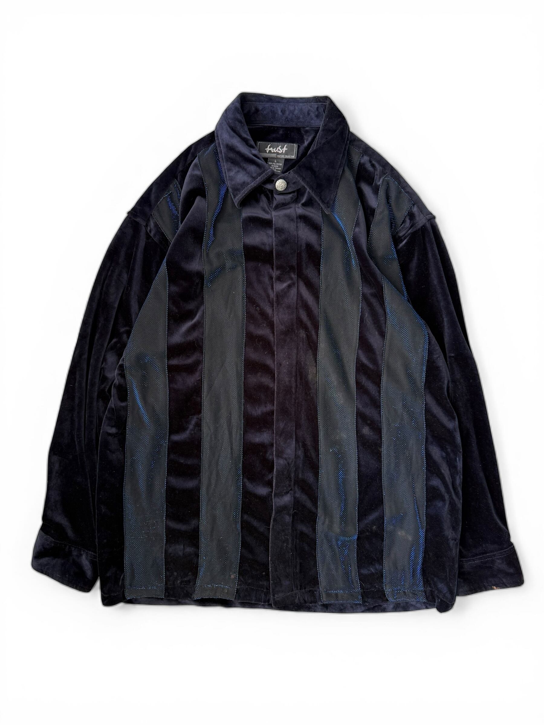 【trust】Lame striped velour shirt