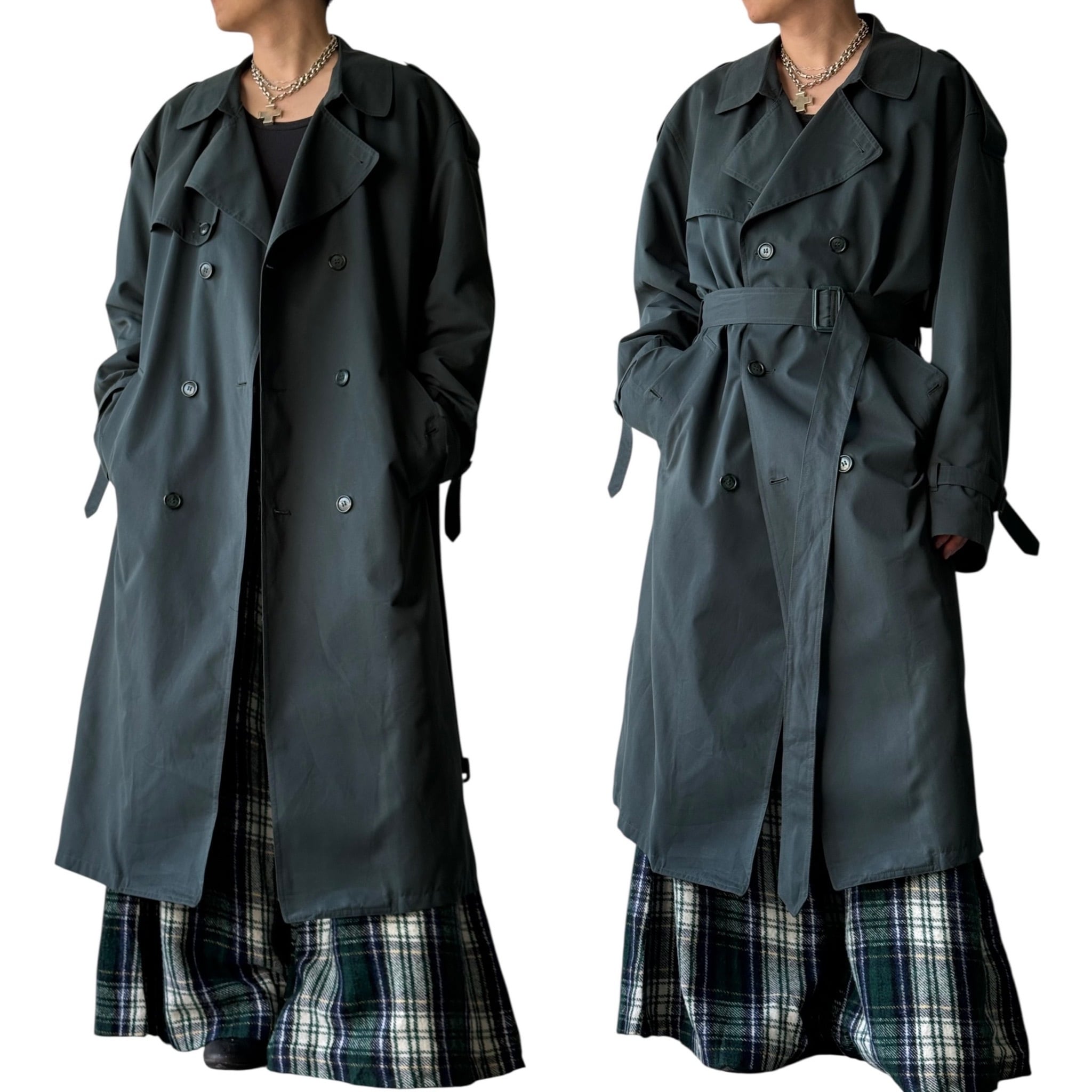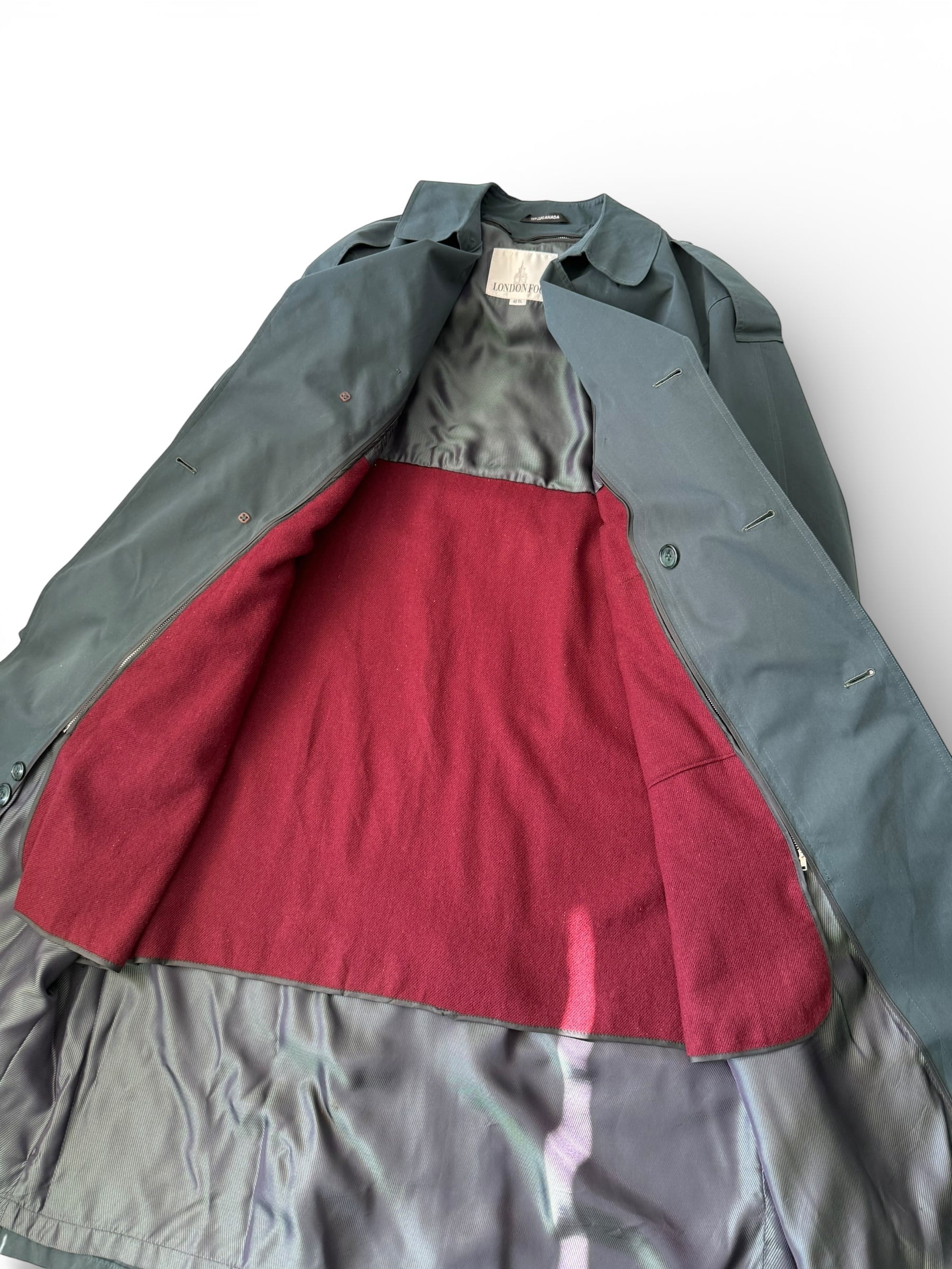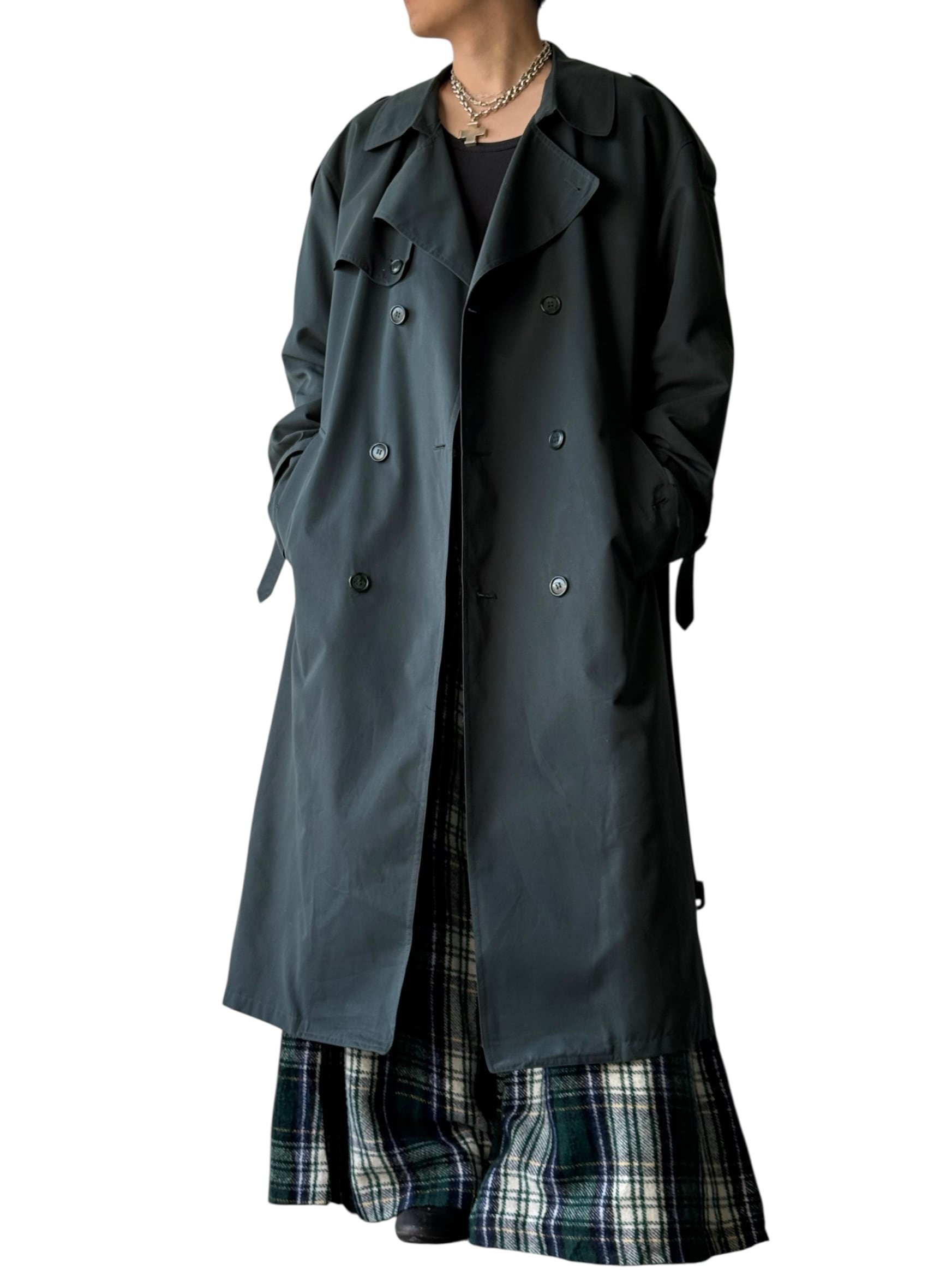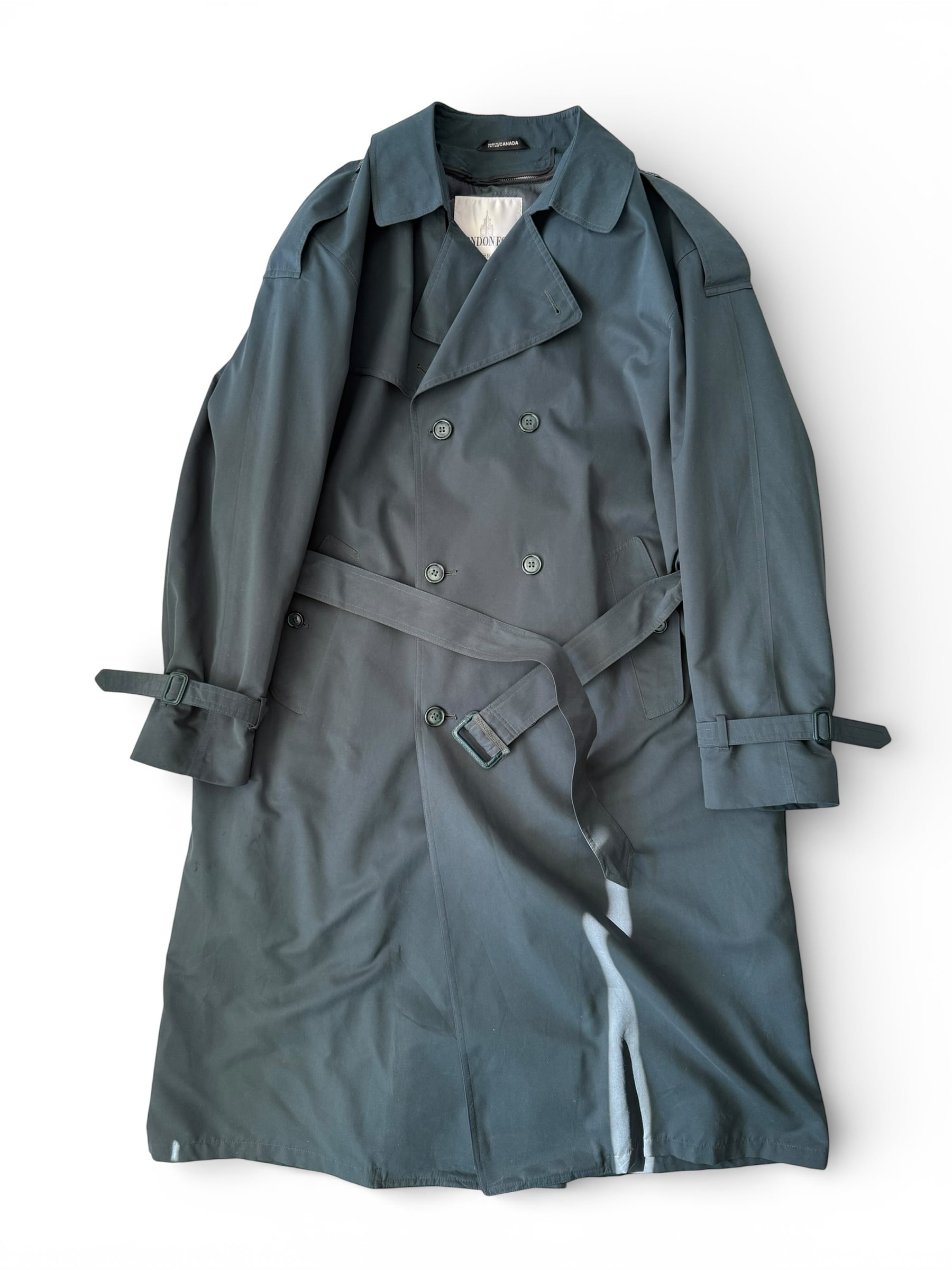 【80s LONDON FOG】"MADE IN CANADA" Green maxi length long double trench coat