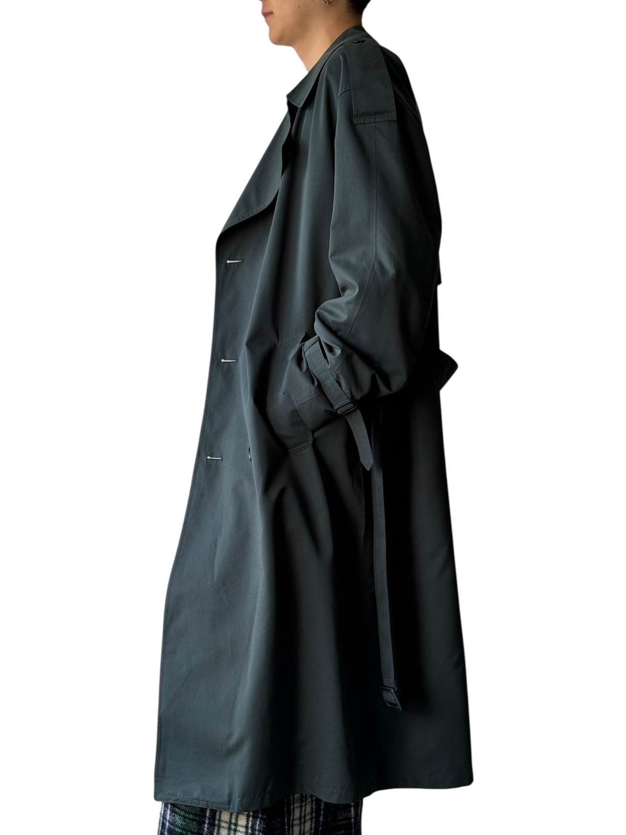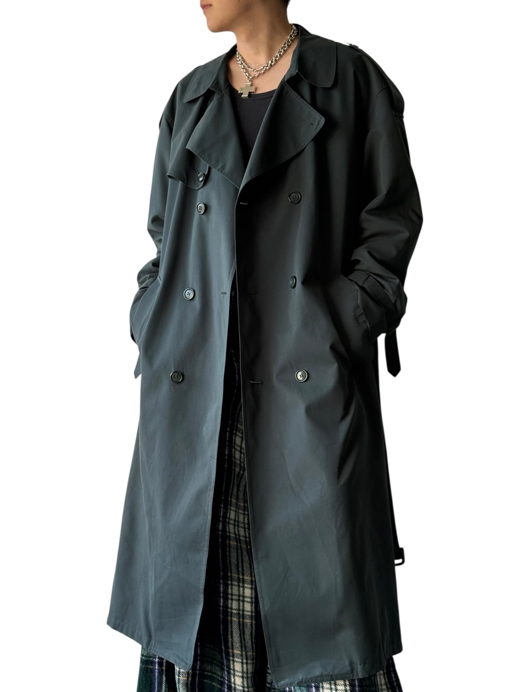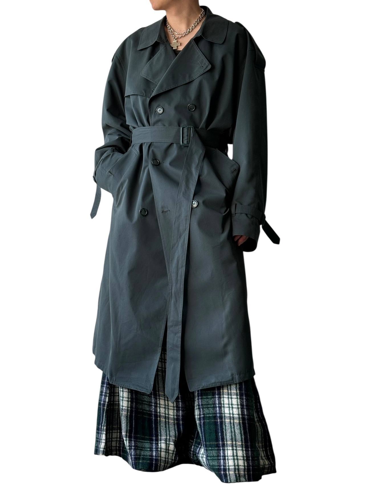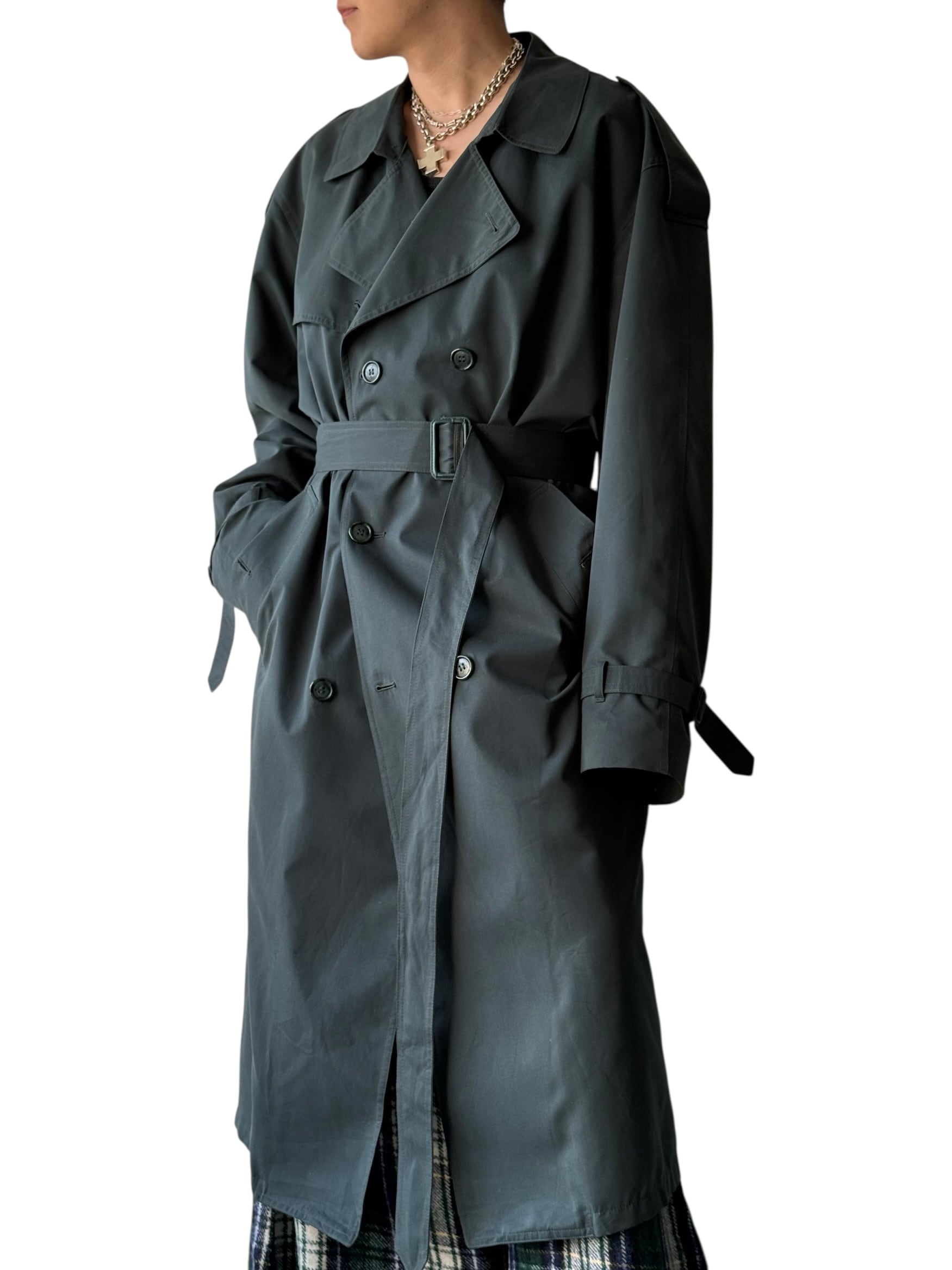 【80s LONDON FOG】"MADE IN CANADA" Green maxi length long double trench coat