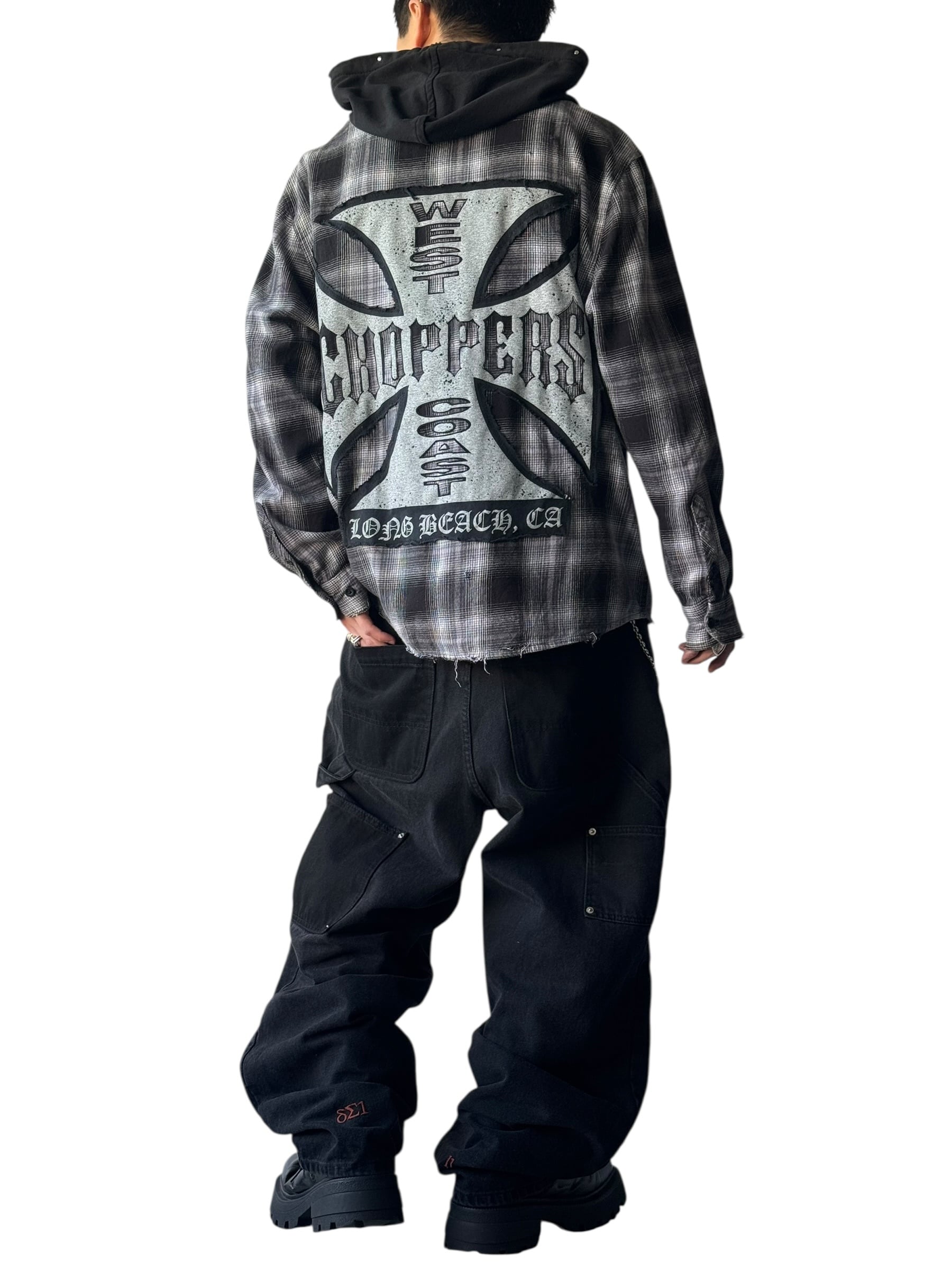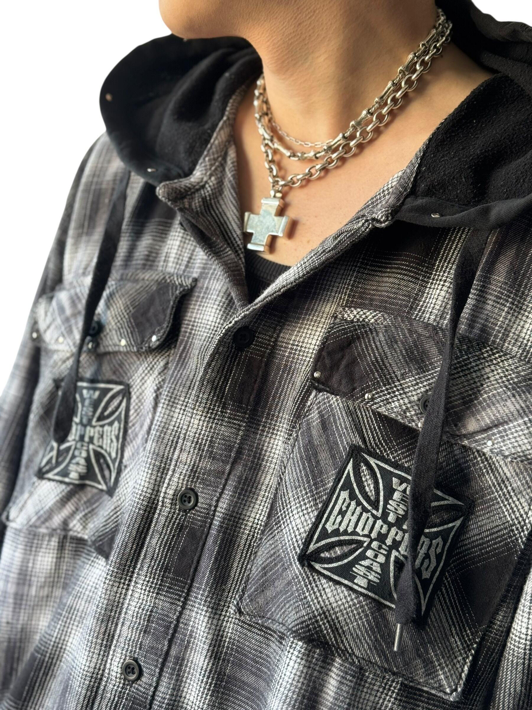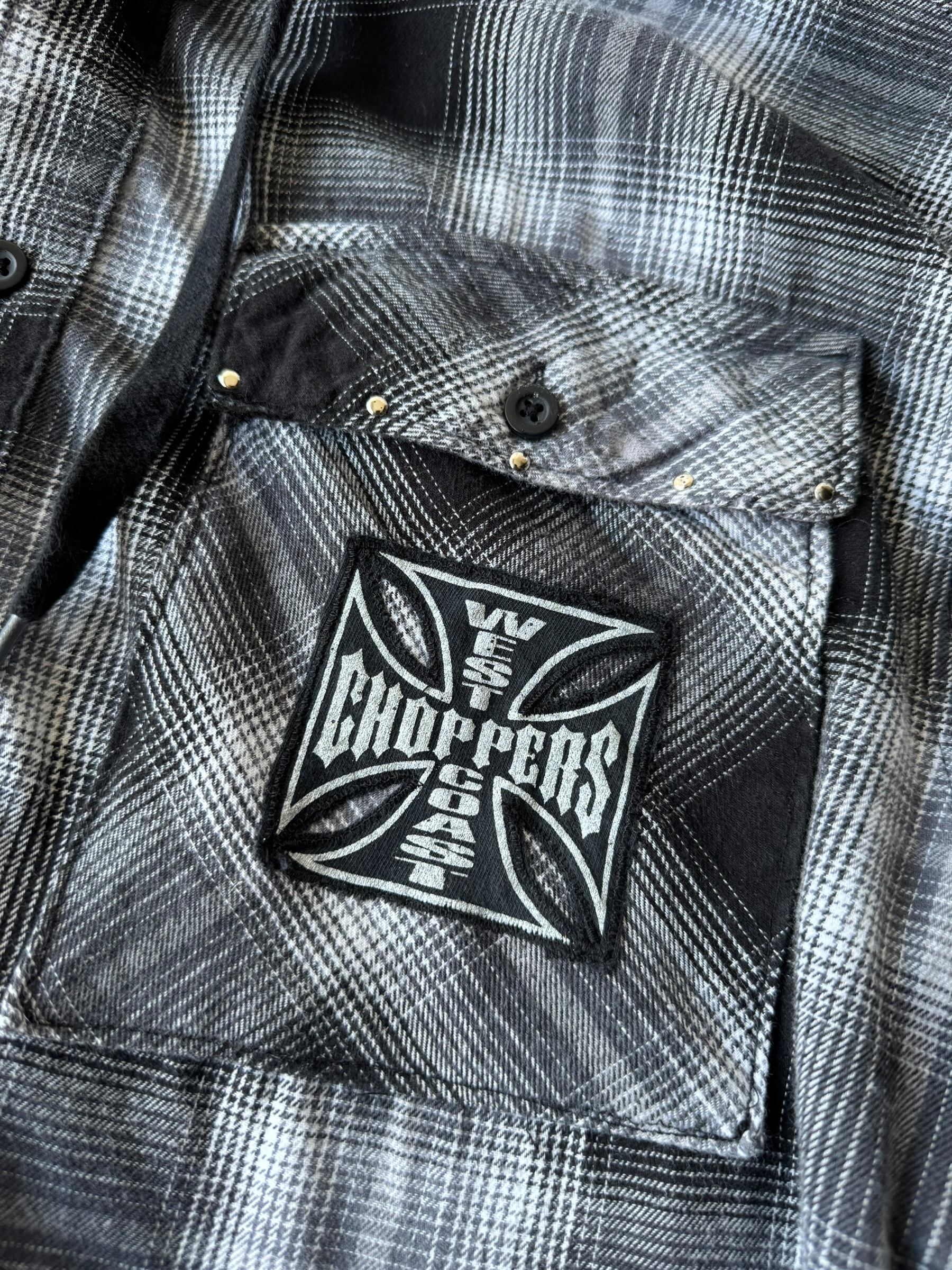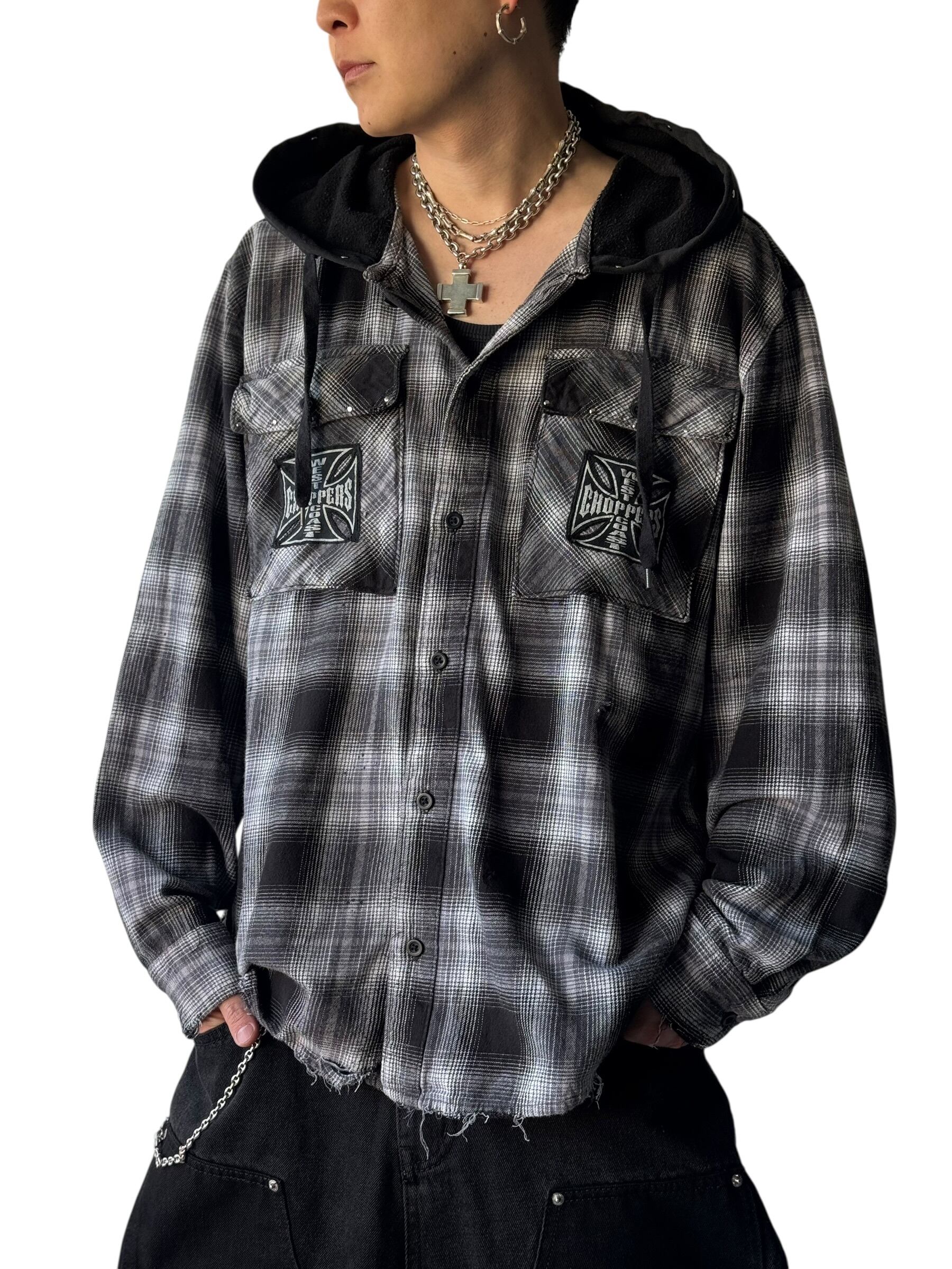 ♾️ Reworked Archive Piece ♾️ "WEST COAST CHOPPERS" Patch Custom Hooded Check L/S Shirt