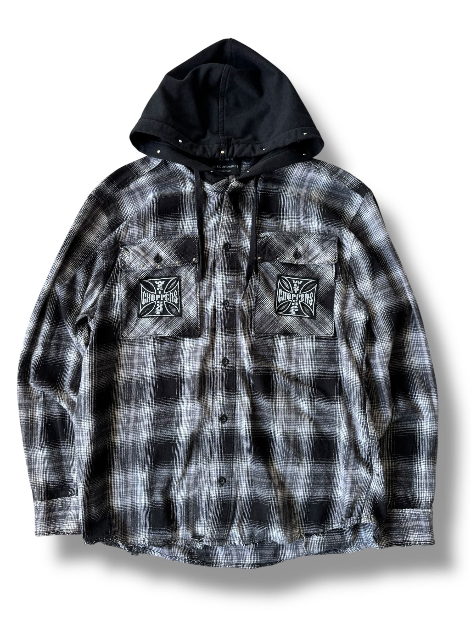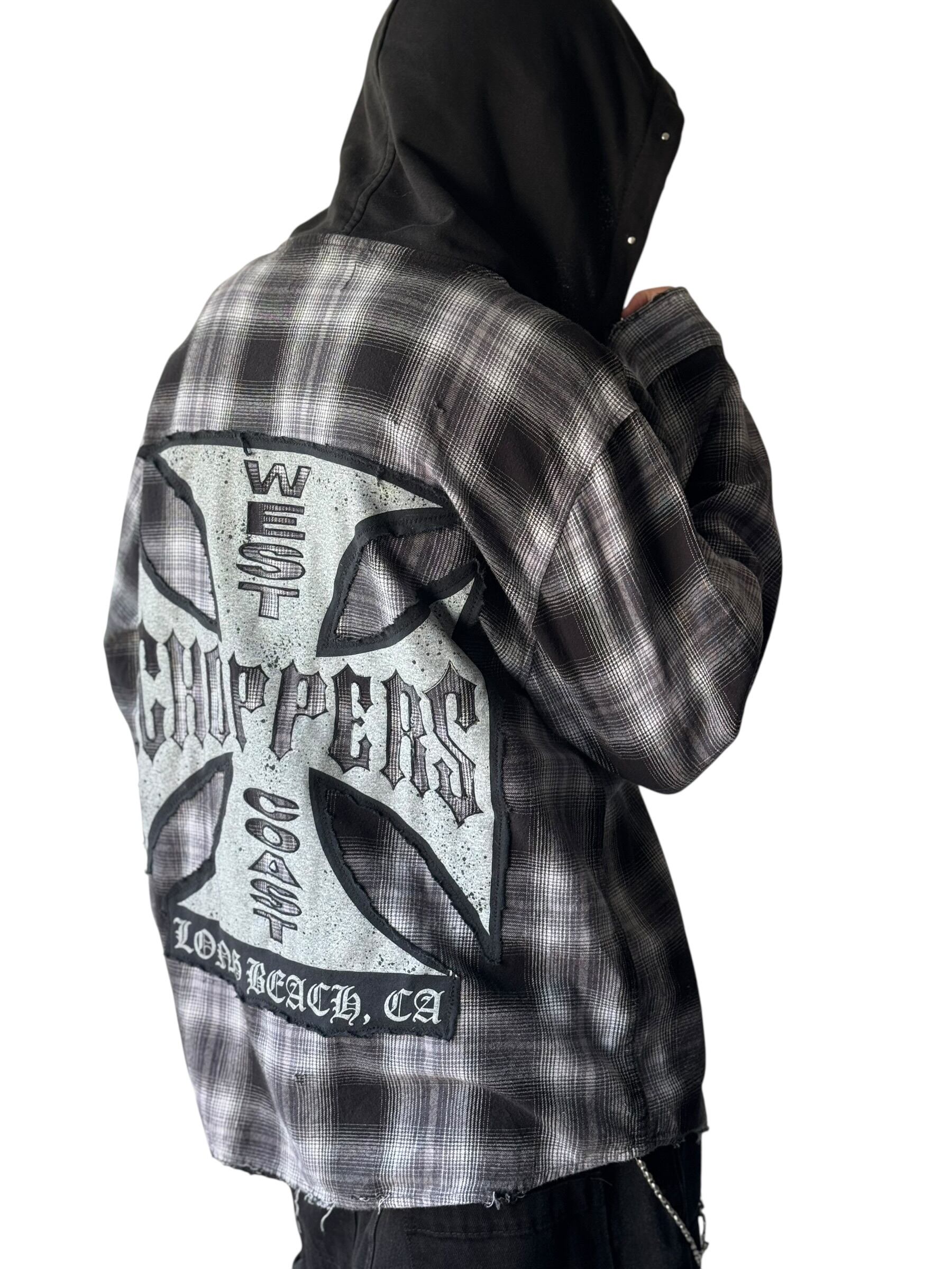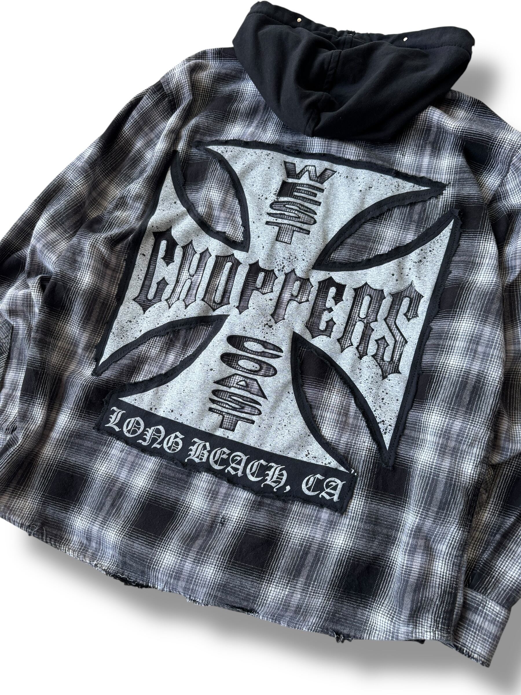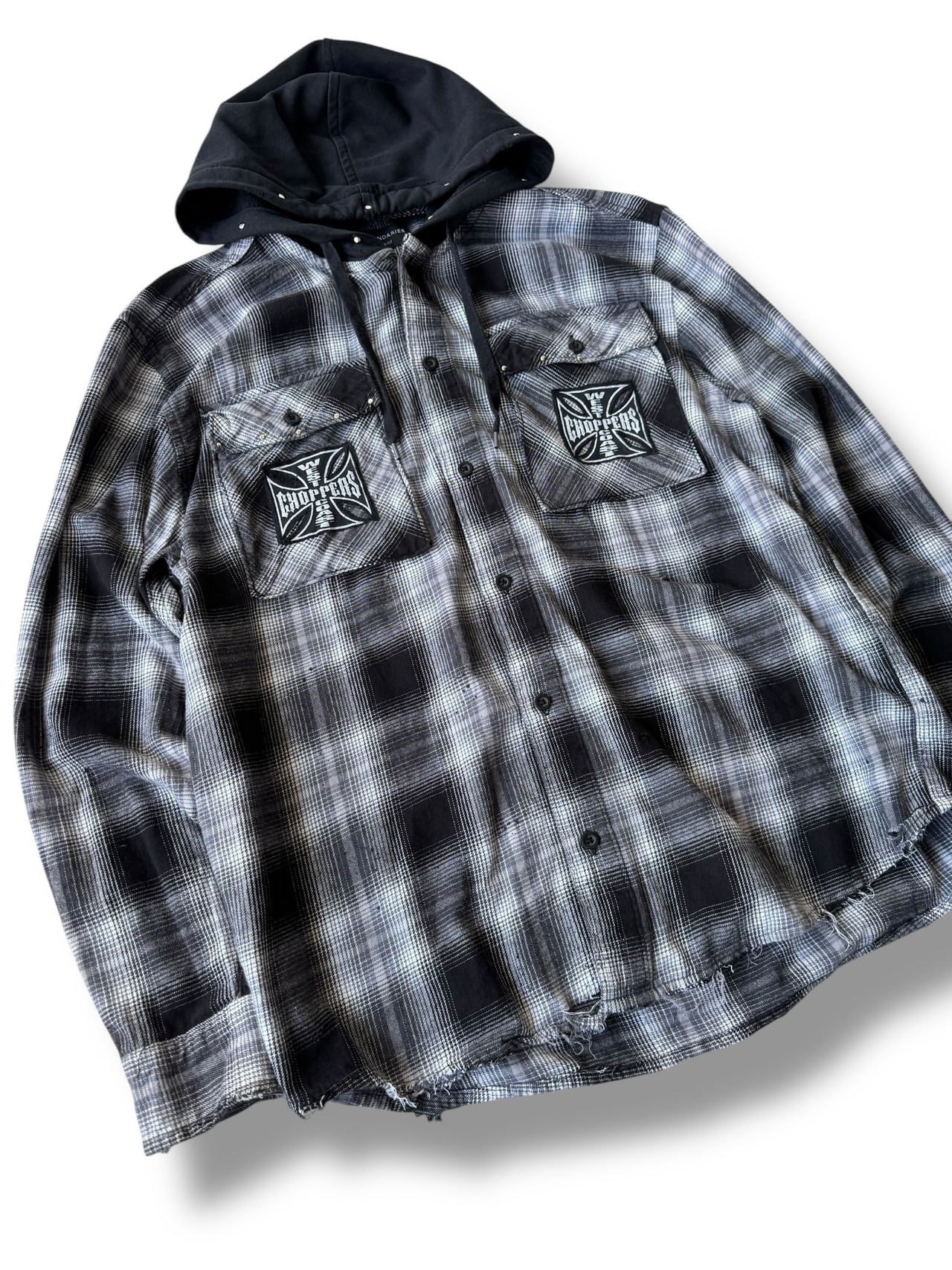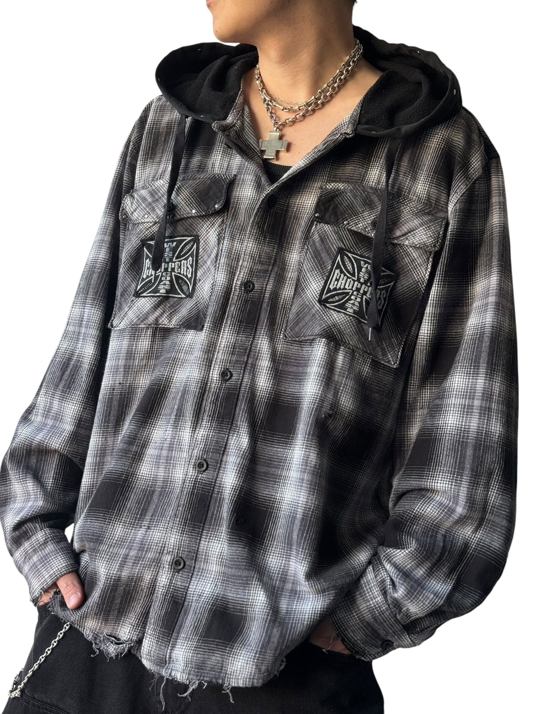 ♾️ Reworked Archive Piece ♾️ "WEST COAST CHOPPERS" Patch Custom Hooded Check L/S Shirt