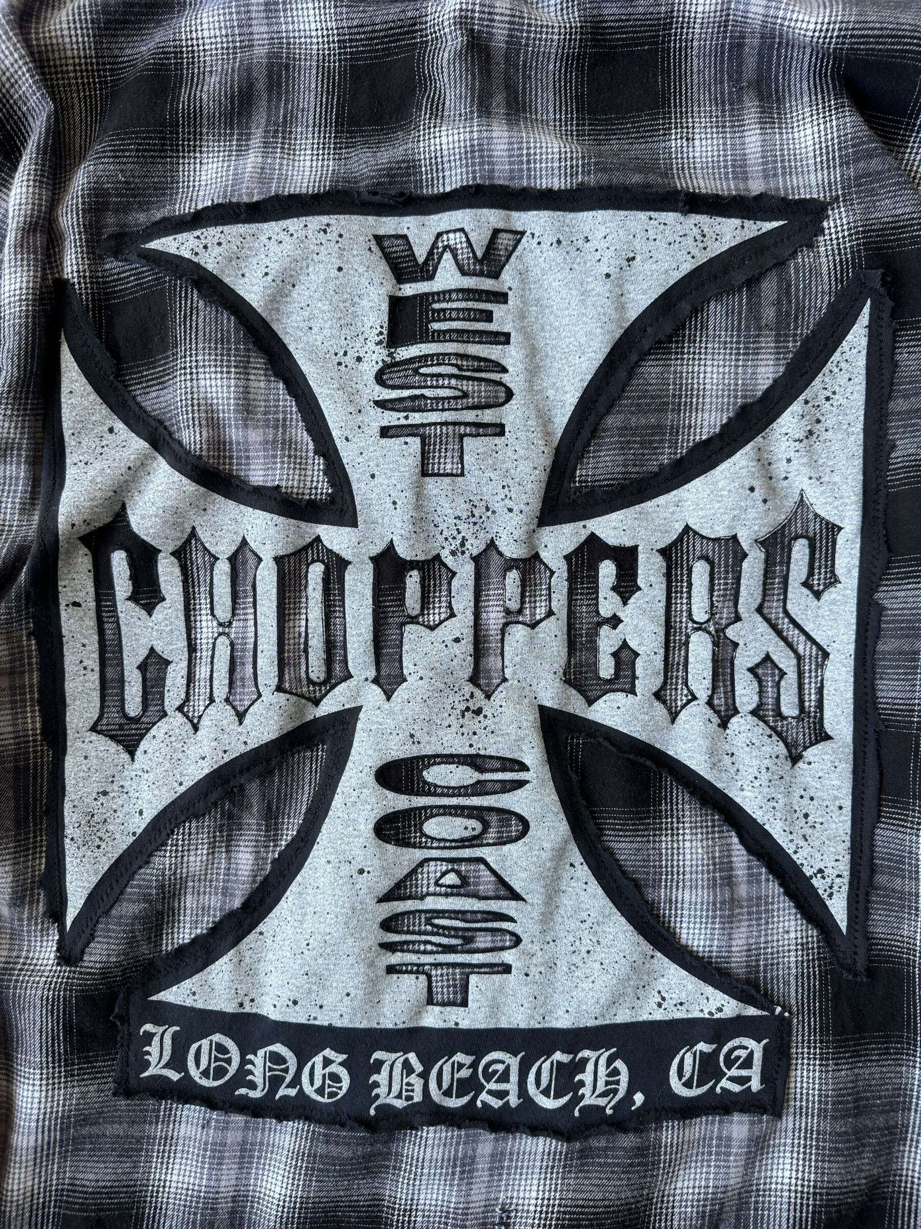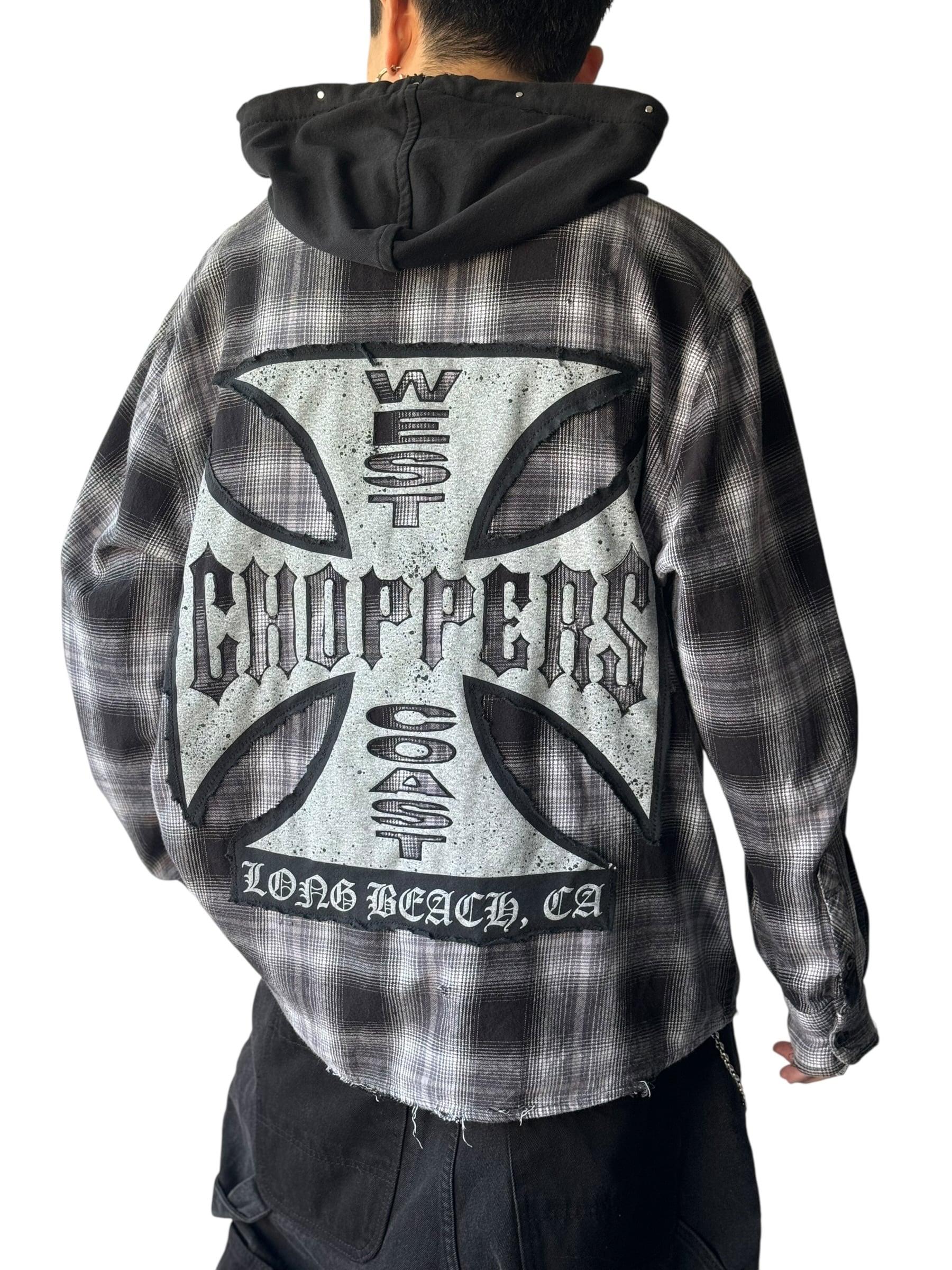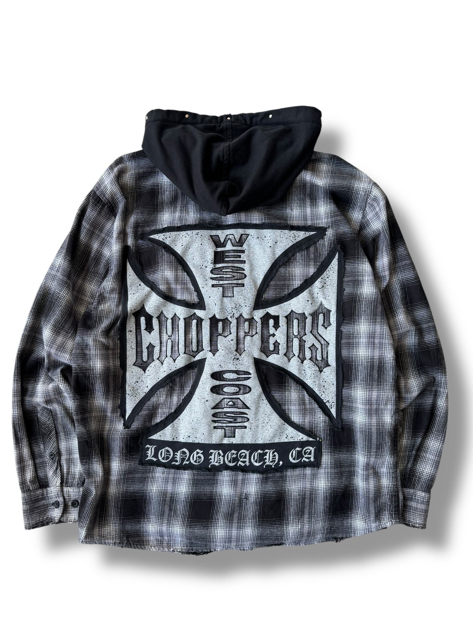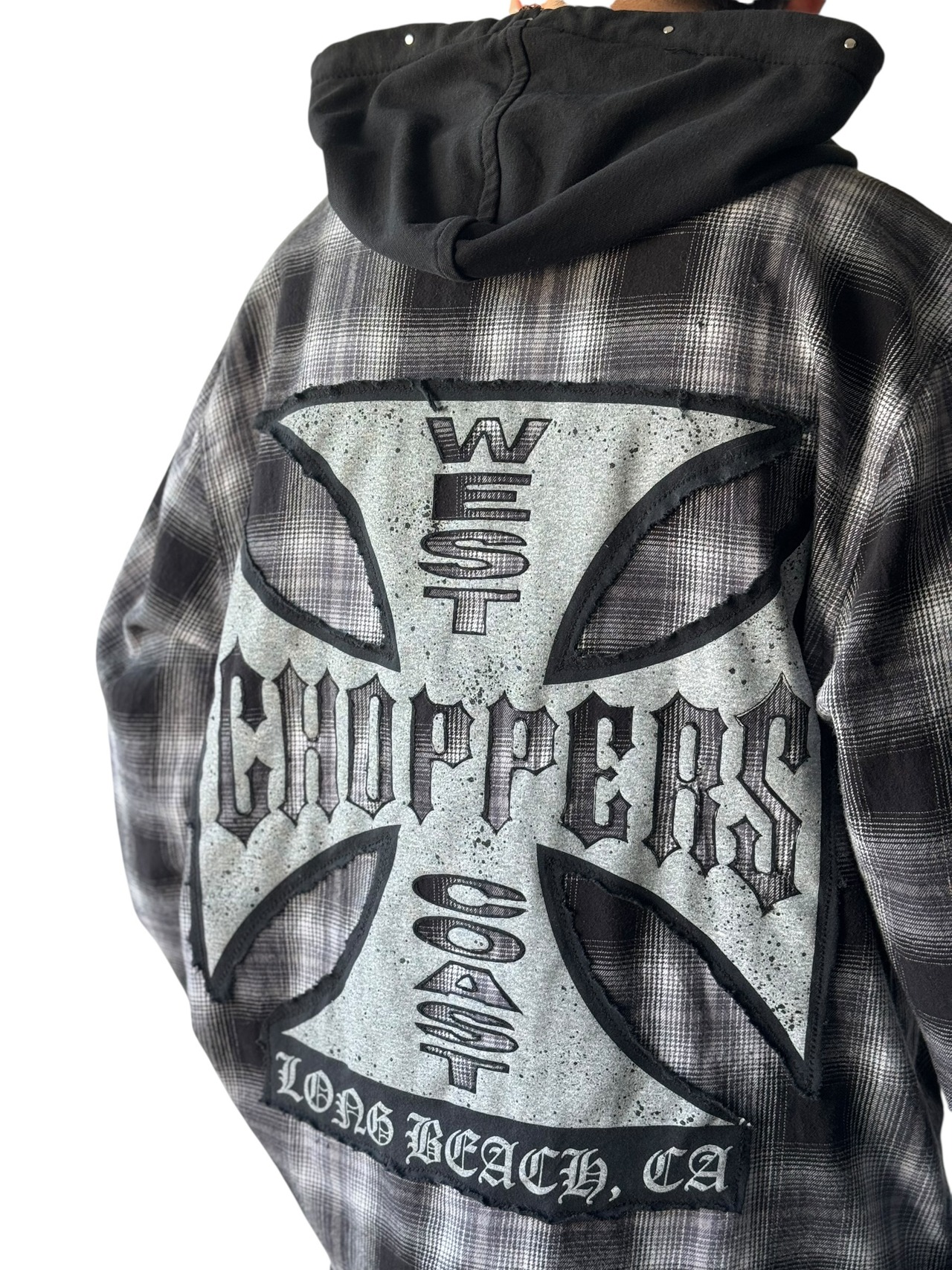 ♾️ Reworked Archive Piece ♾️ "WEST COAST CHOPPERS" Patch Custom Hooded Check L/S Shirt