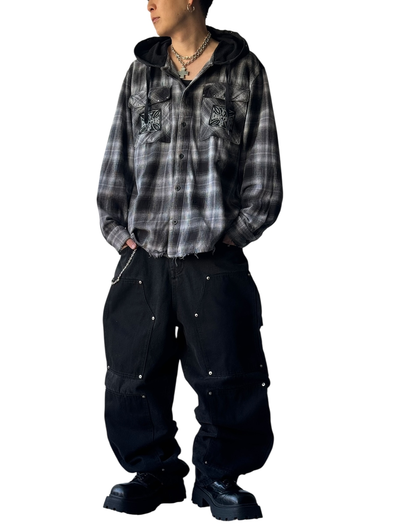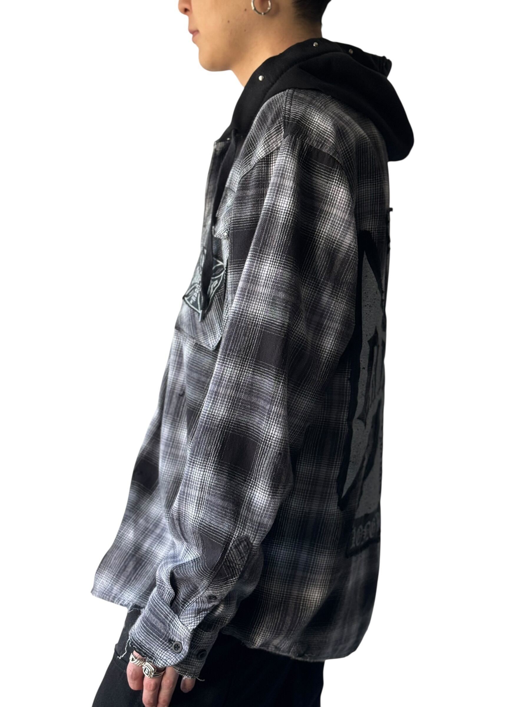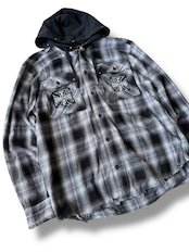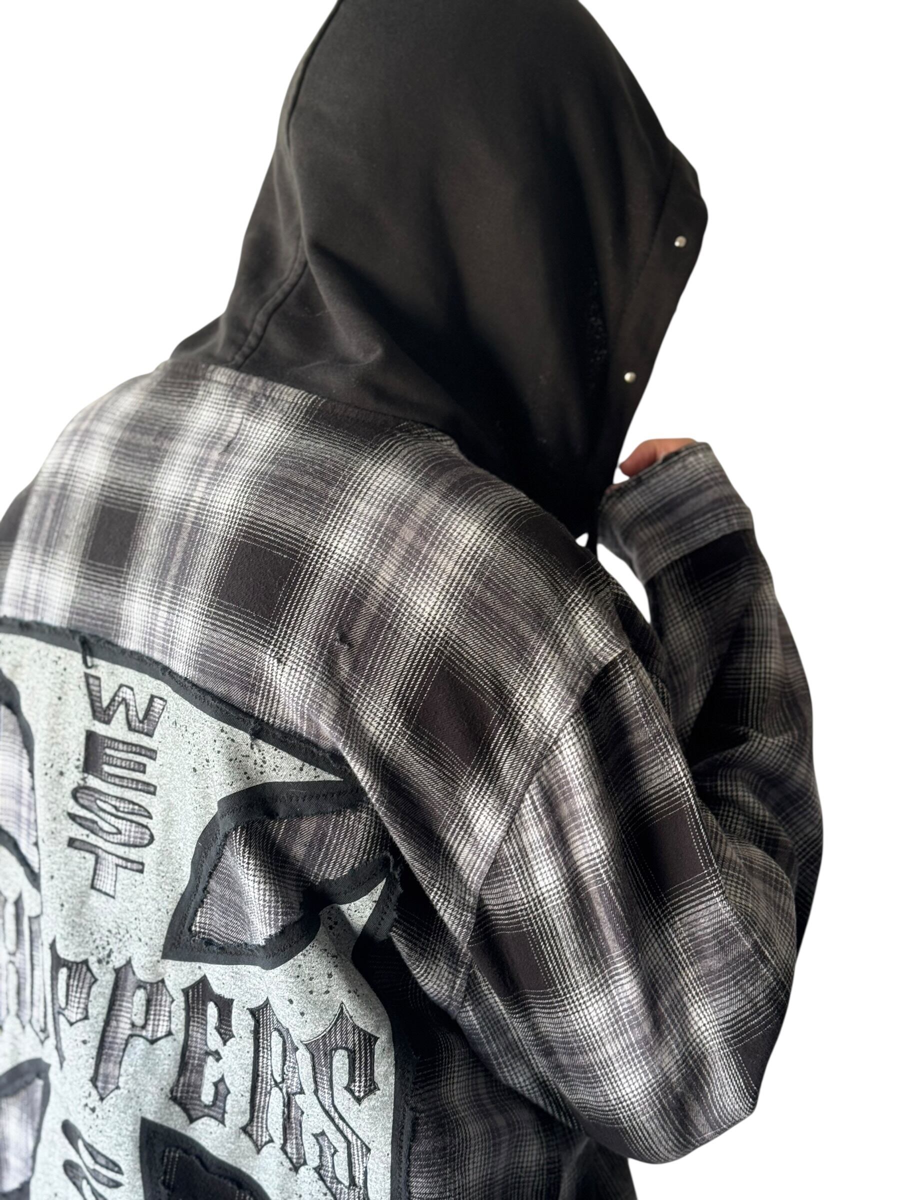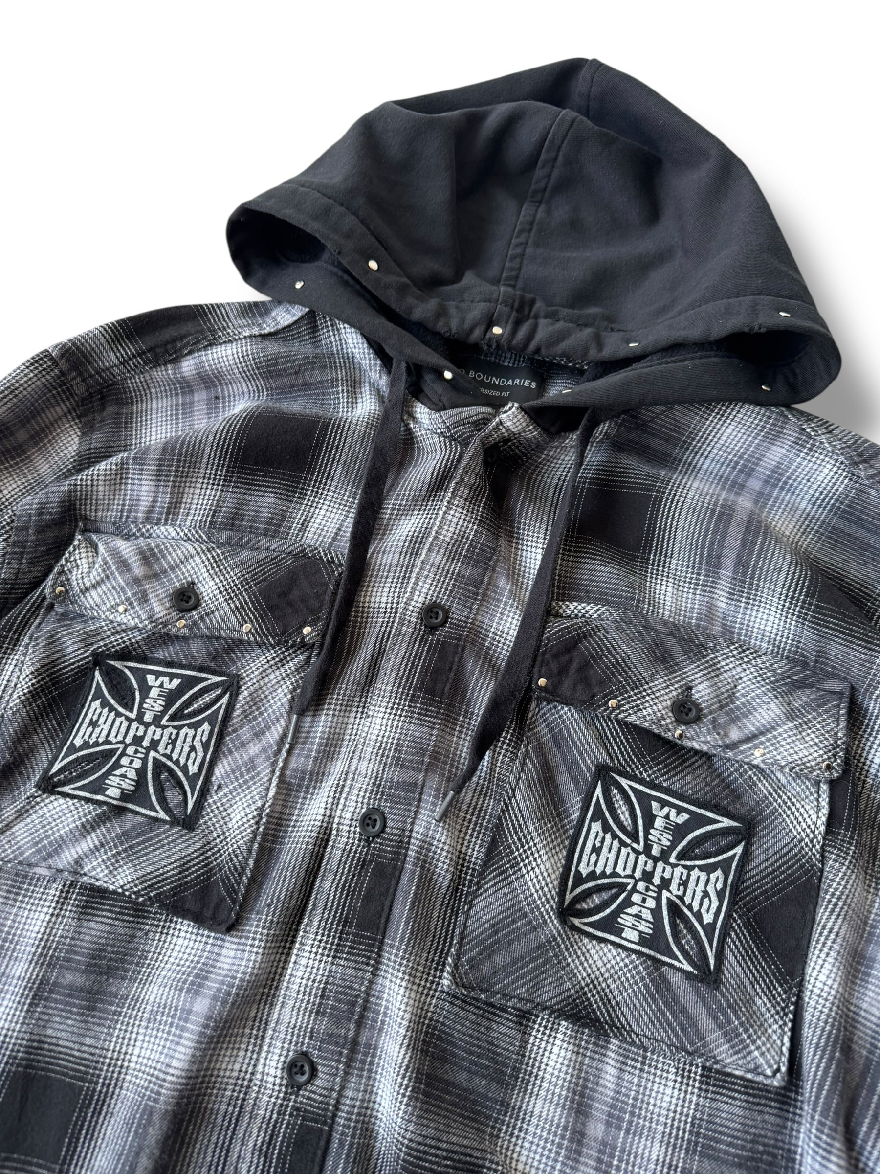 ♾️ Reworked Archive Piece ♾️ "WEST COAST CHOPPERS" Patch Custom Hooded Check L/S Shirt
