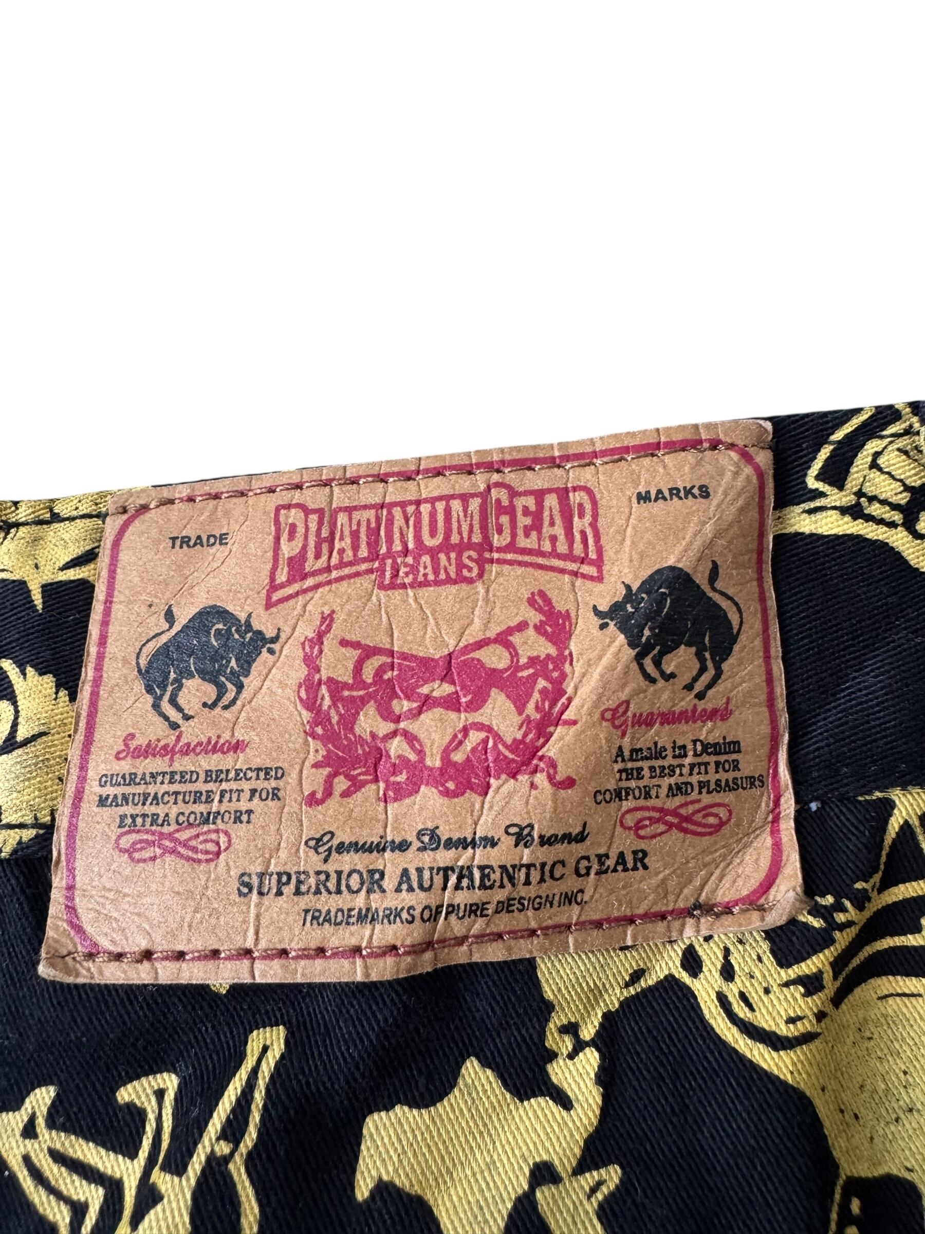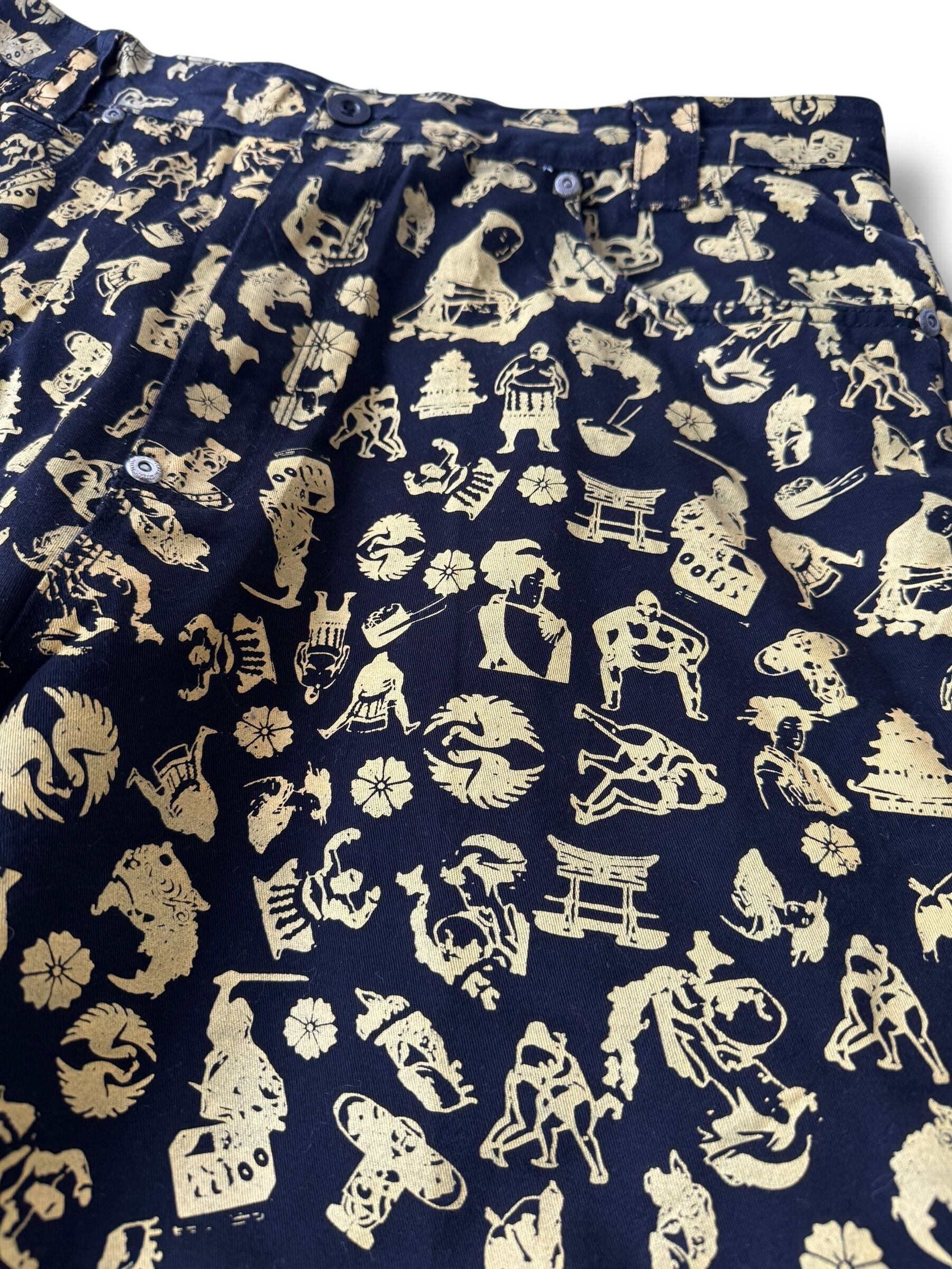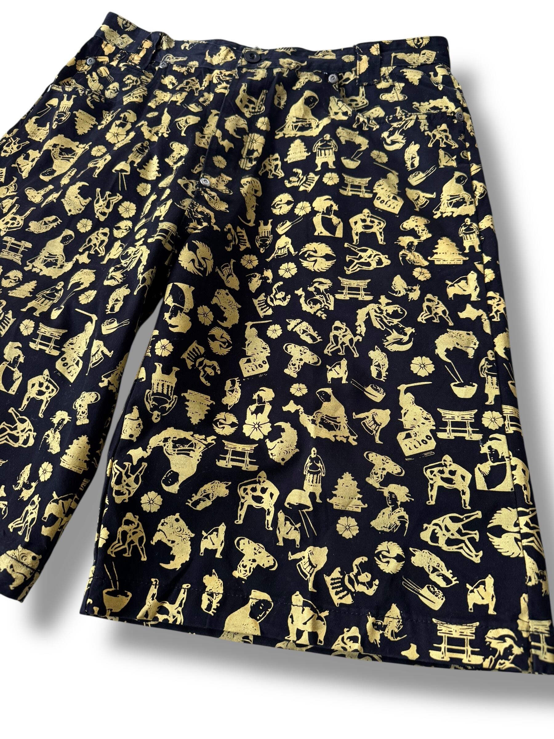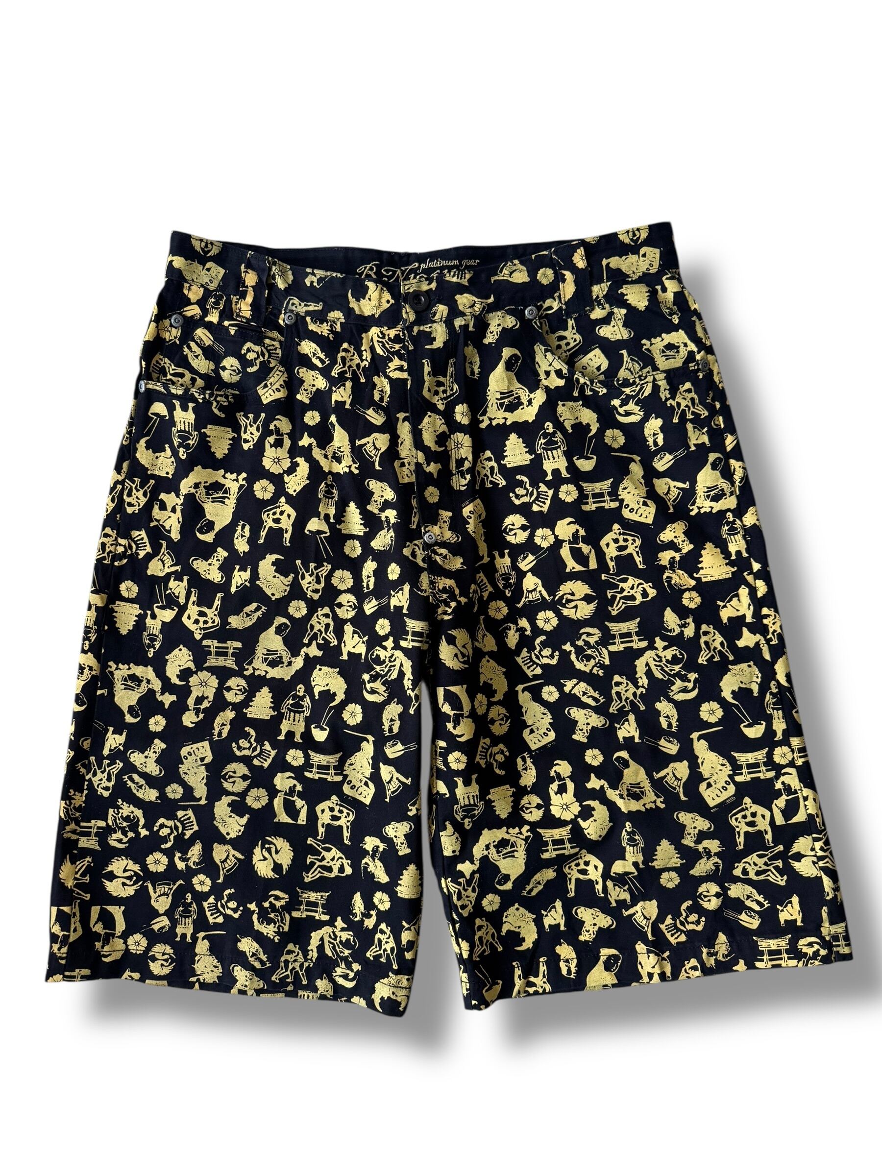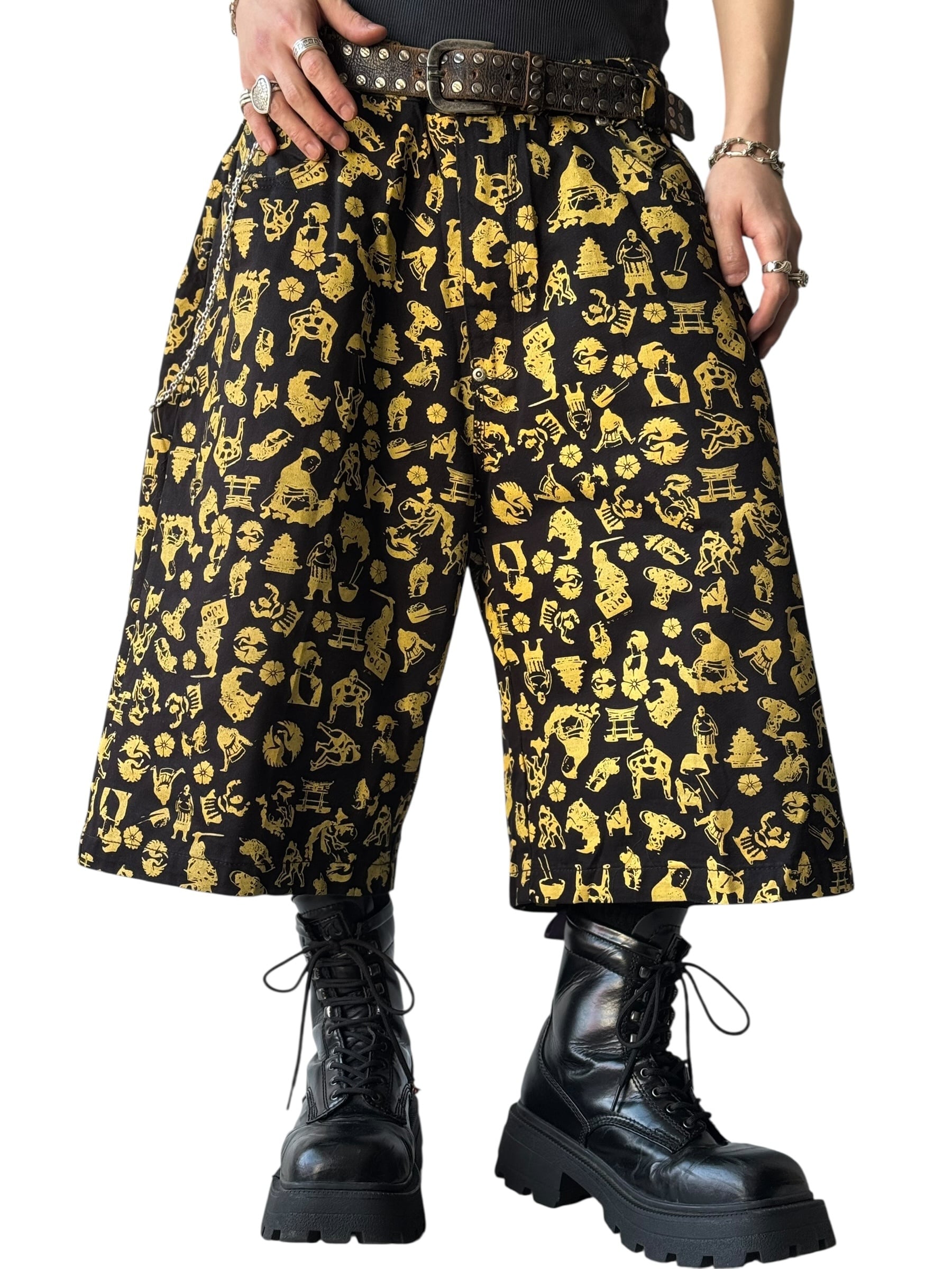 ♾PLATINUM GEAR JEANS♾ Japanese design all-over pattern wide buggy shorts size 40