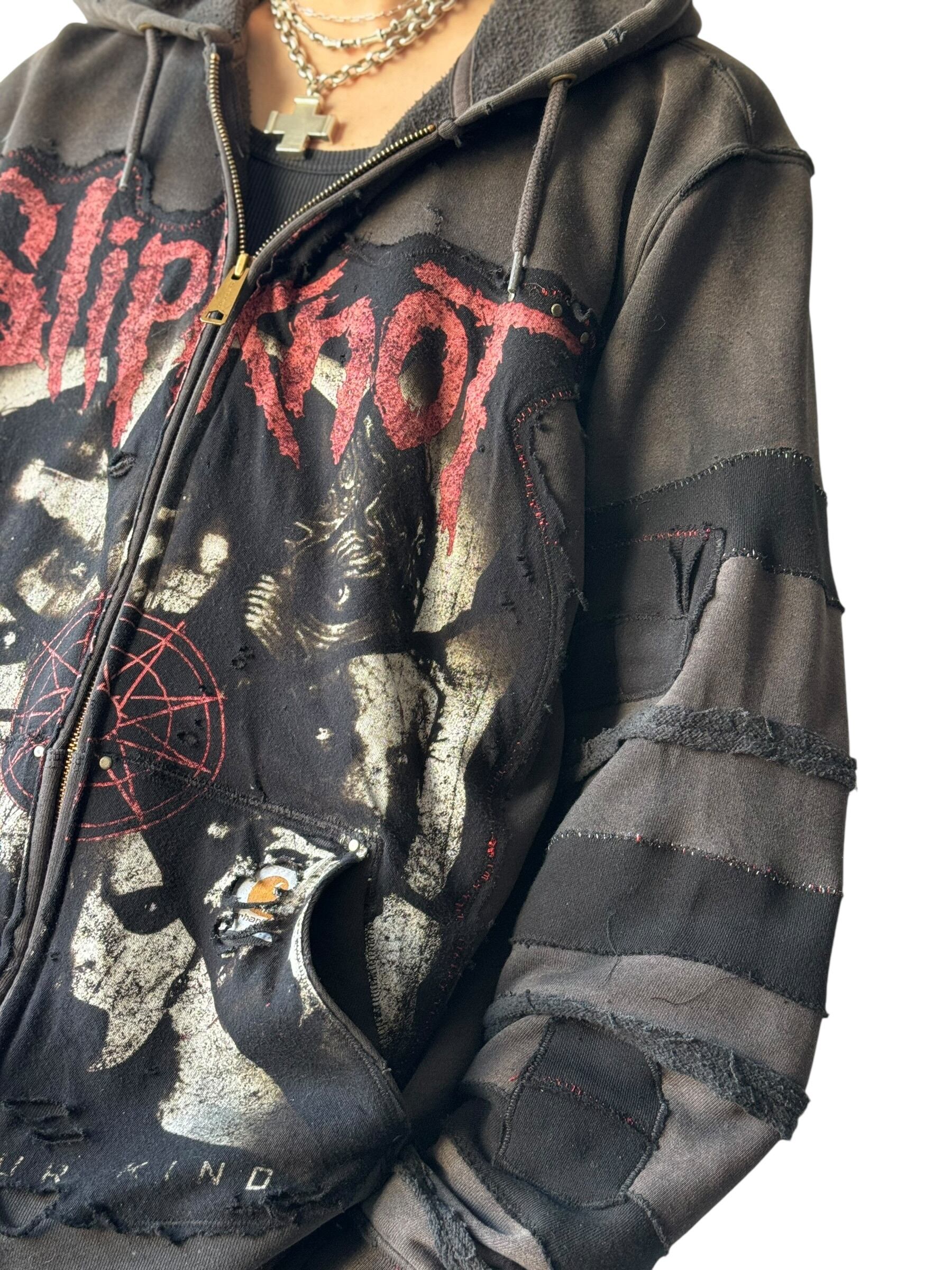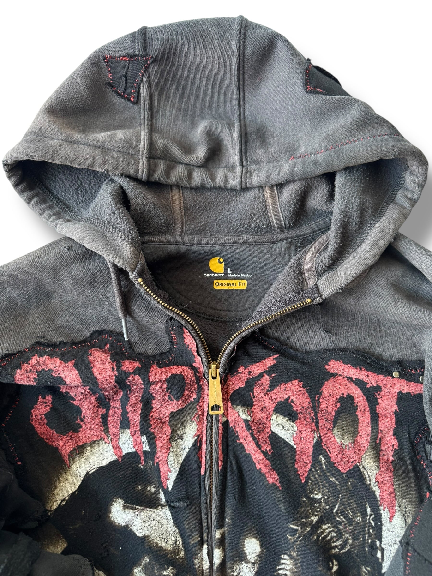 ♾Carhartt♾ good faded custom grunge design zip up hoodie sizeL