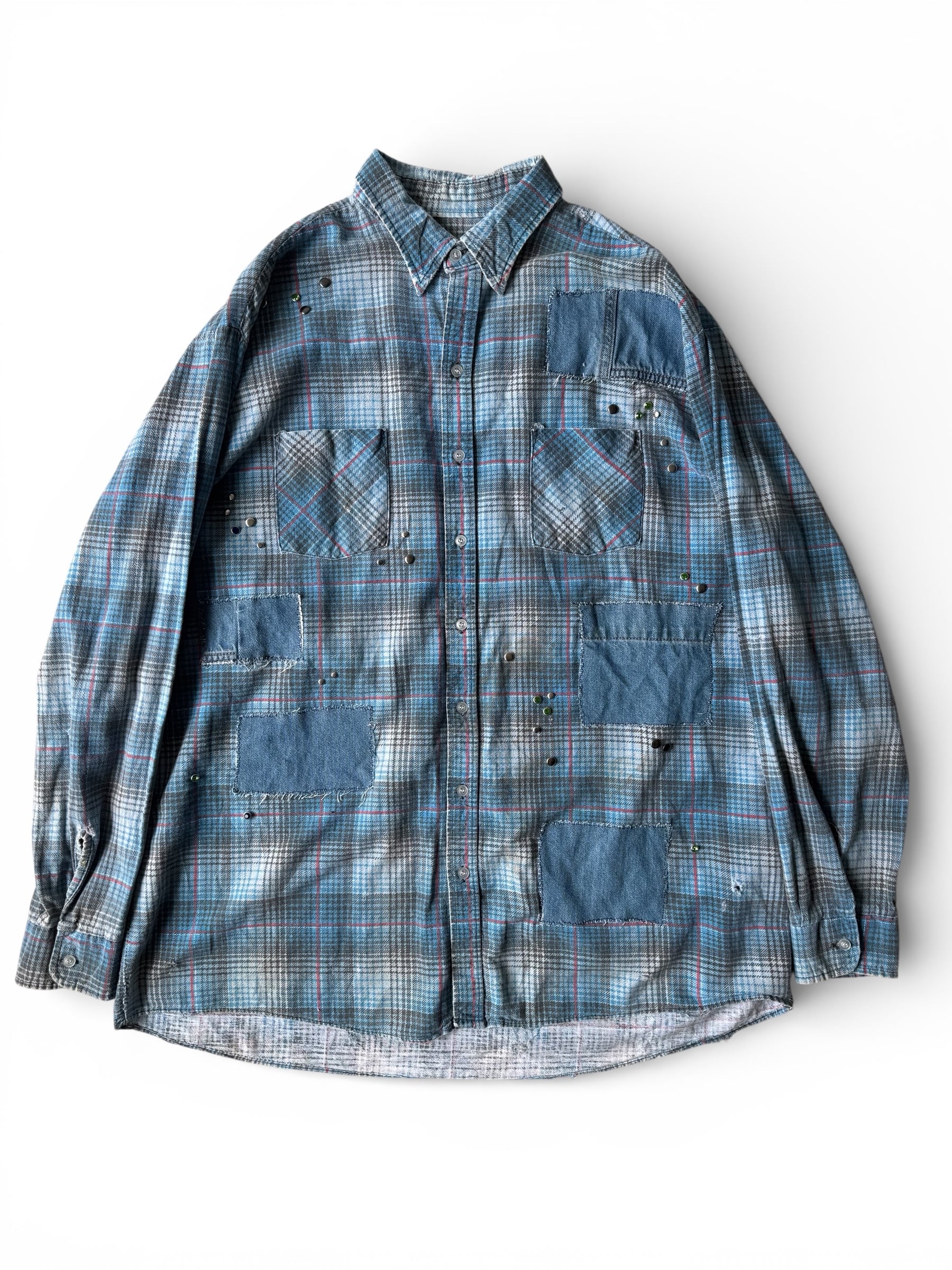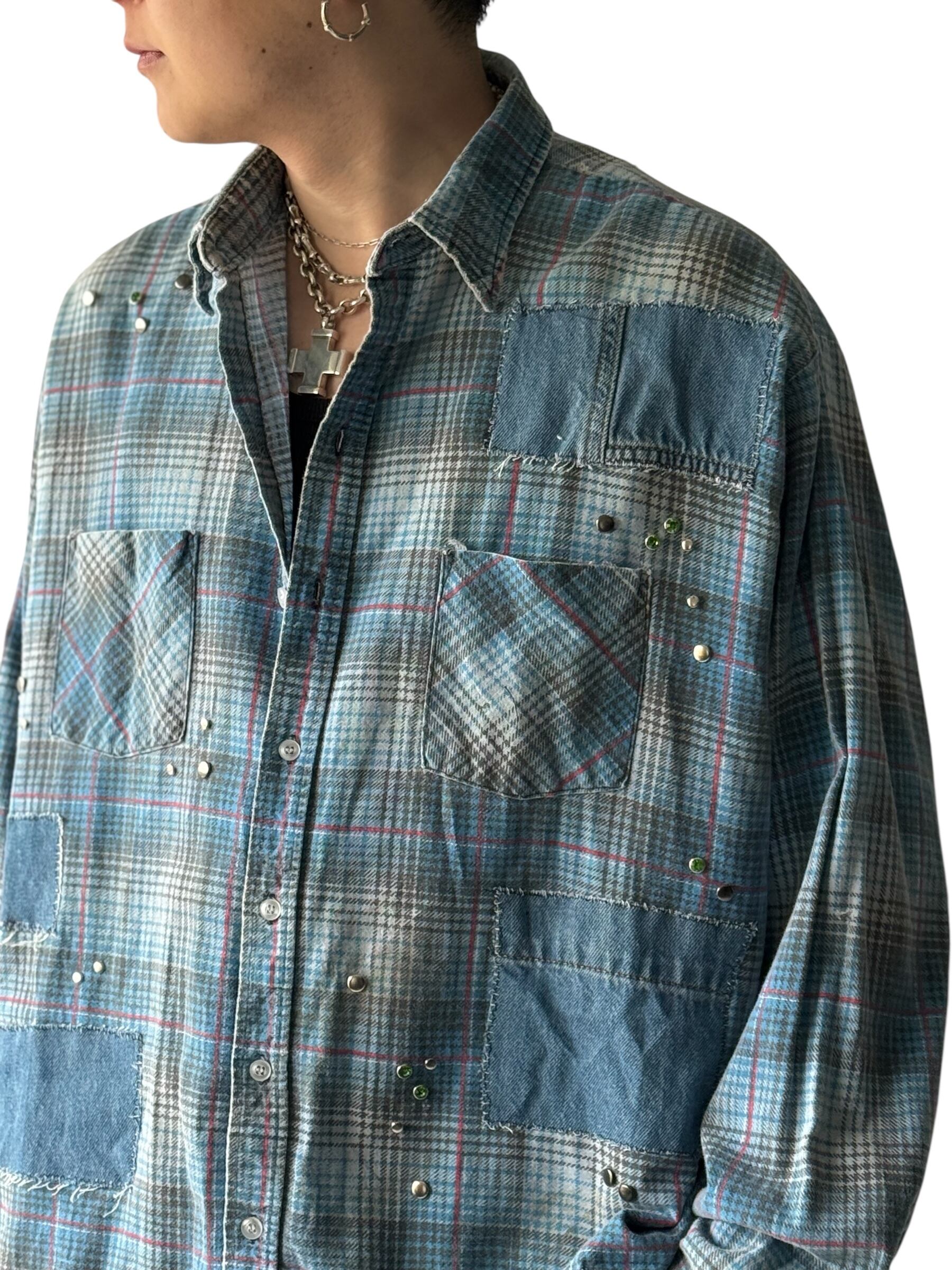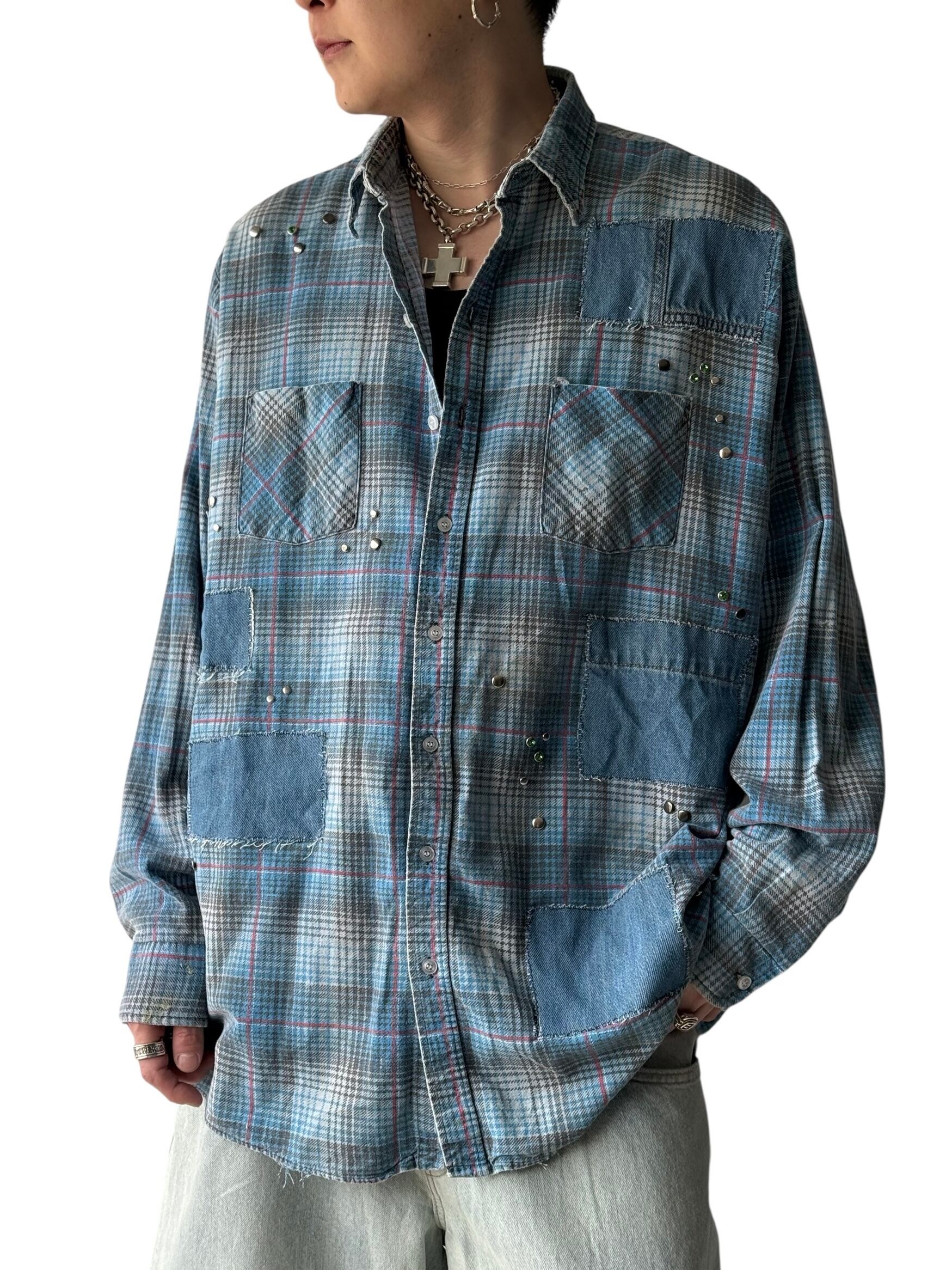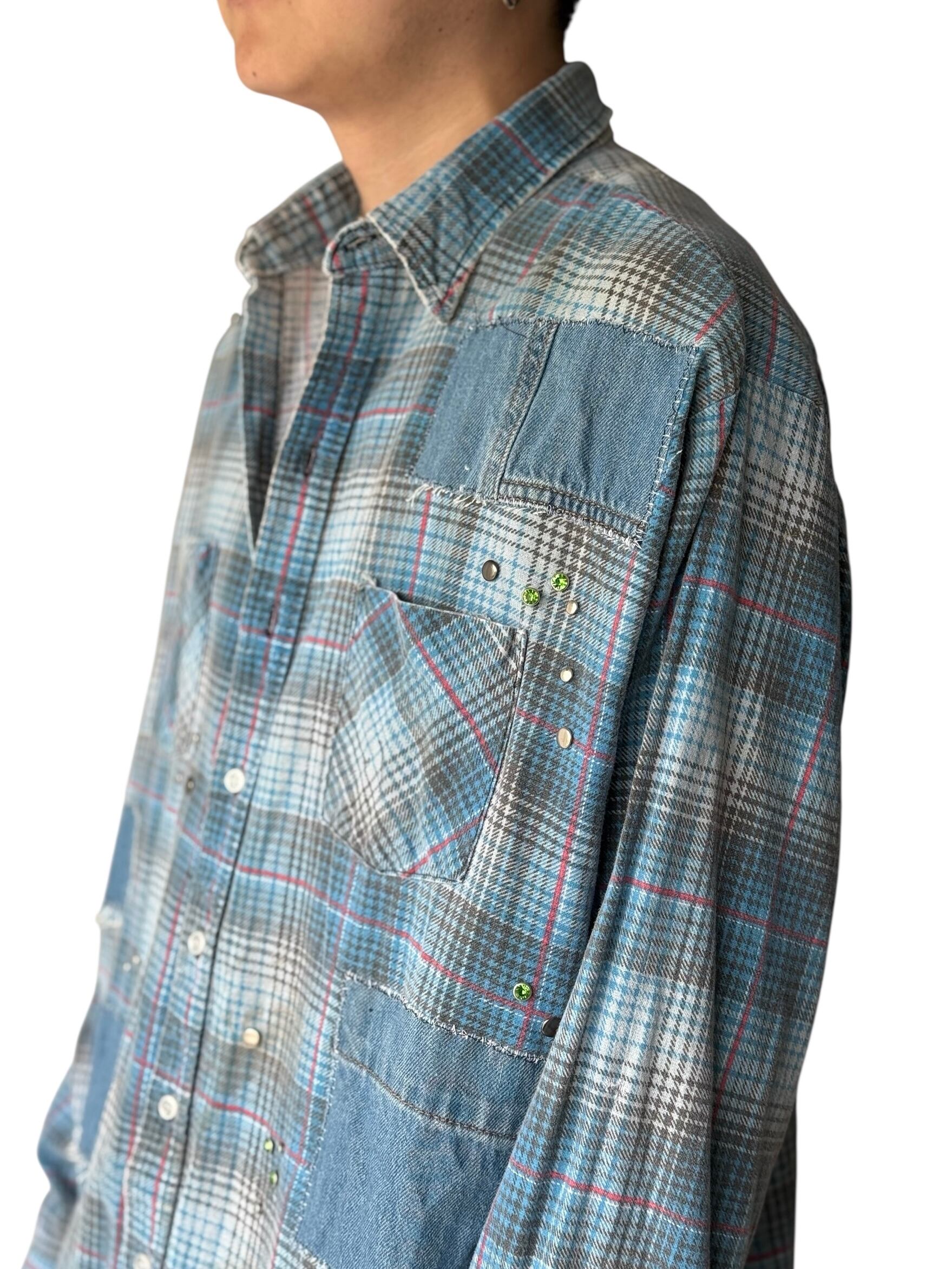 【90's OZARK TRAIL】 Check patterned patch studs custom printnel shirt L/S