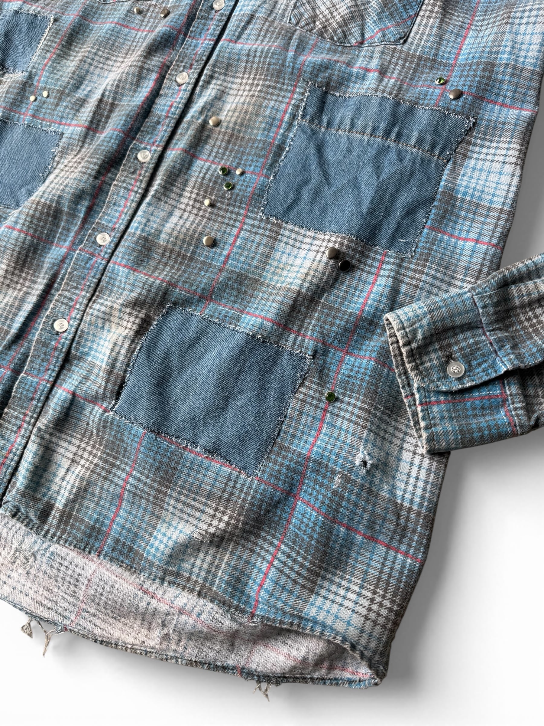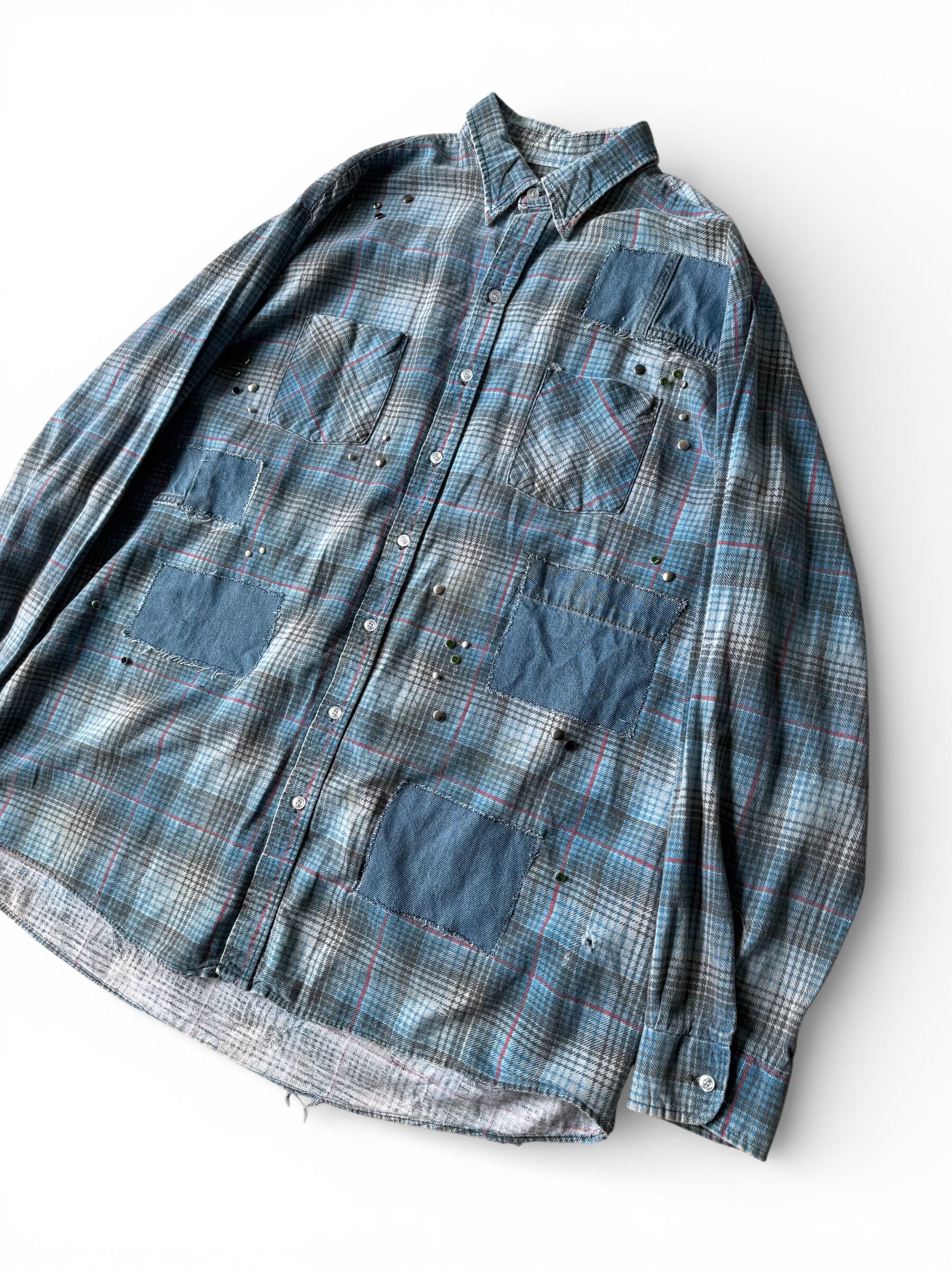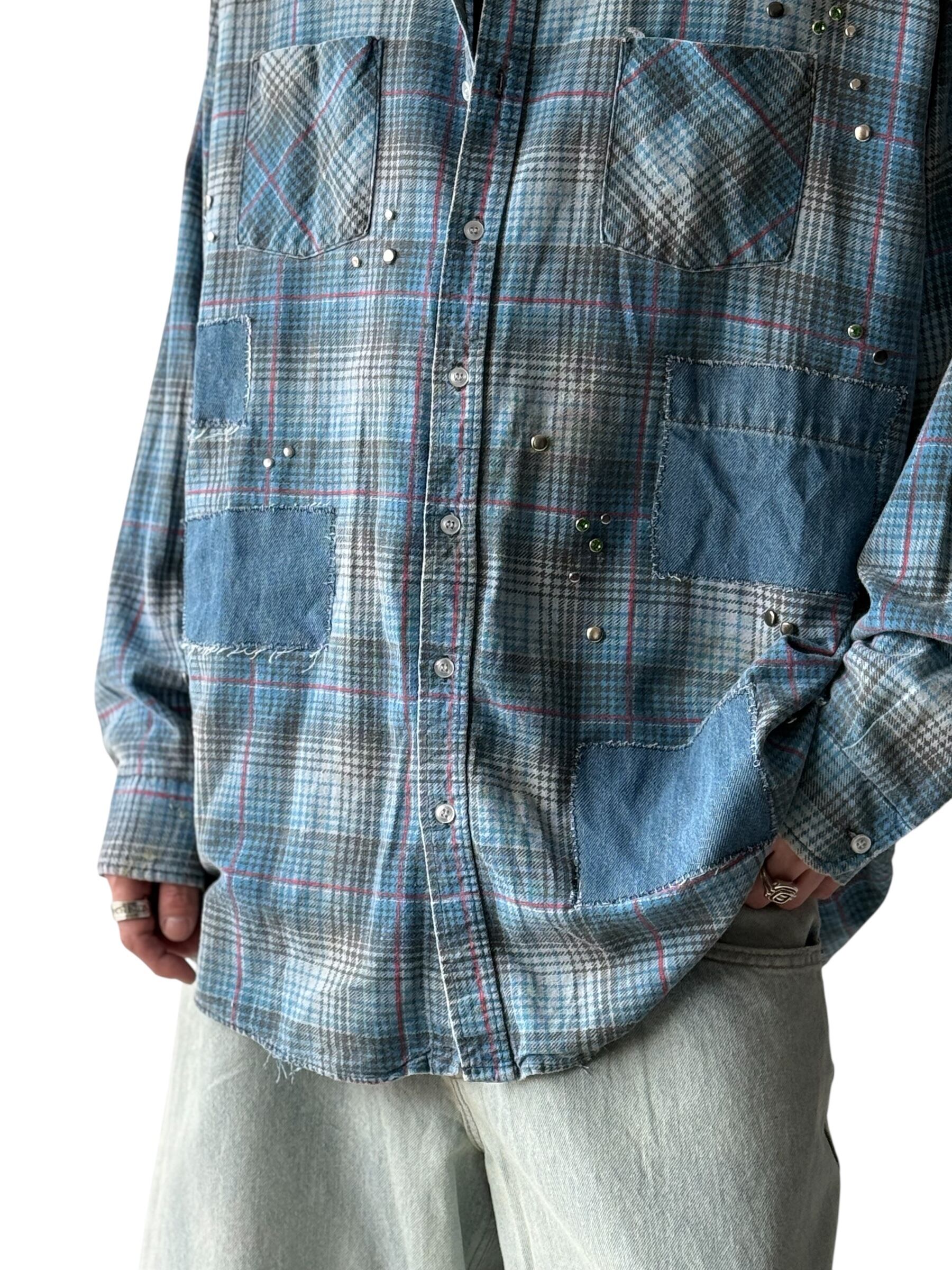 【90's OZARK TRAIL】 Check patterned patch studs custom printnel shirt L/S