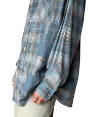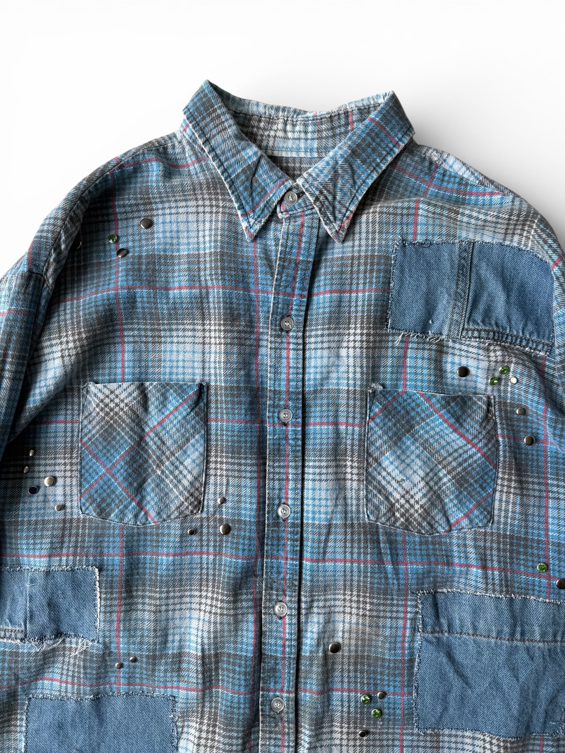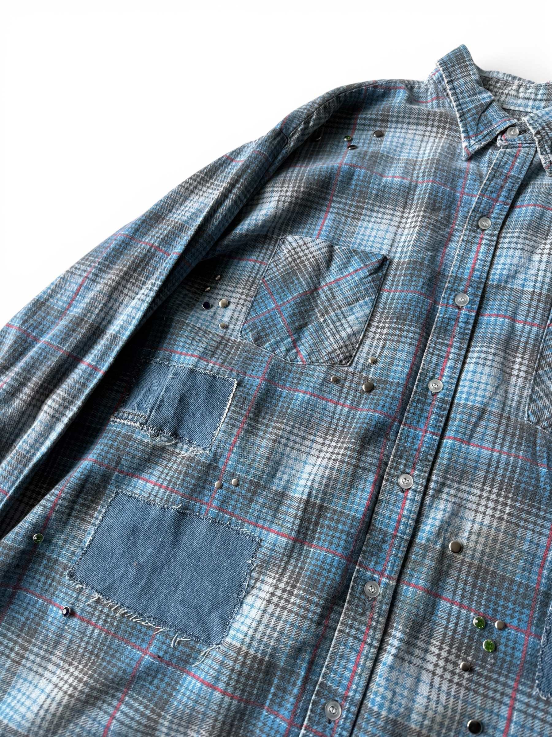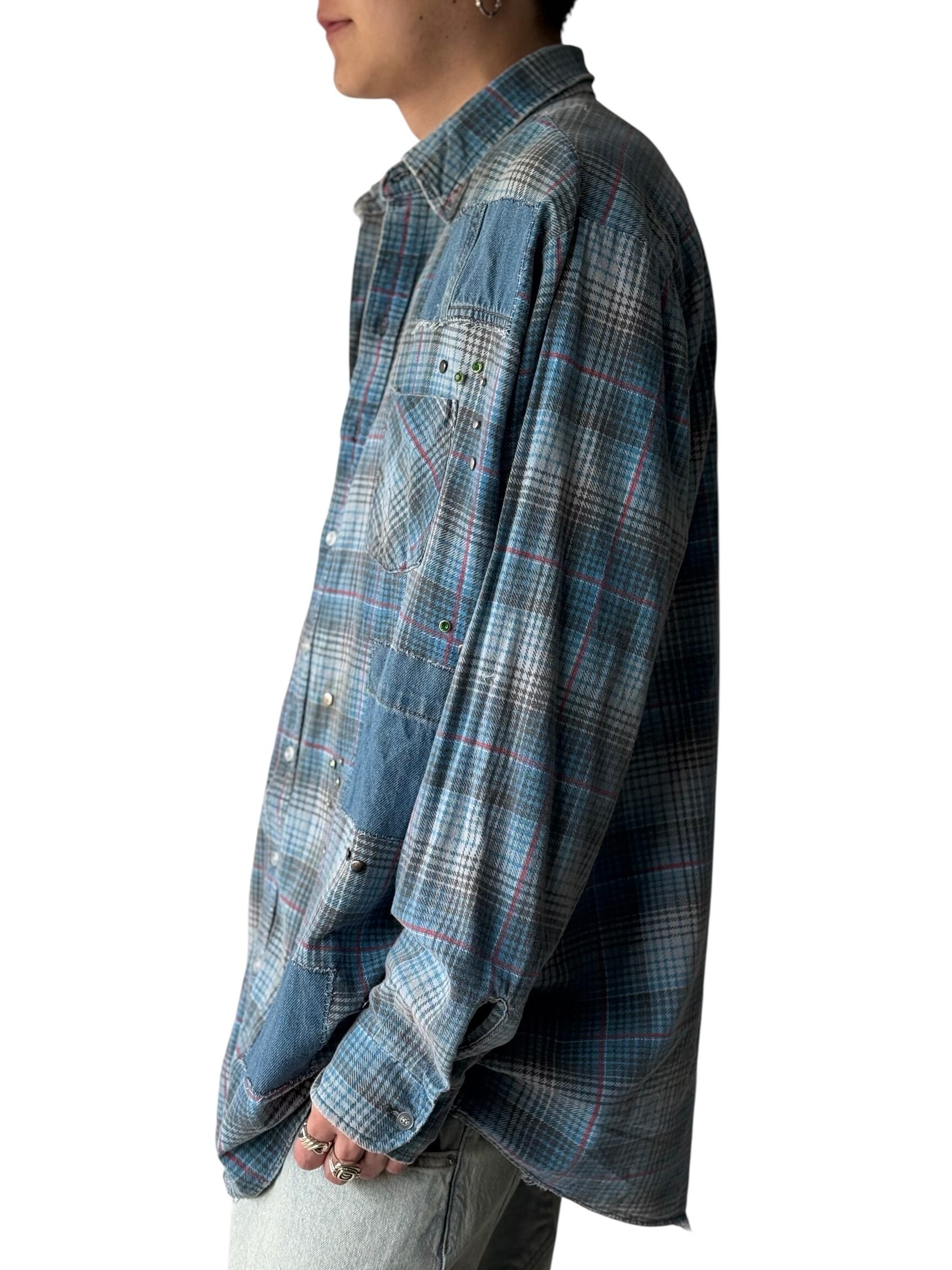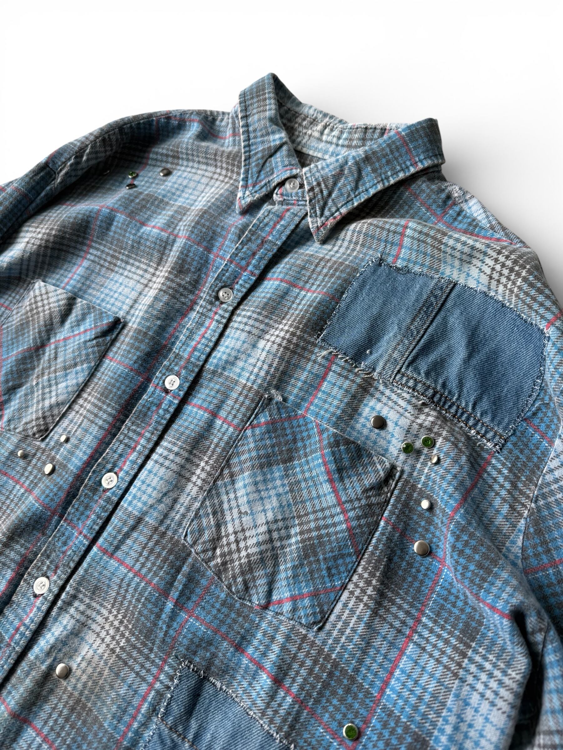 【90's OZARK TRAIL】 Check patterned patch studs custom printnel shirt L/S