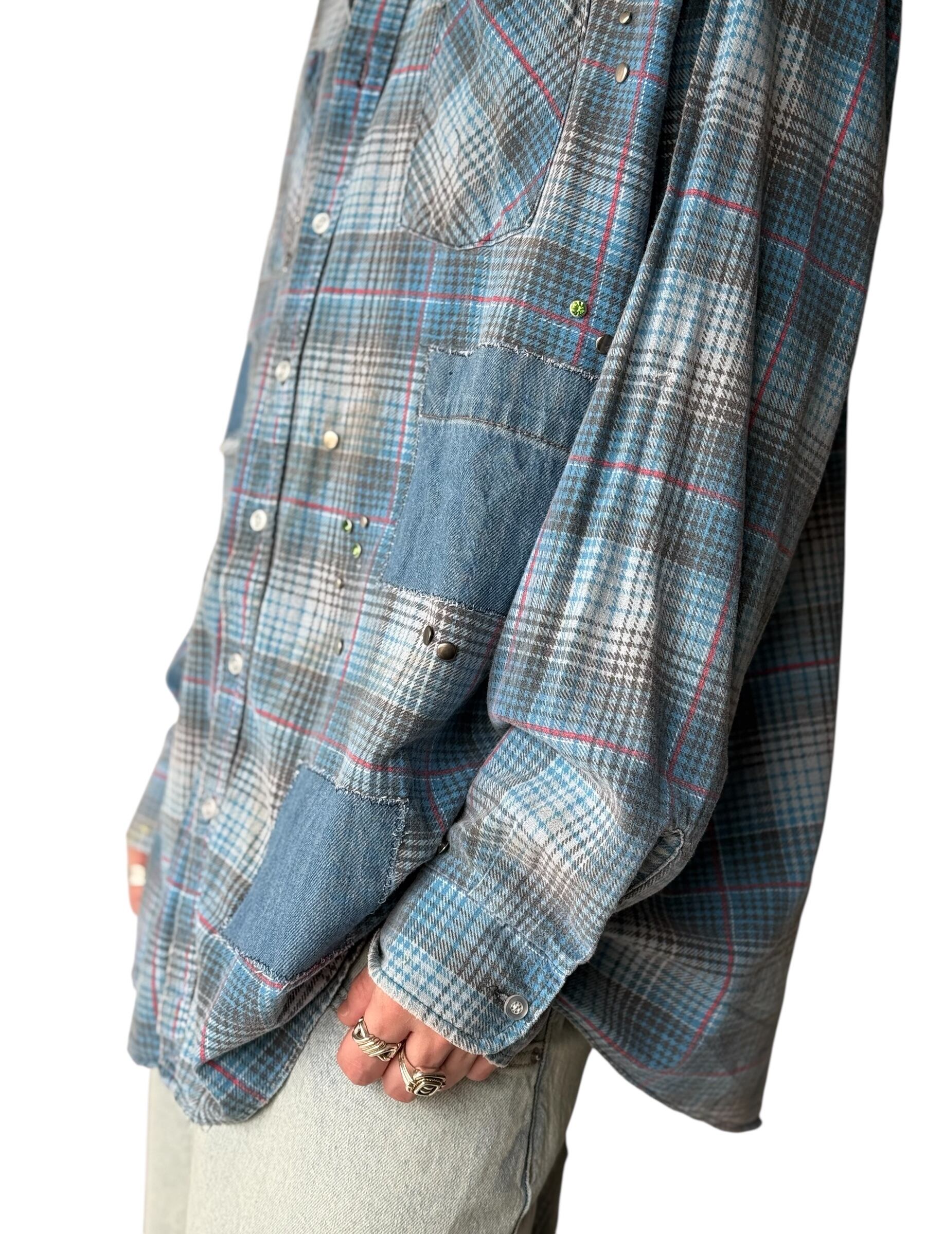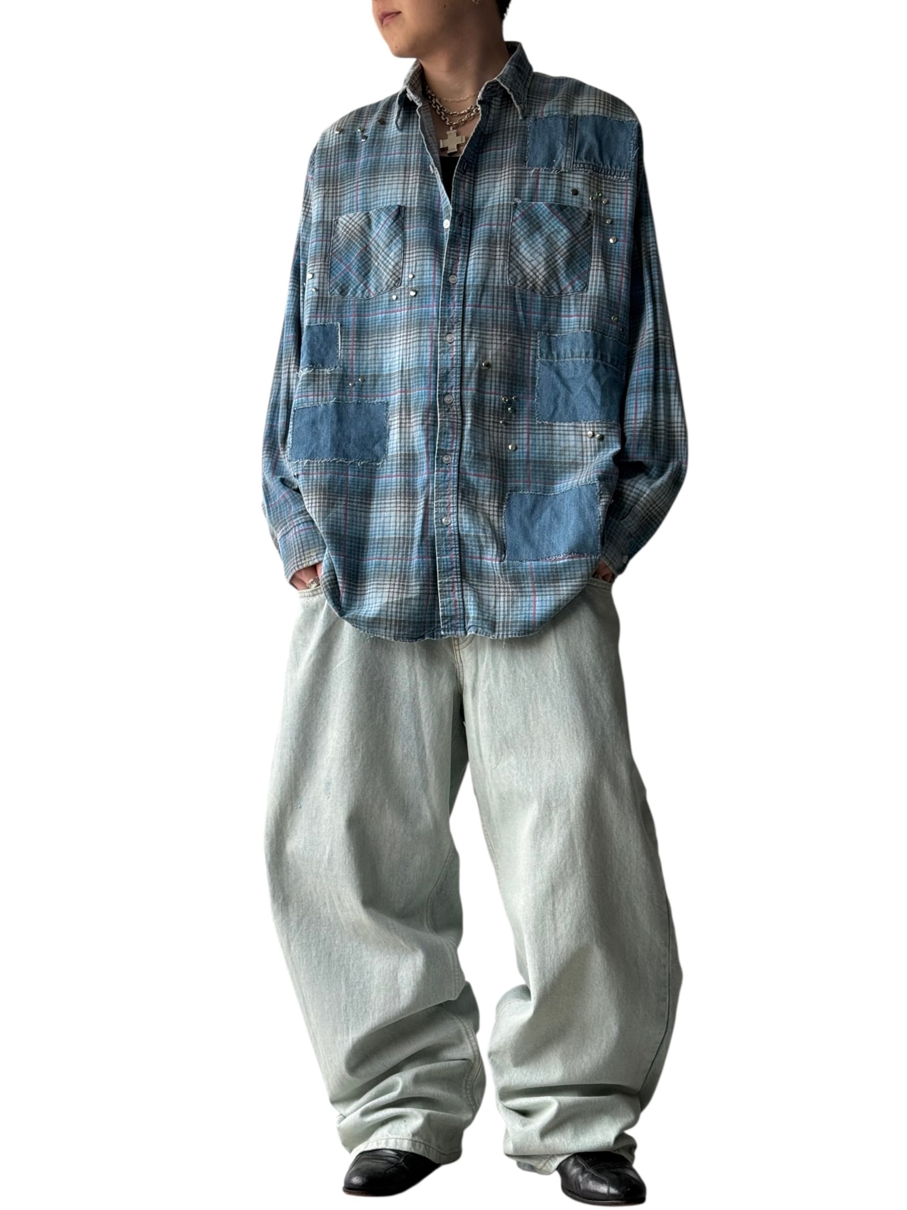 フロントにはデニムのパッチとスタッズがカスタムされた唯一無二な仕様で1枚でしっかりコーデの主役に‼️
