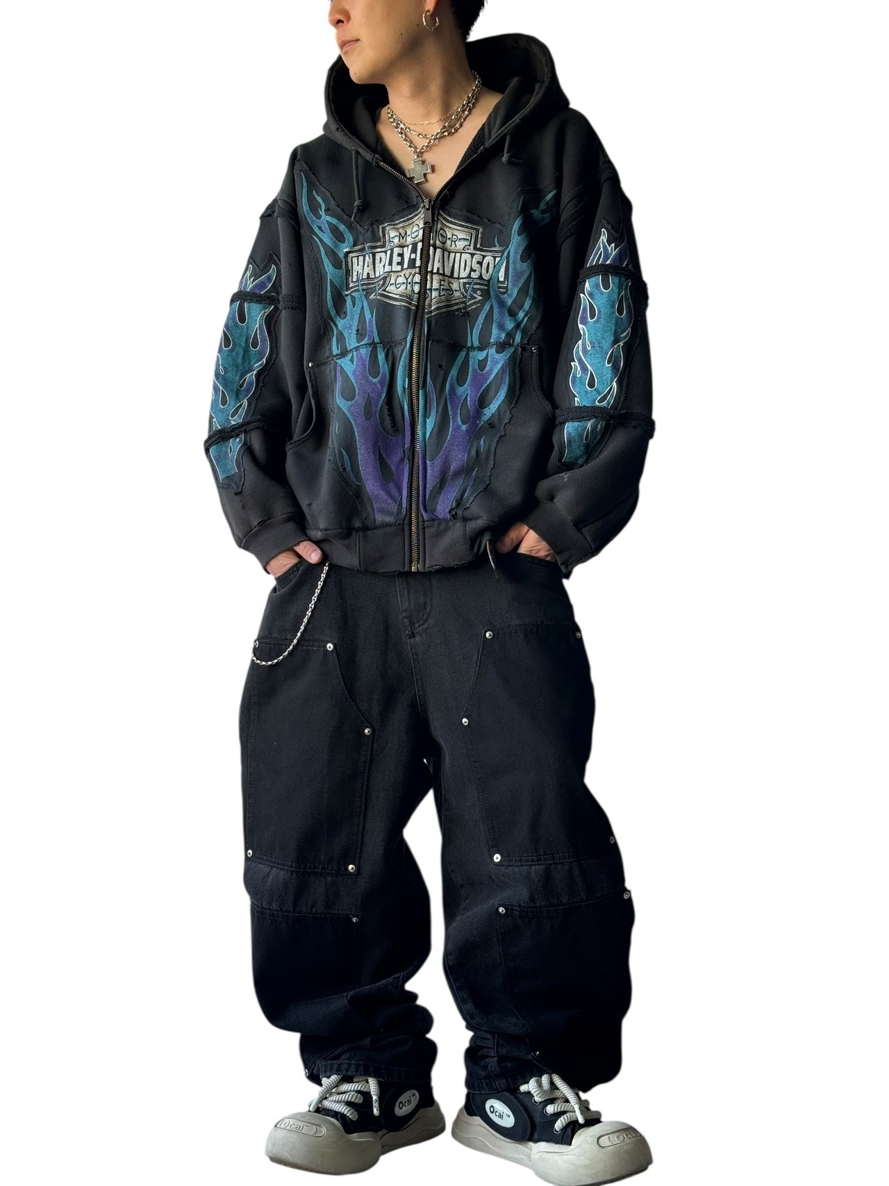 ♾REMADE COLLECTION♾ "HARLEY-DAVIDSON" remake custom zip up hoodie
