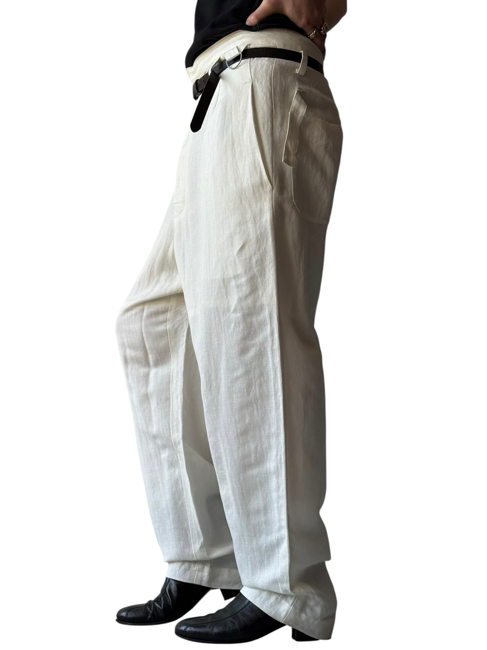 【Y's yohji yamamoto】Linen Rayon drawstring tuck slacks