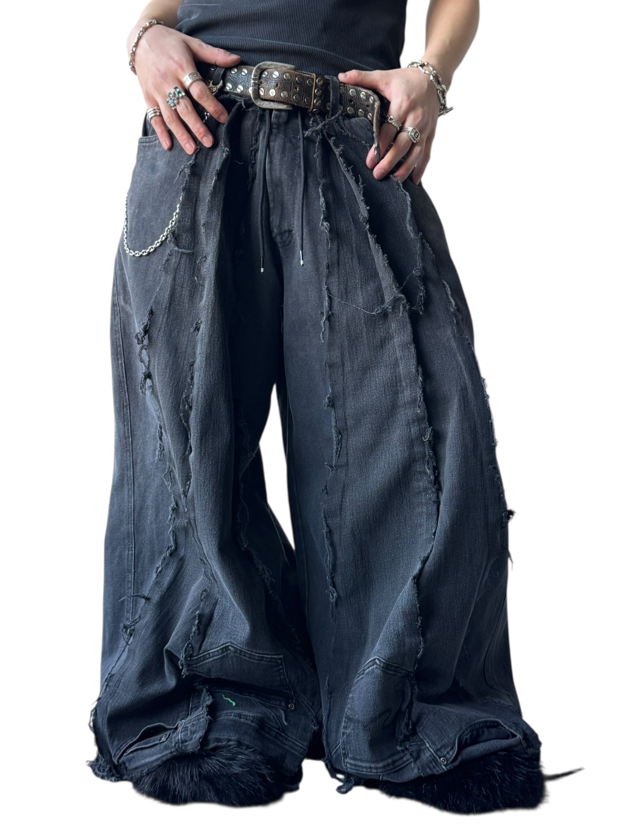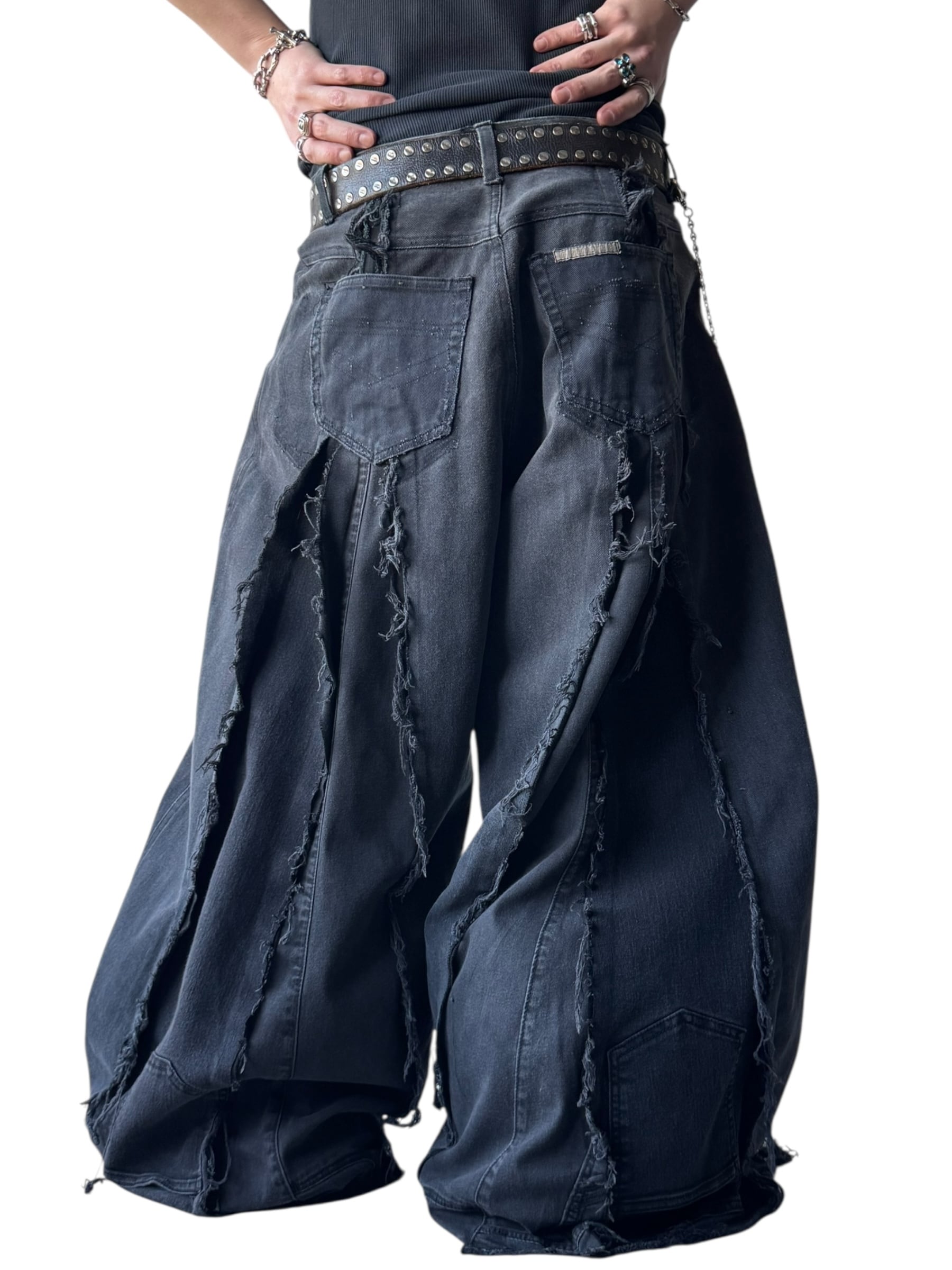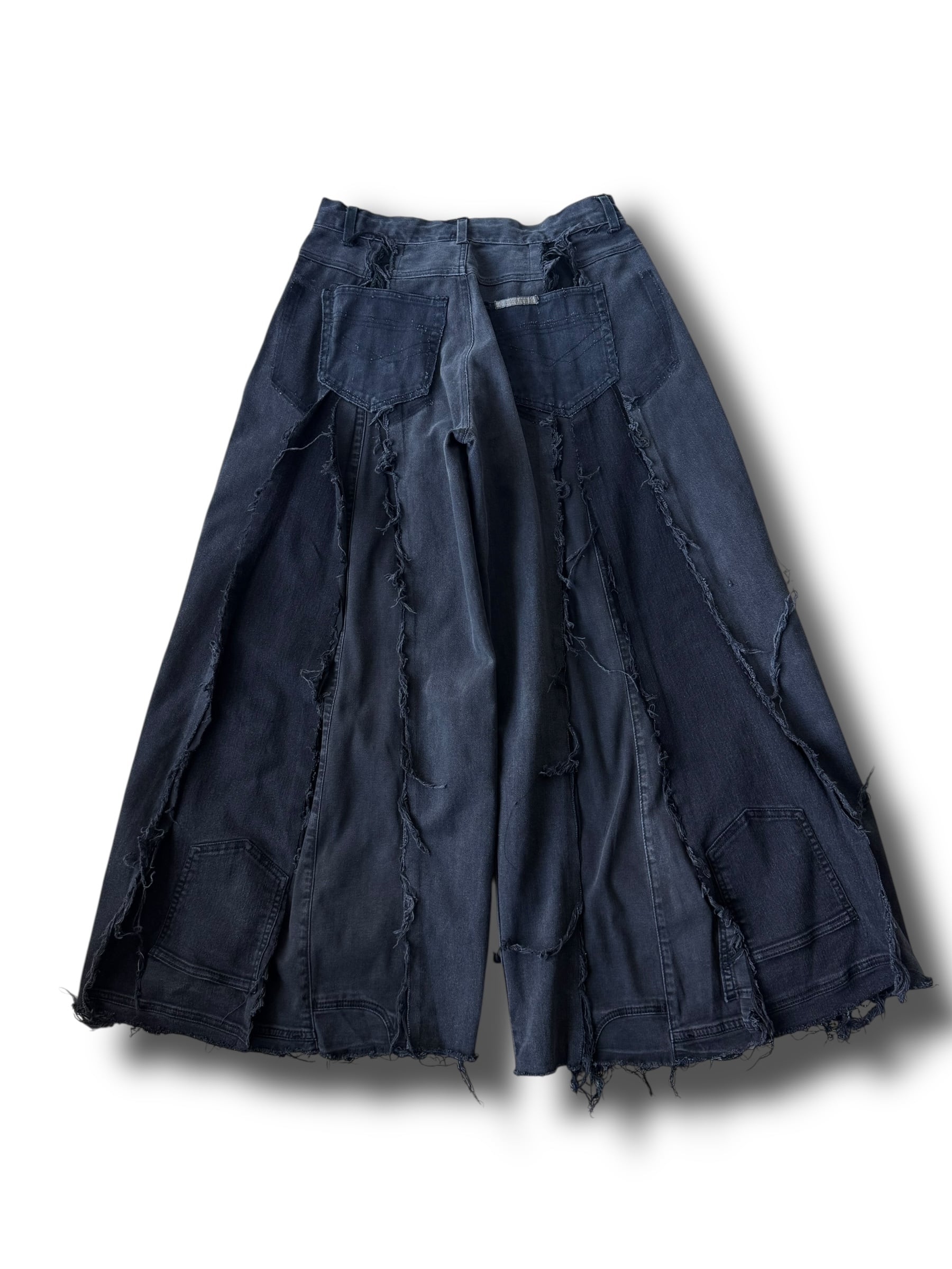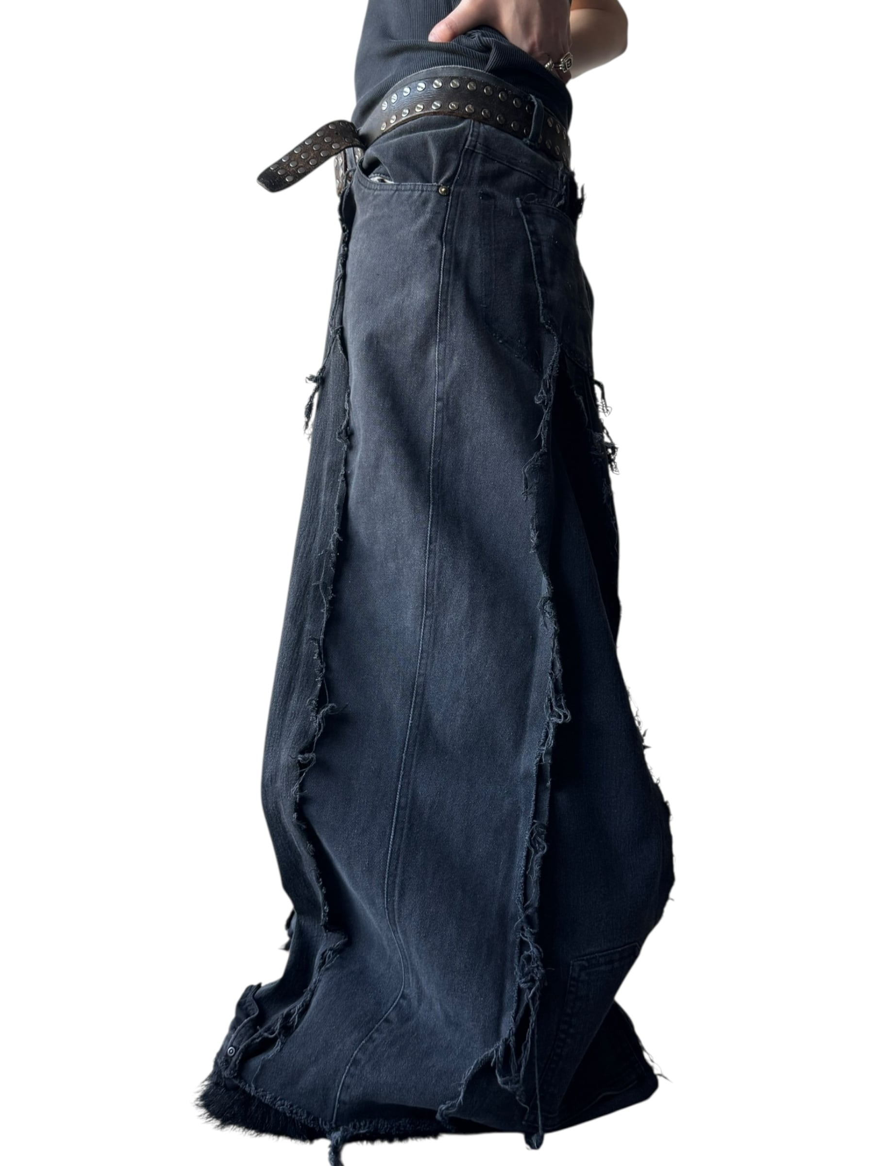 一点モノ感満載の再構築を施した圧倒的バギーシルエットのこのボリューム感が唯一無二、数本のデニムを足して作られているので通常ではあり得ないフォルムが目を引くコーデの主役に間違いなしの1本✨️