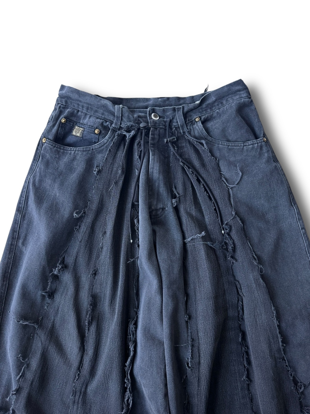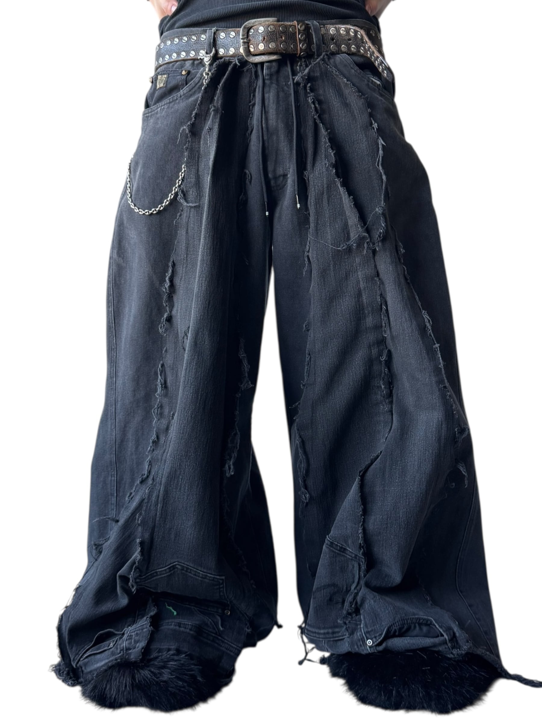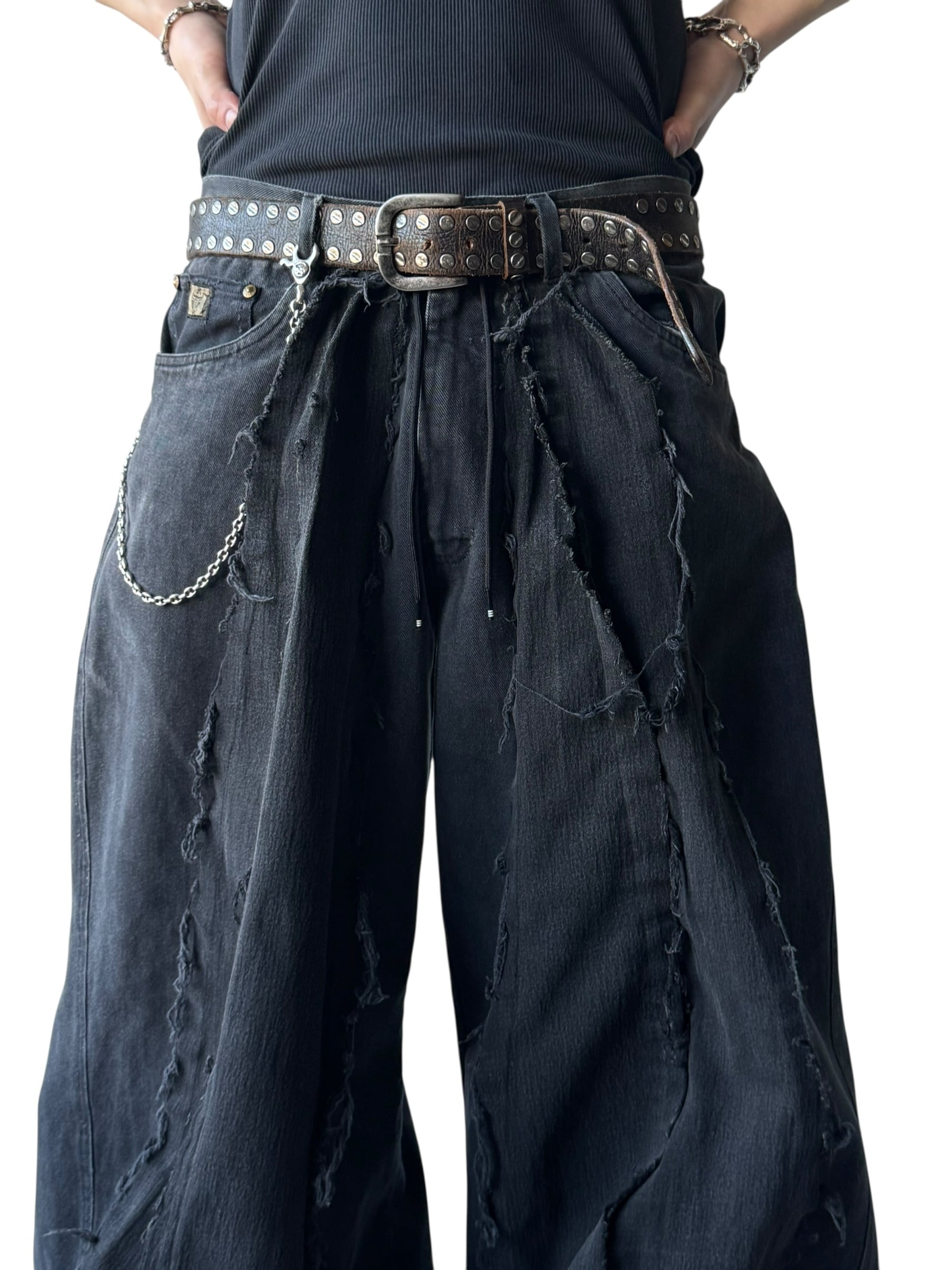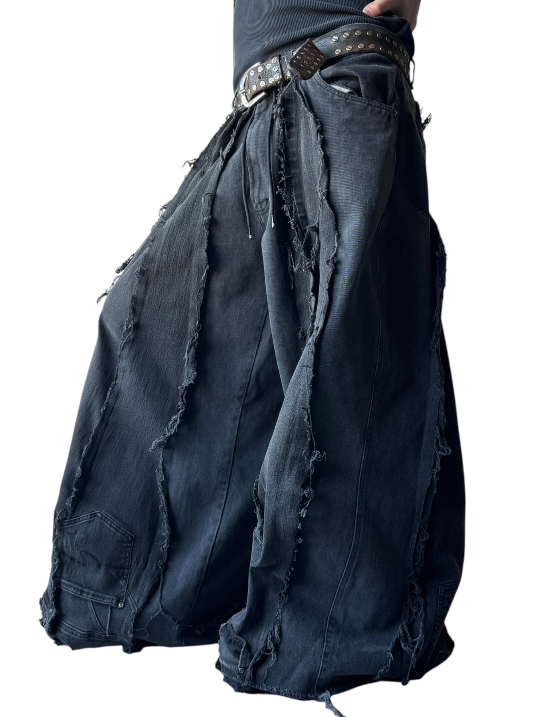 一点モノ感満載の再構築を施した圧倒的バギーシルエットのこのボリューム感が唯一無二、数本のデニムを足して作られているので通常ではあり得ないフォルムが目を引くコーデの主役に間違いなしの1本✨️