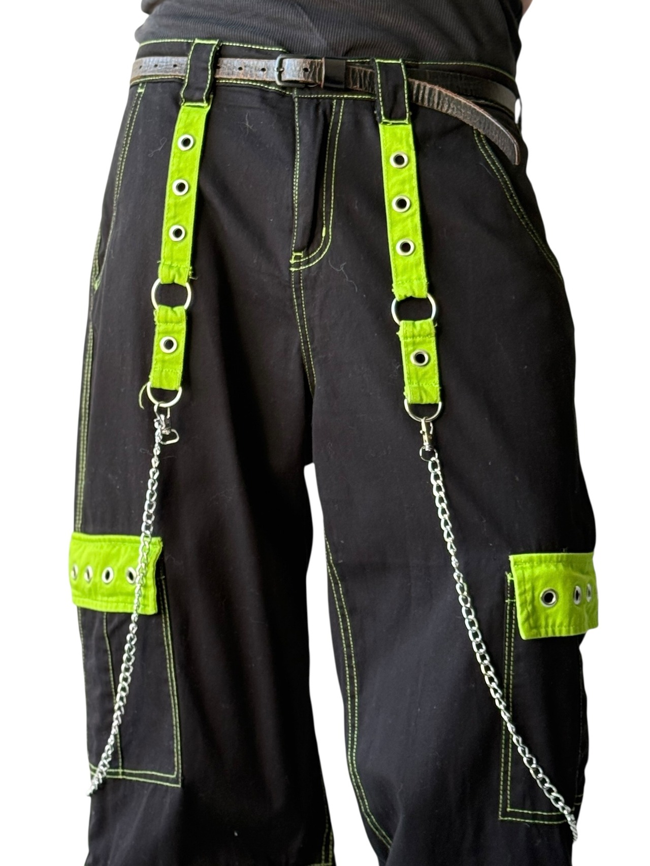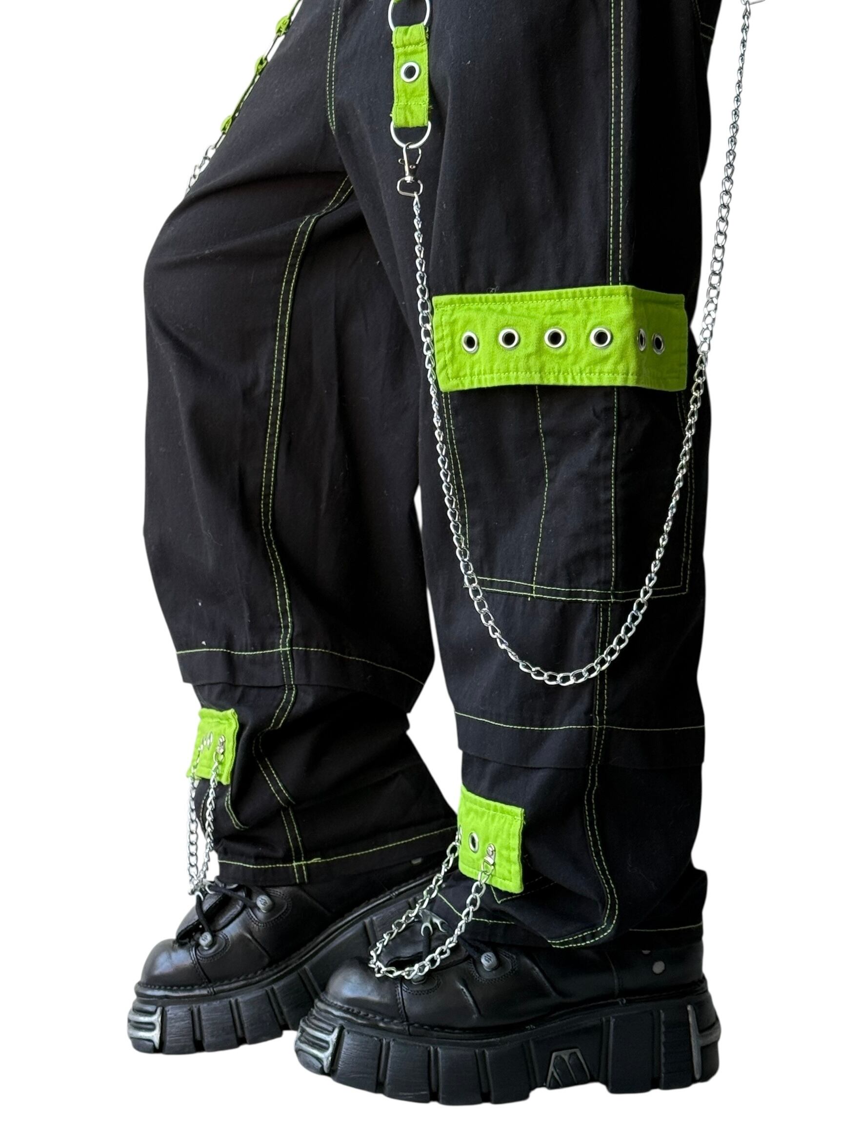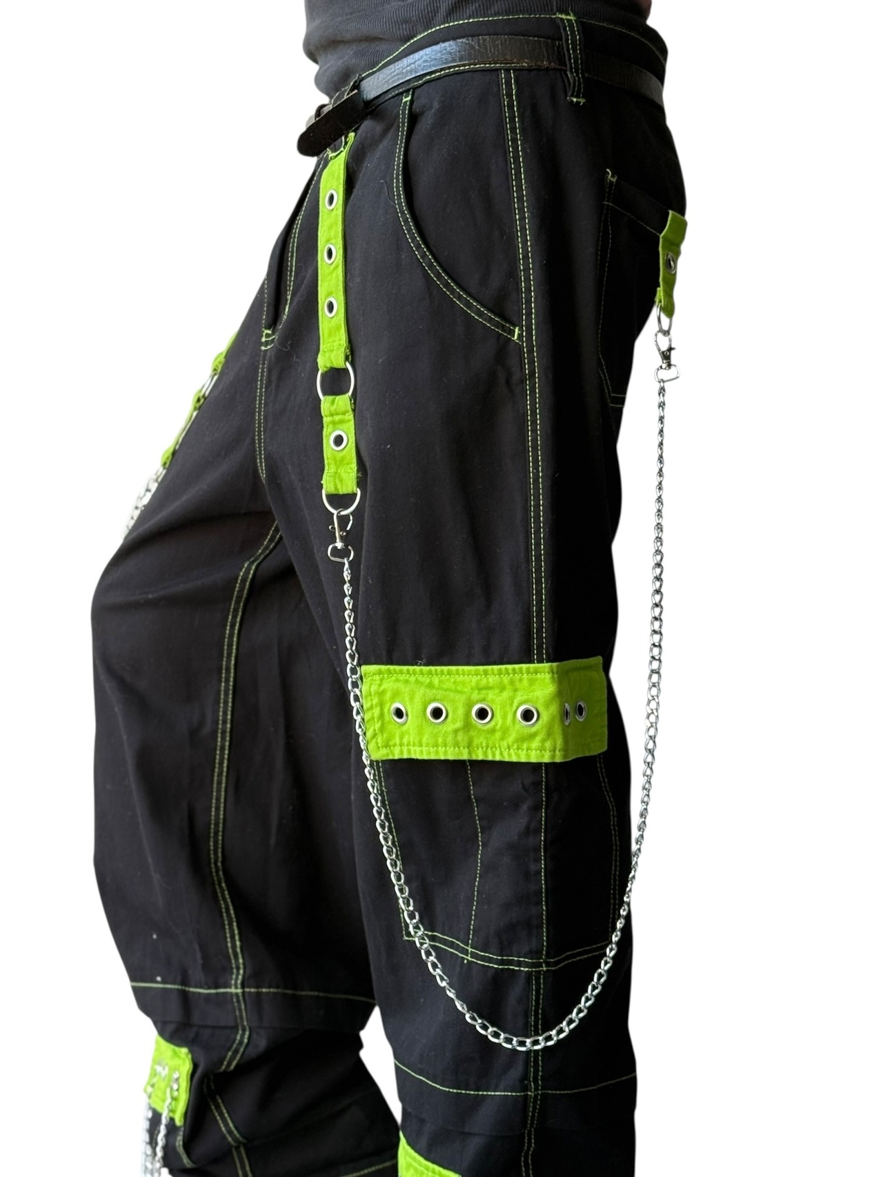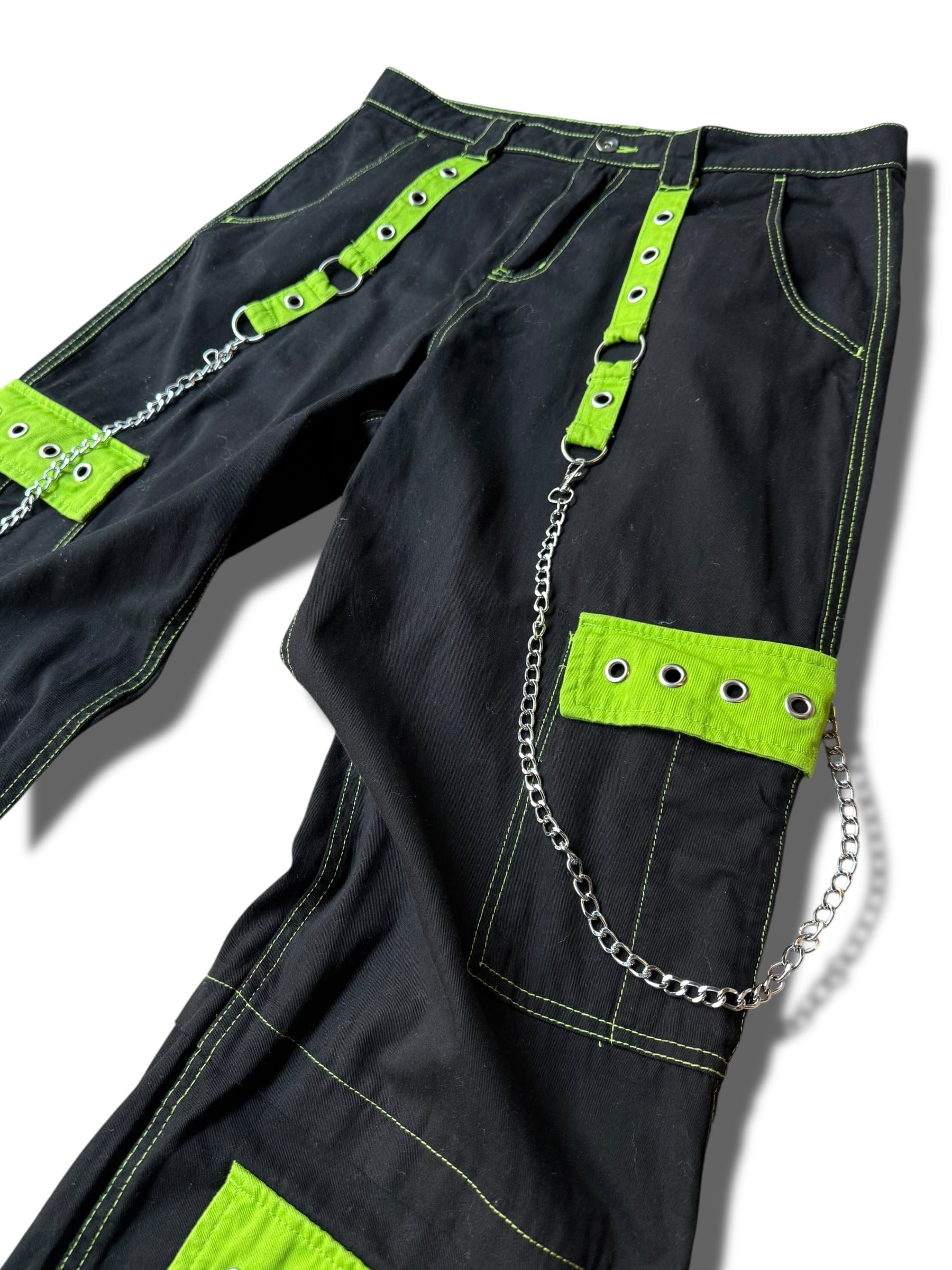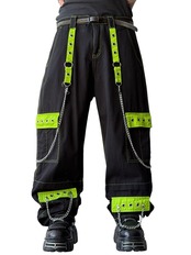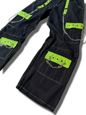 ブラックのボディに蛍光グリーンのカラーのステッチと切り替えが目を引くボンテージ風パンツ!!!!!