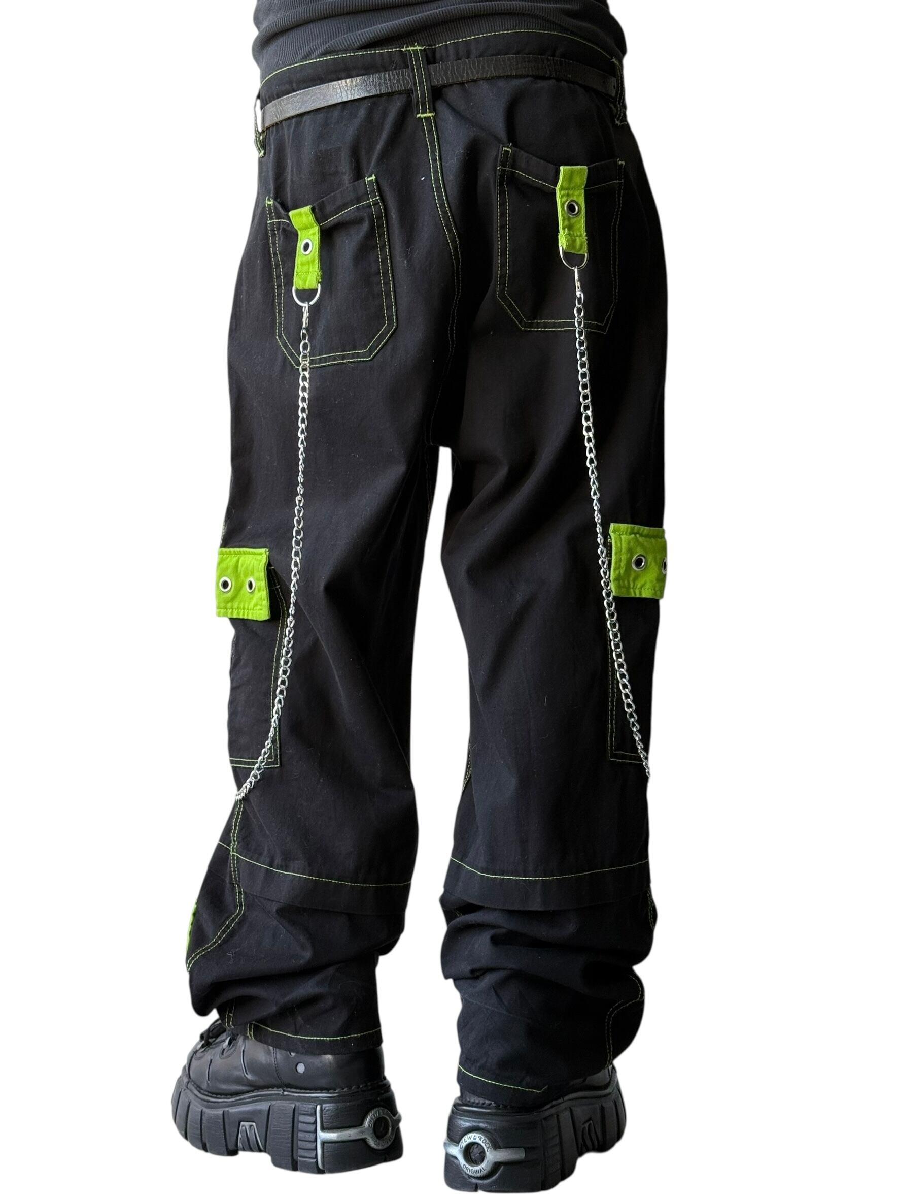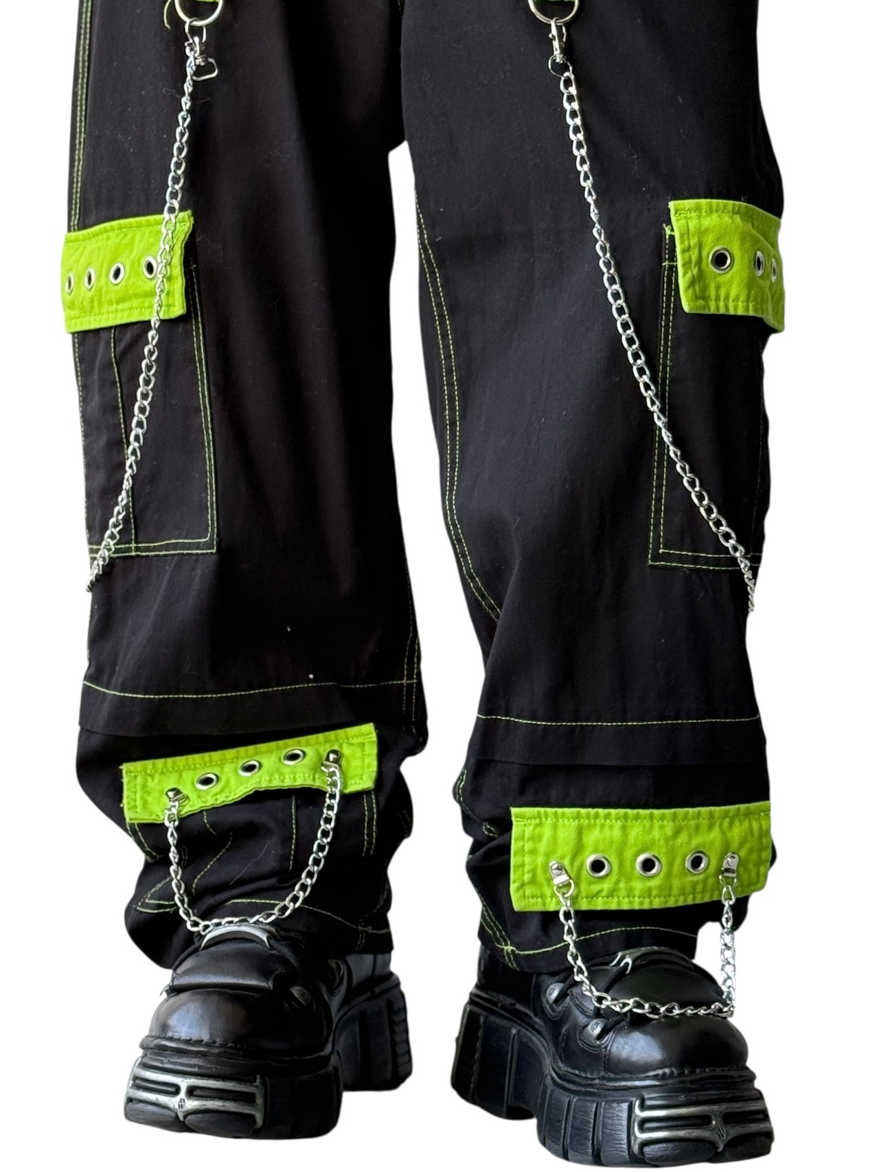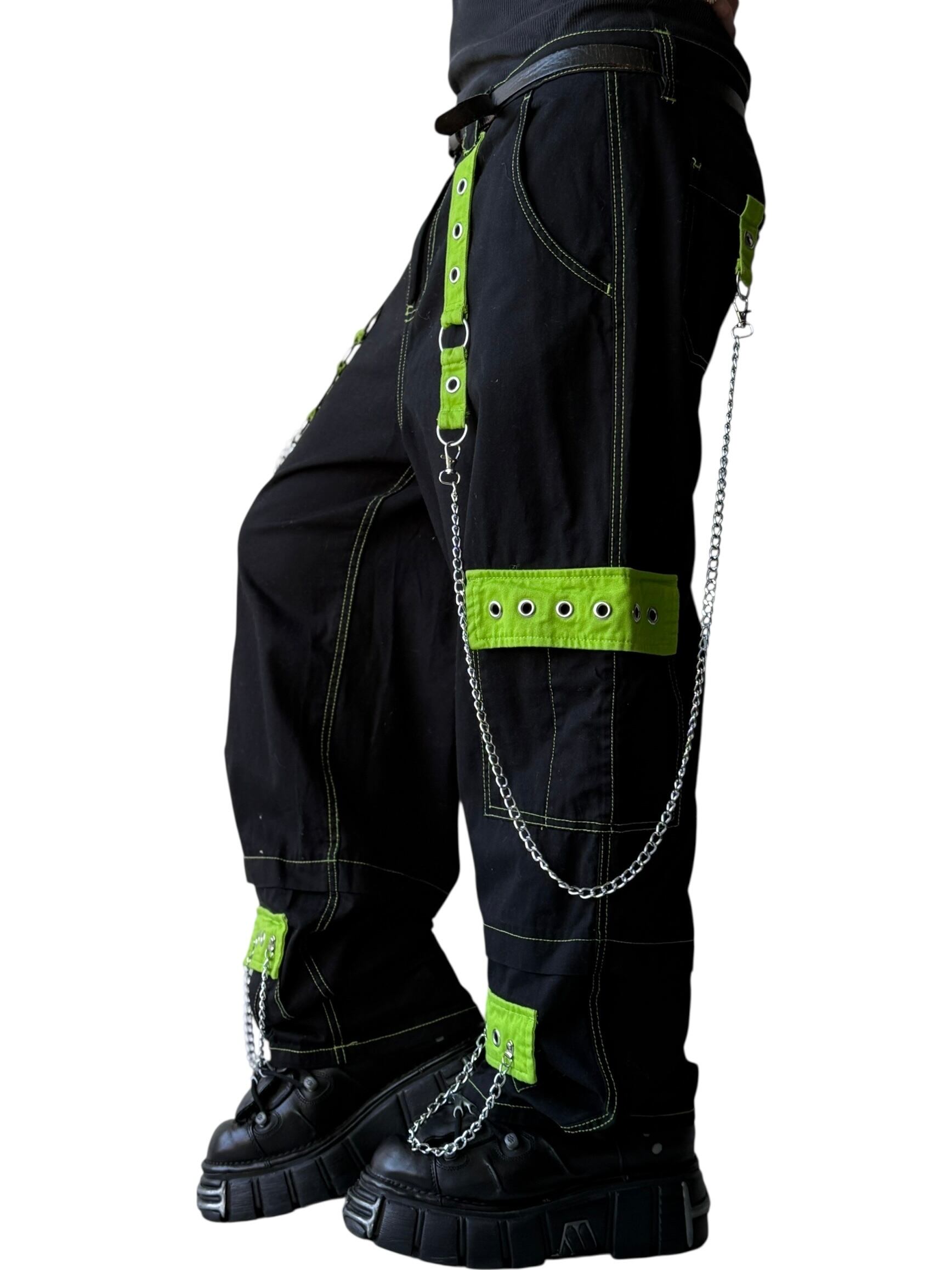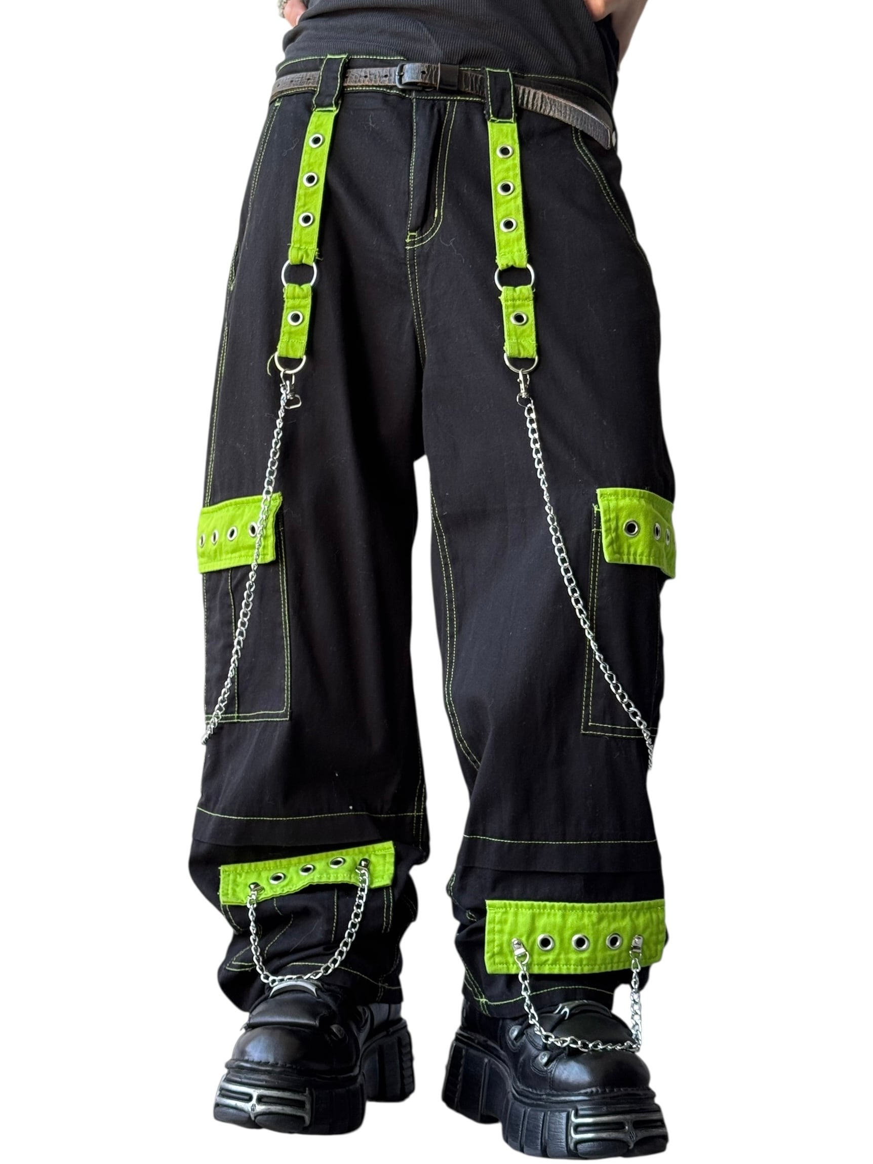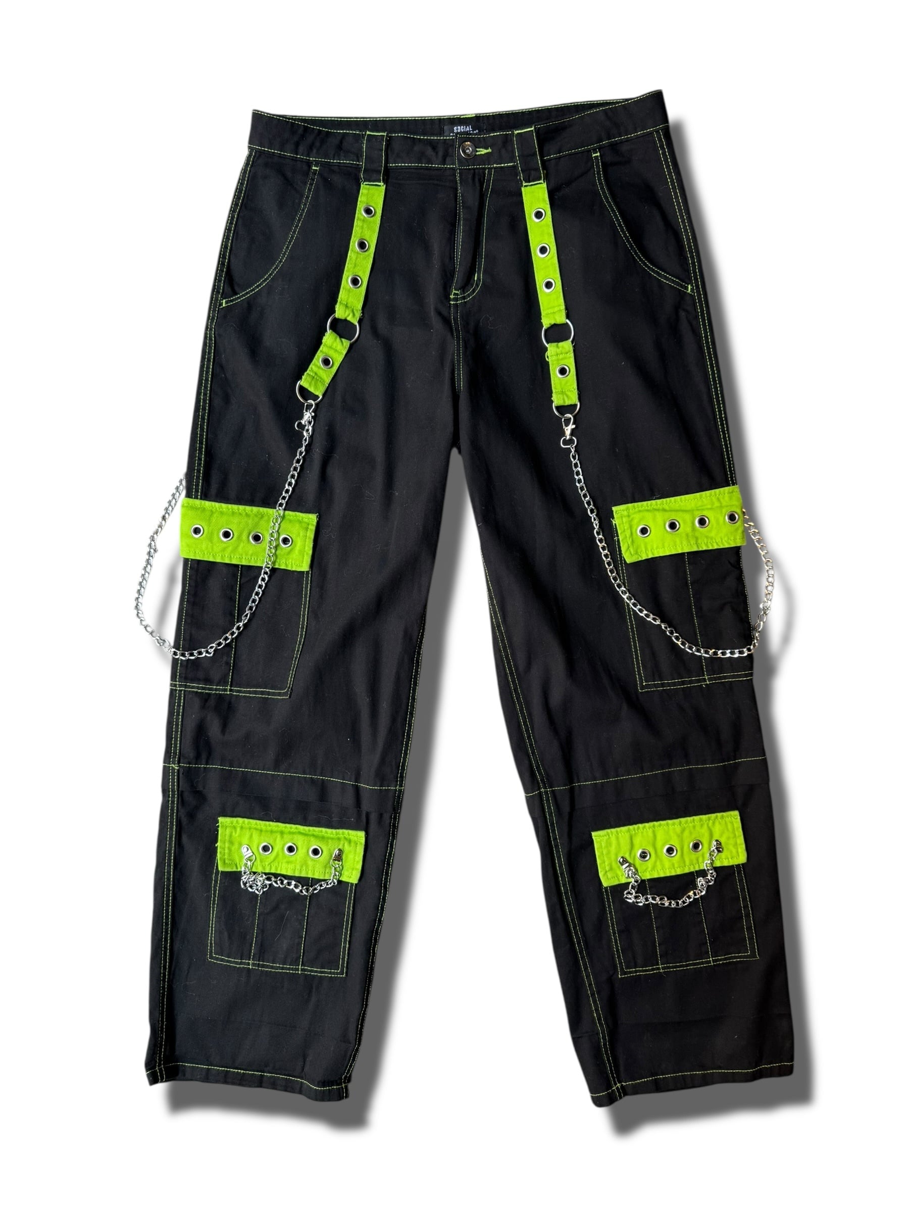 ブラックのボディに蛍光グリーンのカラーのステッチと切り替えが目を引くボンテージ風パンツ!!!!!
