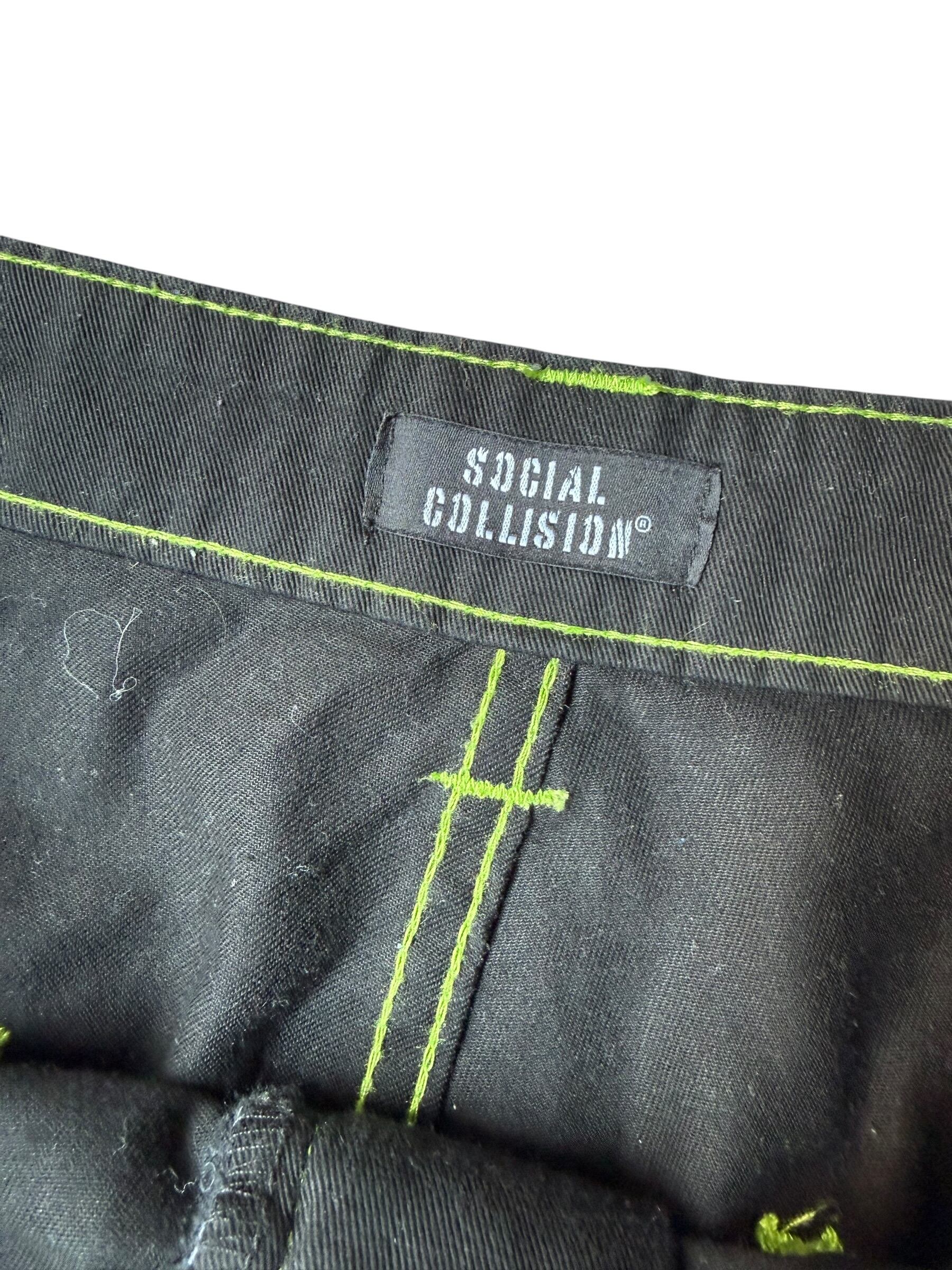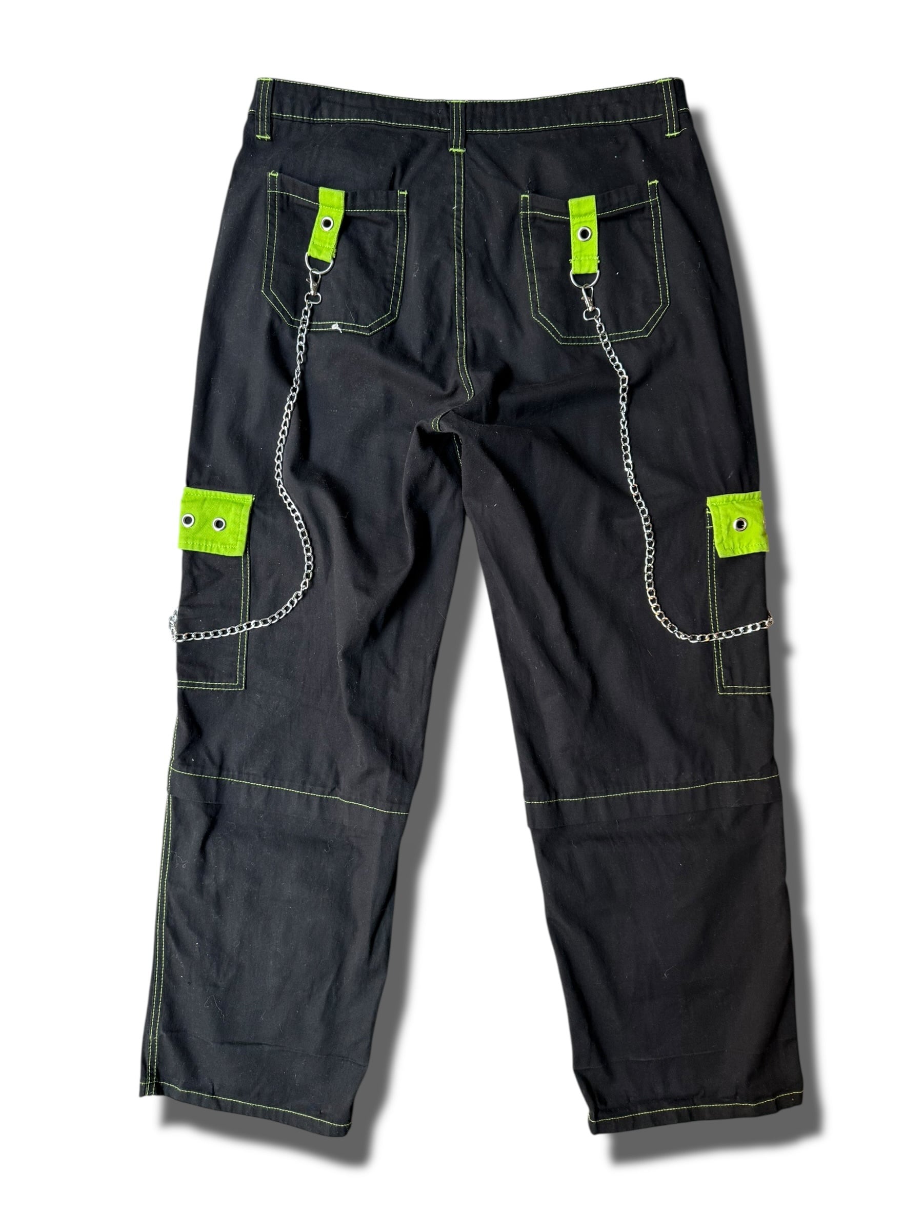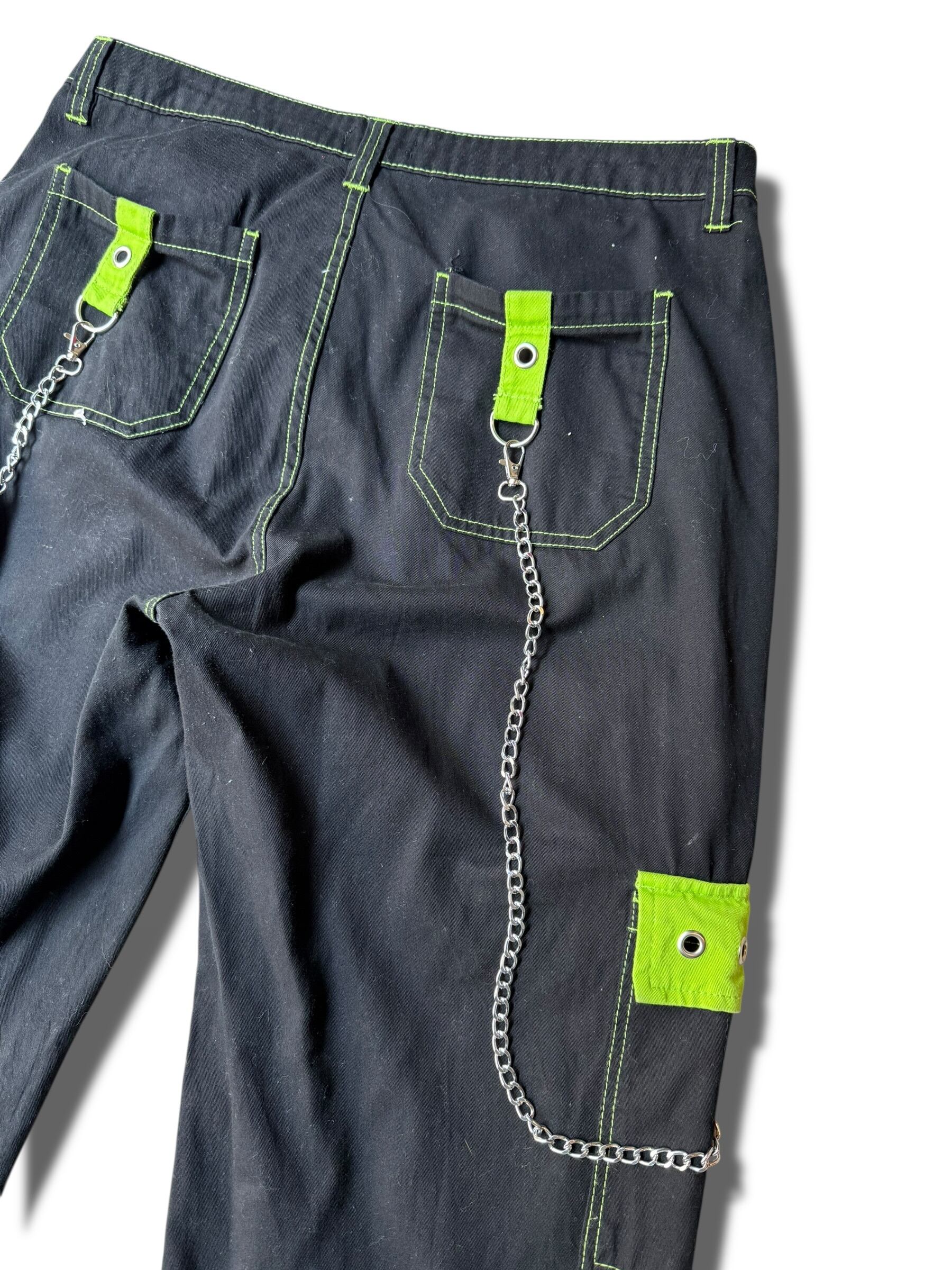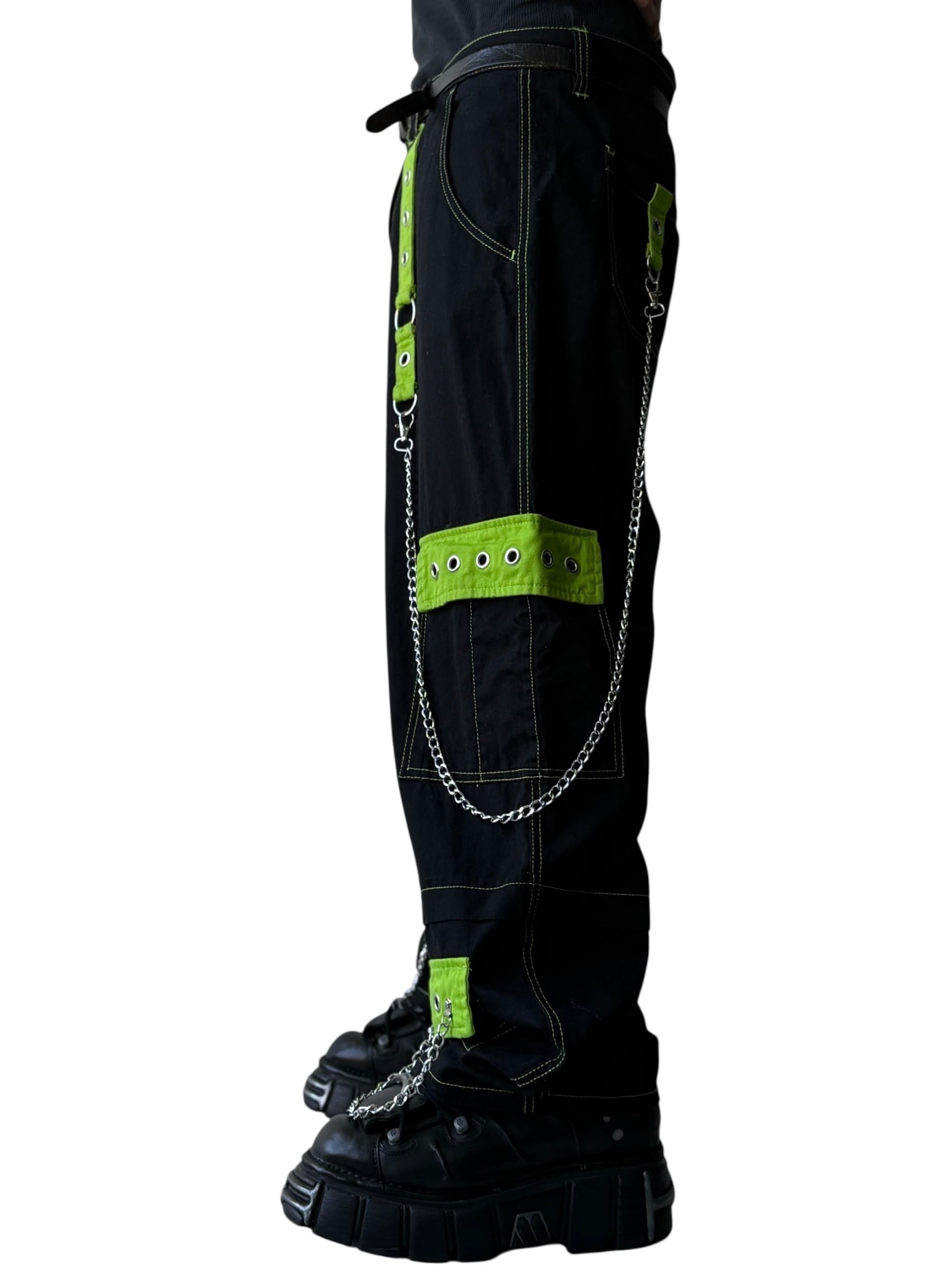 ブラックのボディに蛍光グリーンのカラーのステッチと切り替えが目を引くボンテージ風パンツ!!!!!