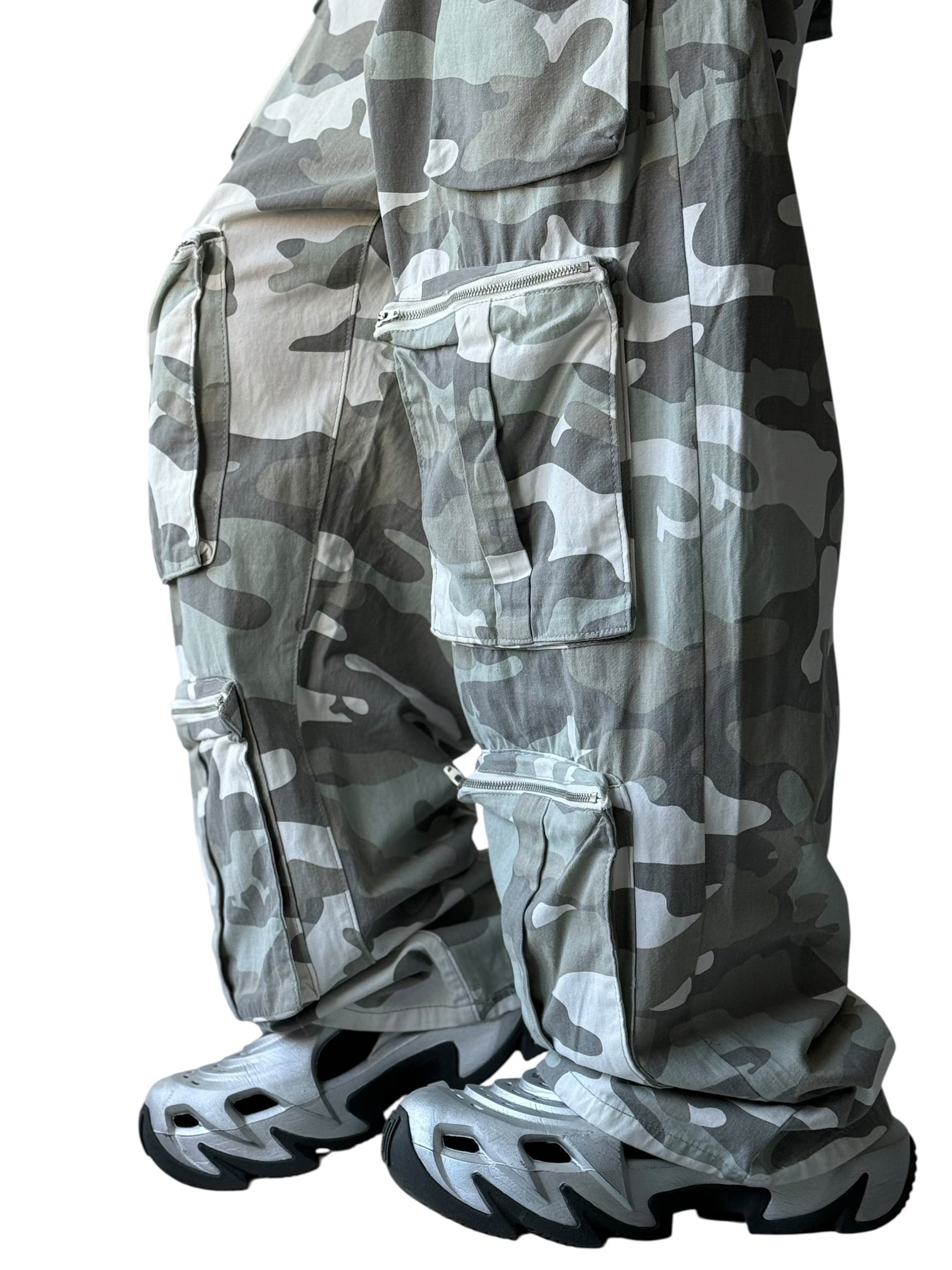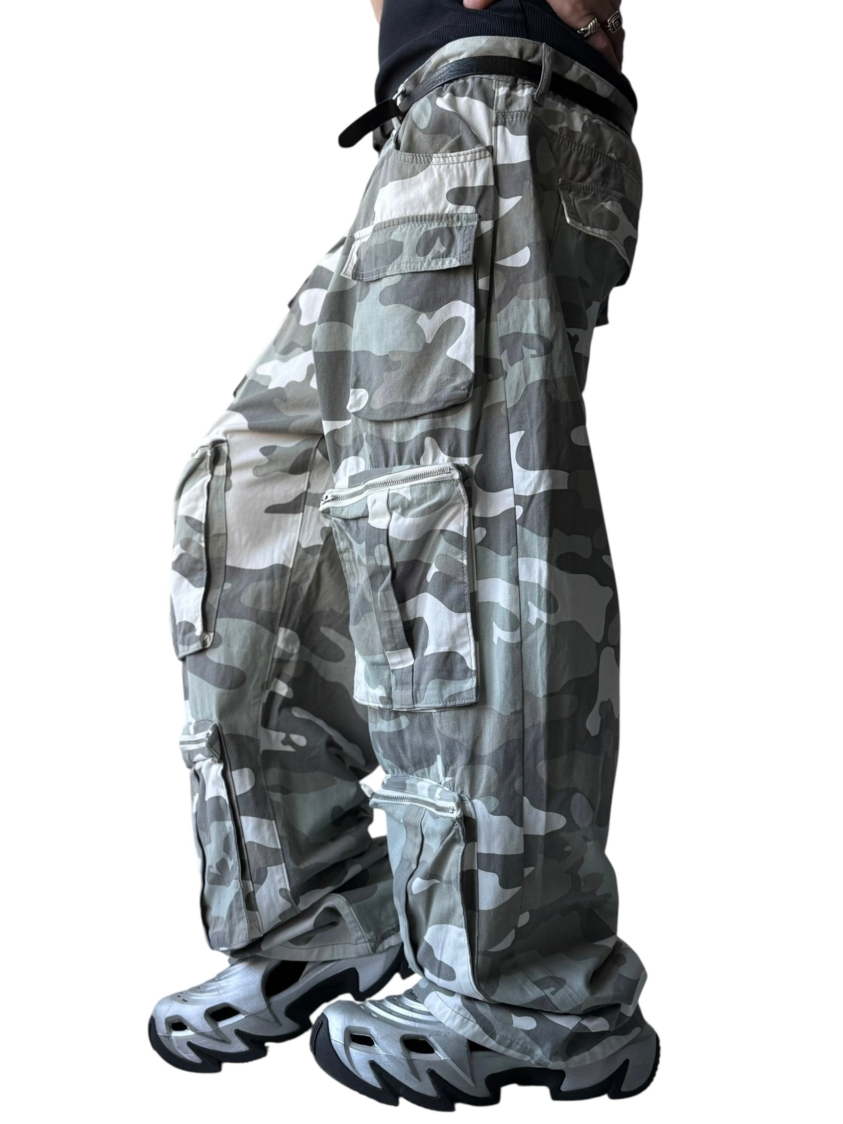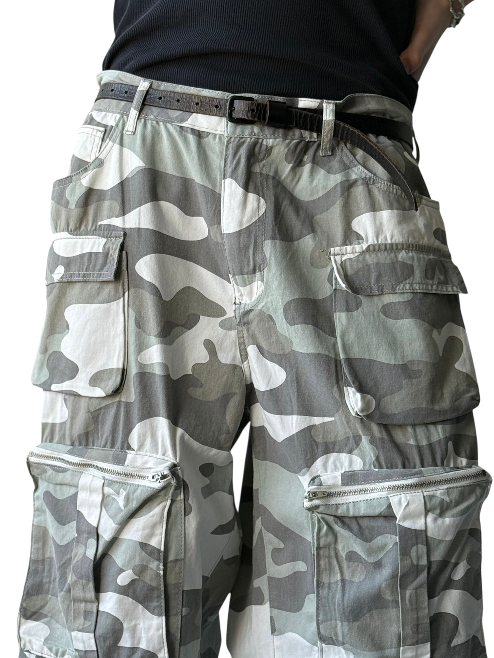 【Design used】various 3D pockets camouflage wide cargo pants