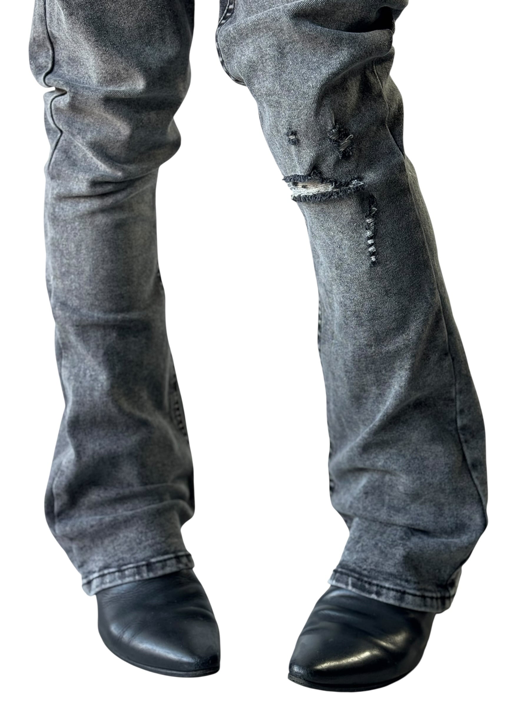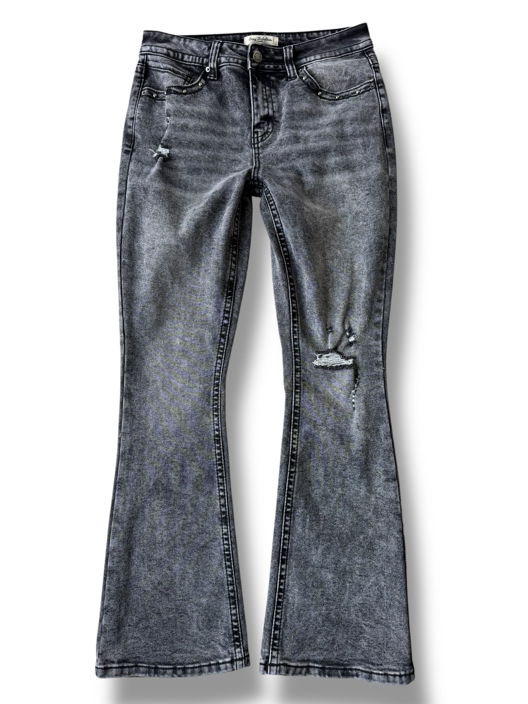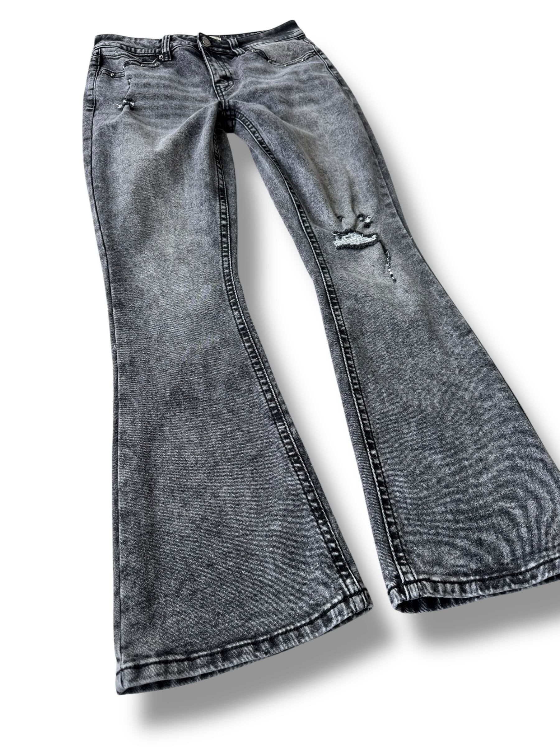 ♾️Sexy Fabulous♾️ Back cross embroidered stud design flared silhouette denim pants