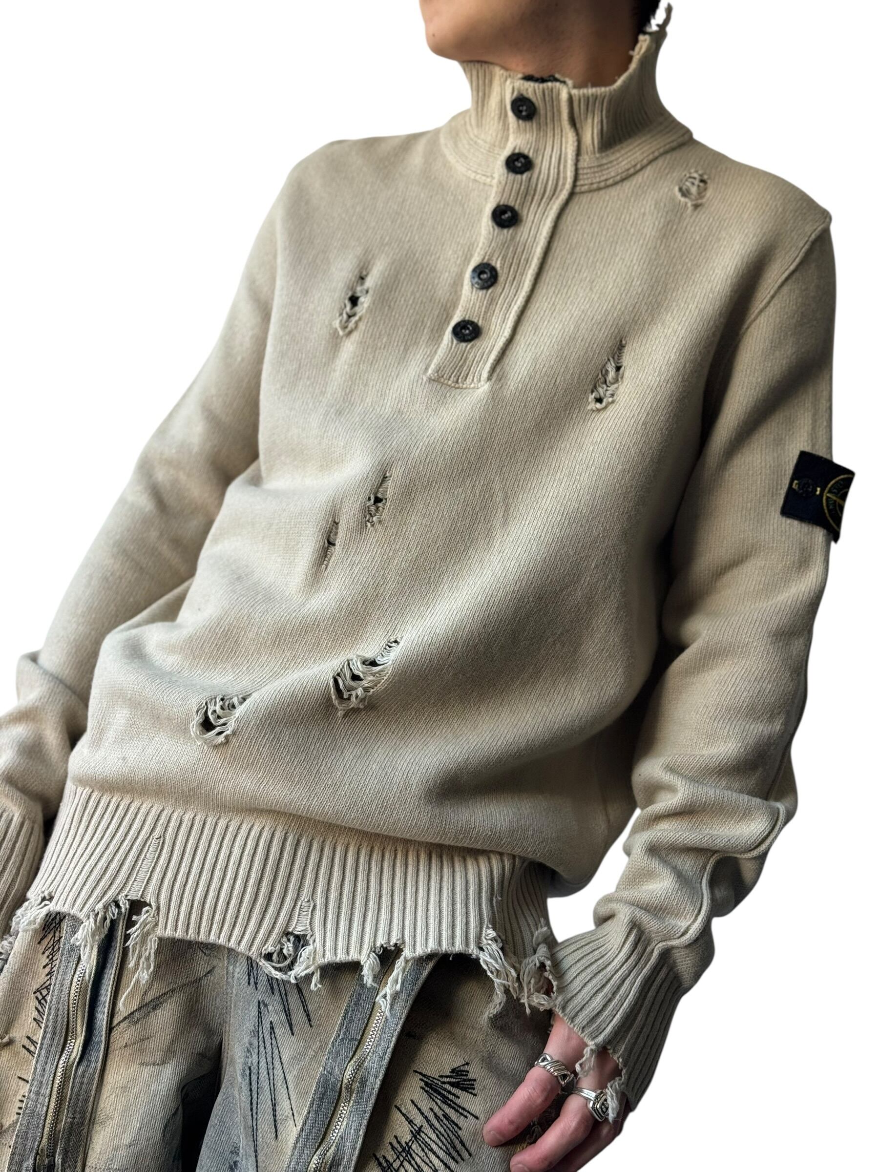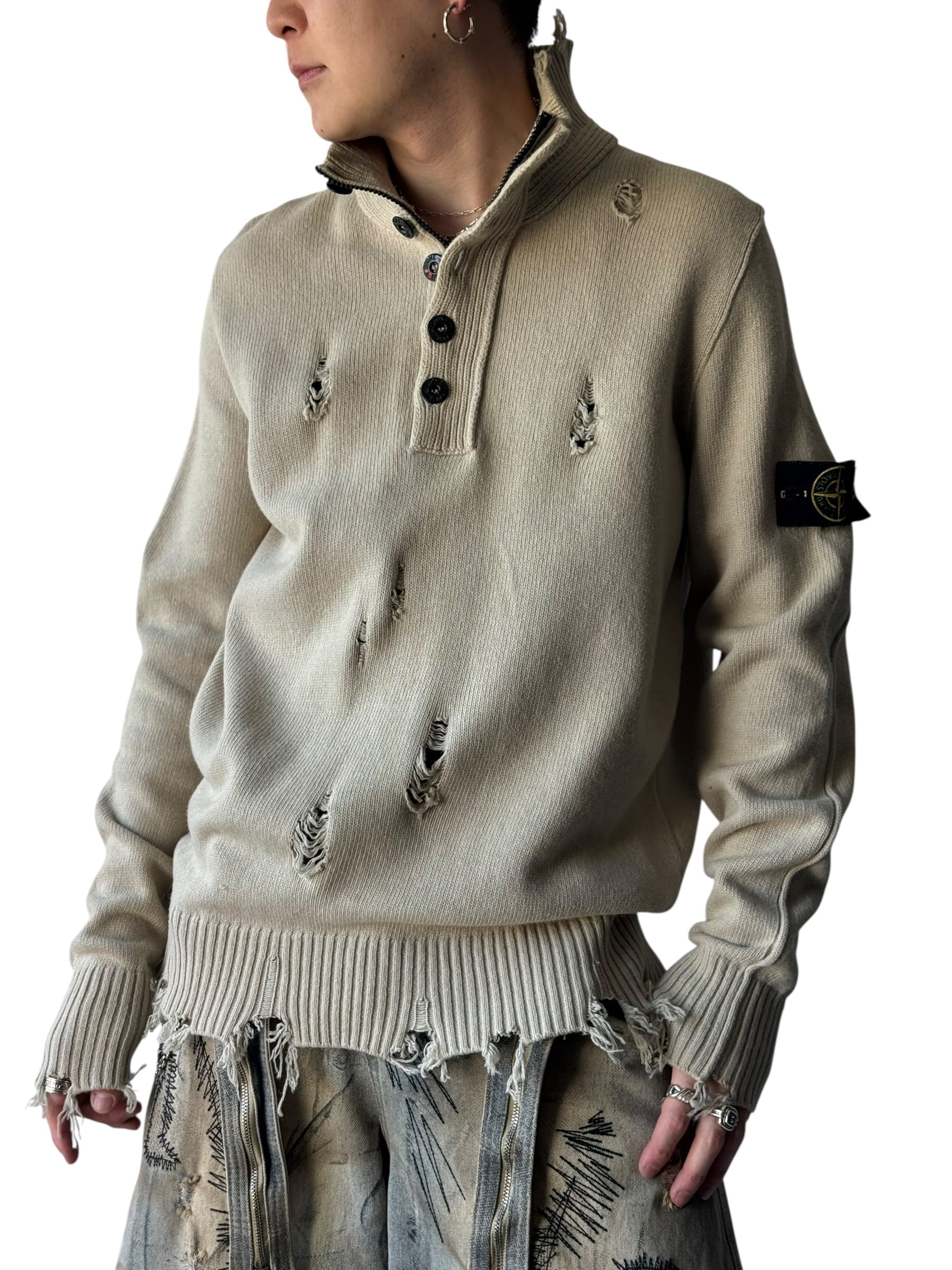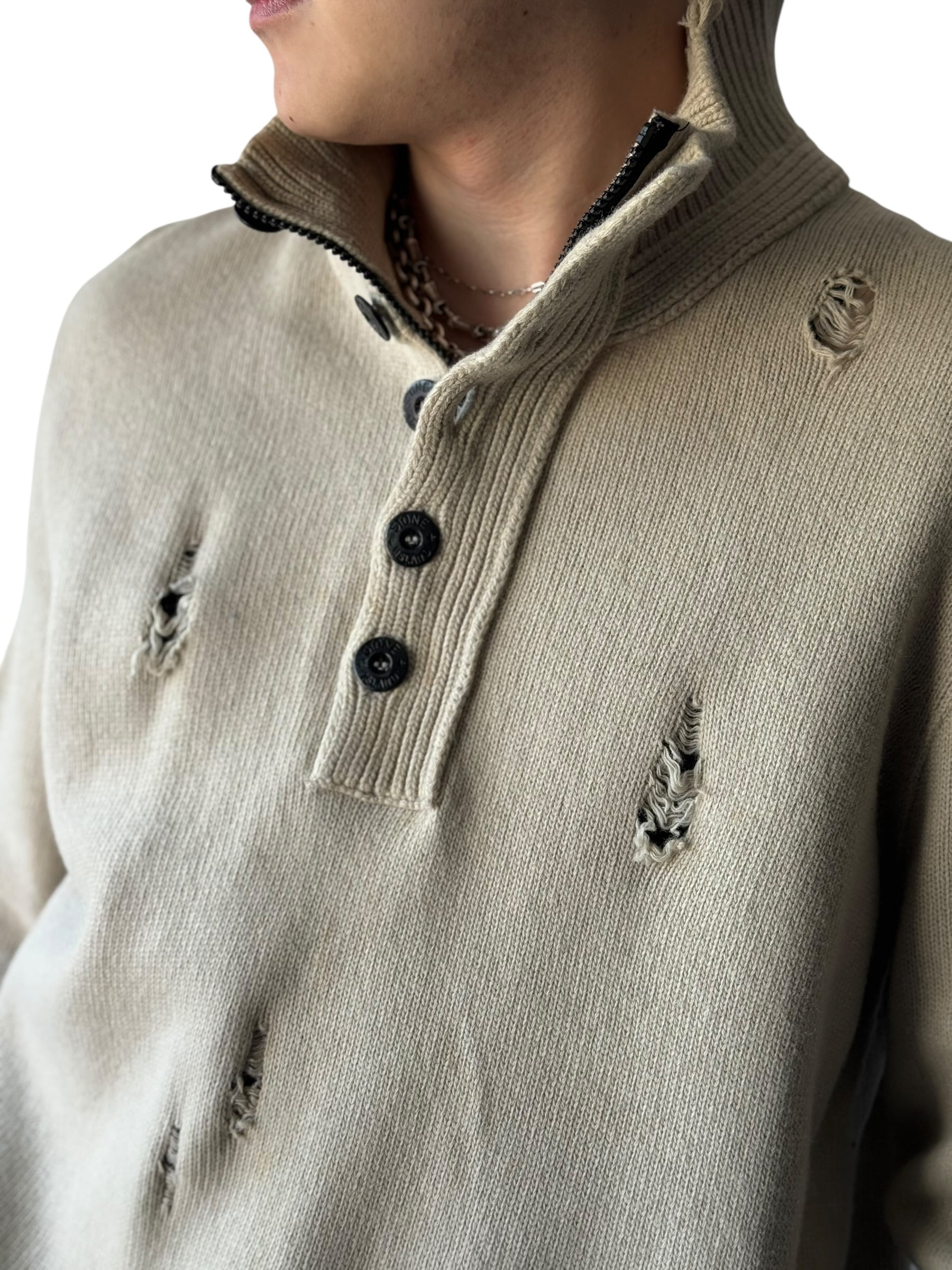 2016AW ♾️STONE ISLAND♾️ "damage crush"custom compass badge 2way design heavy gauge knit size XL