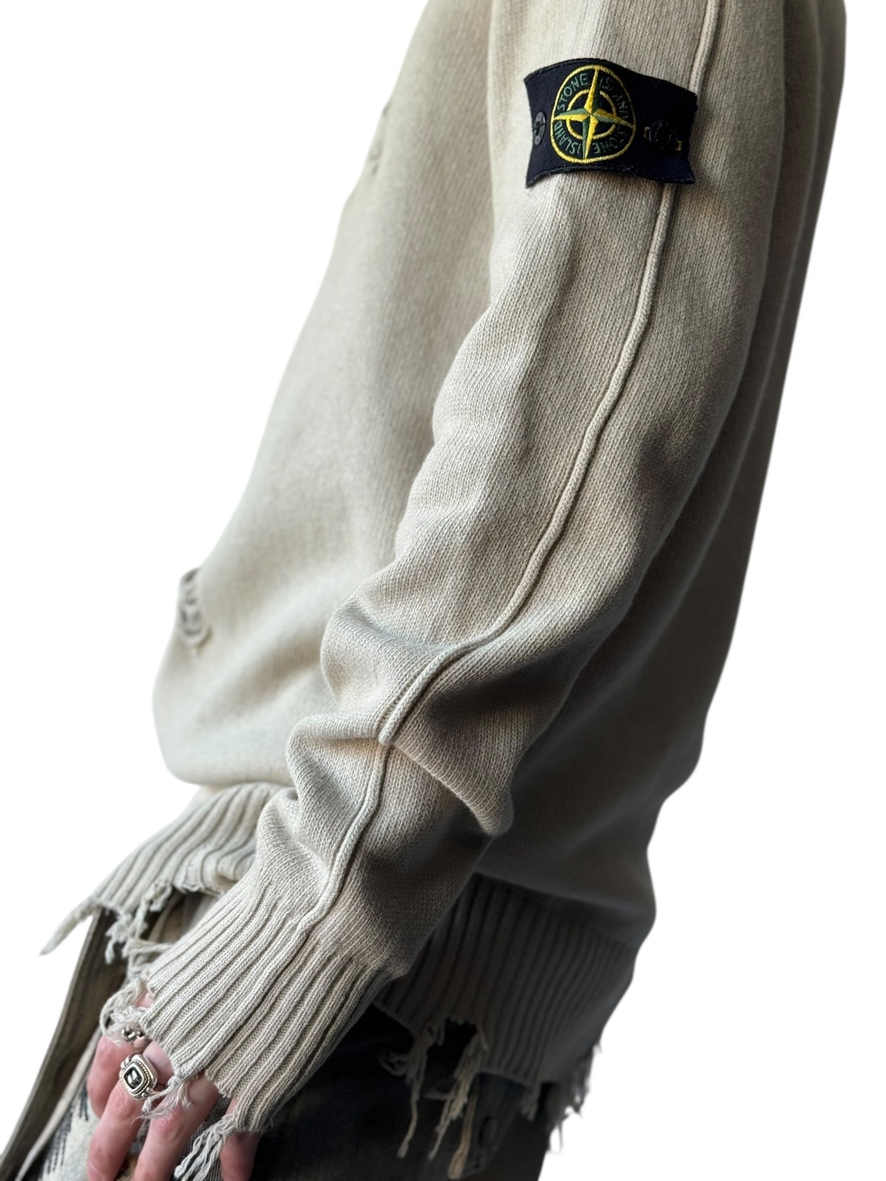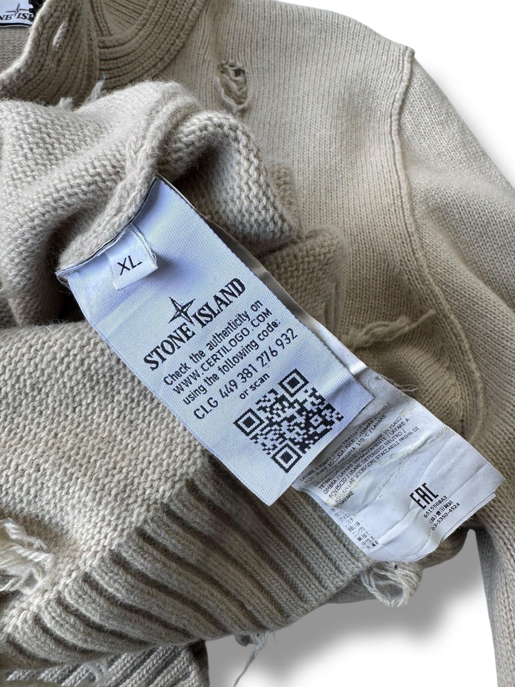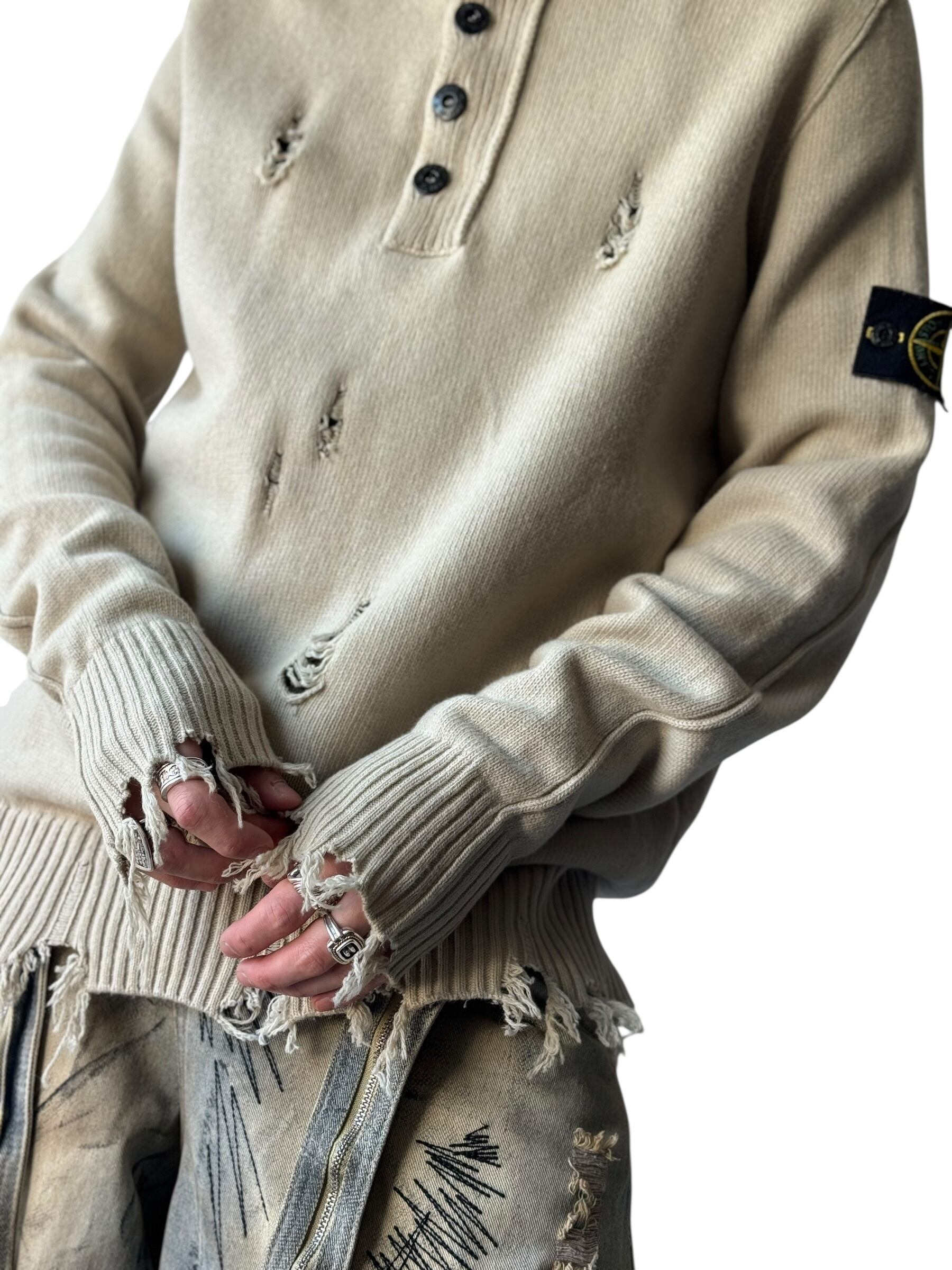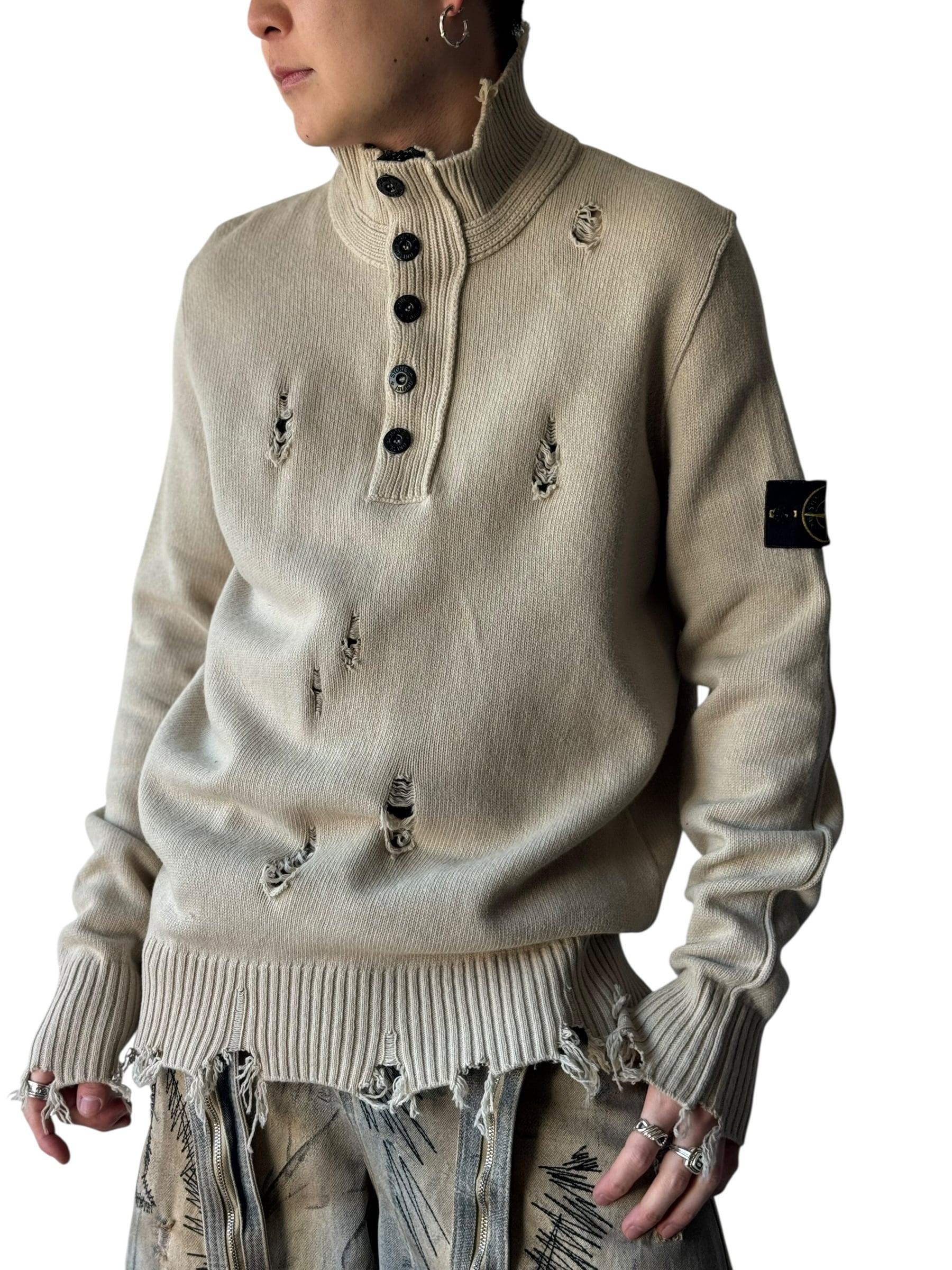 2016AW ♾️STONE ISLAND♾️ "damage crush"custom compass badge 2way design heavy gauge knit size XL
