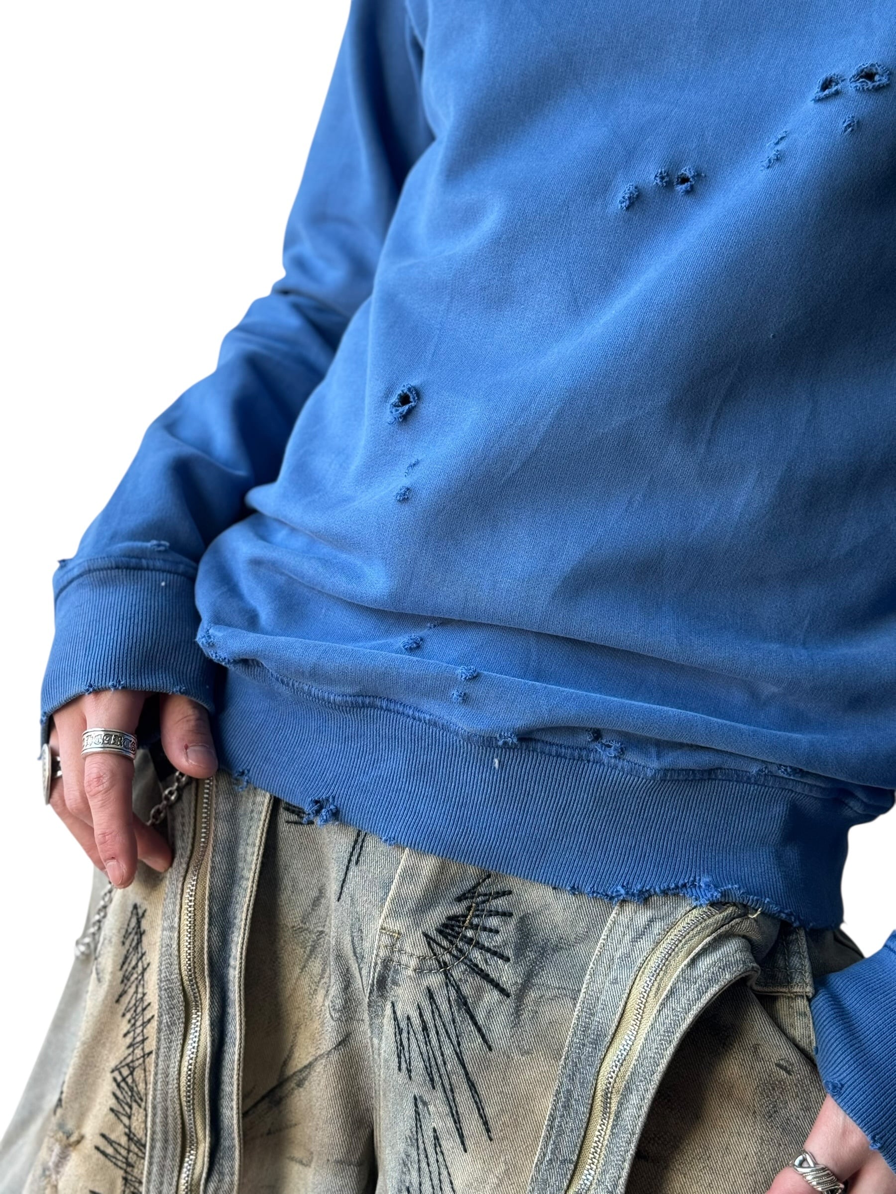 この袖のバッジだけでもかなり満足度は高いですが、それだけでは飽き足らずダメージ加工が施された大満足過ぎるスペシャルなカスタム.