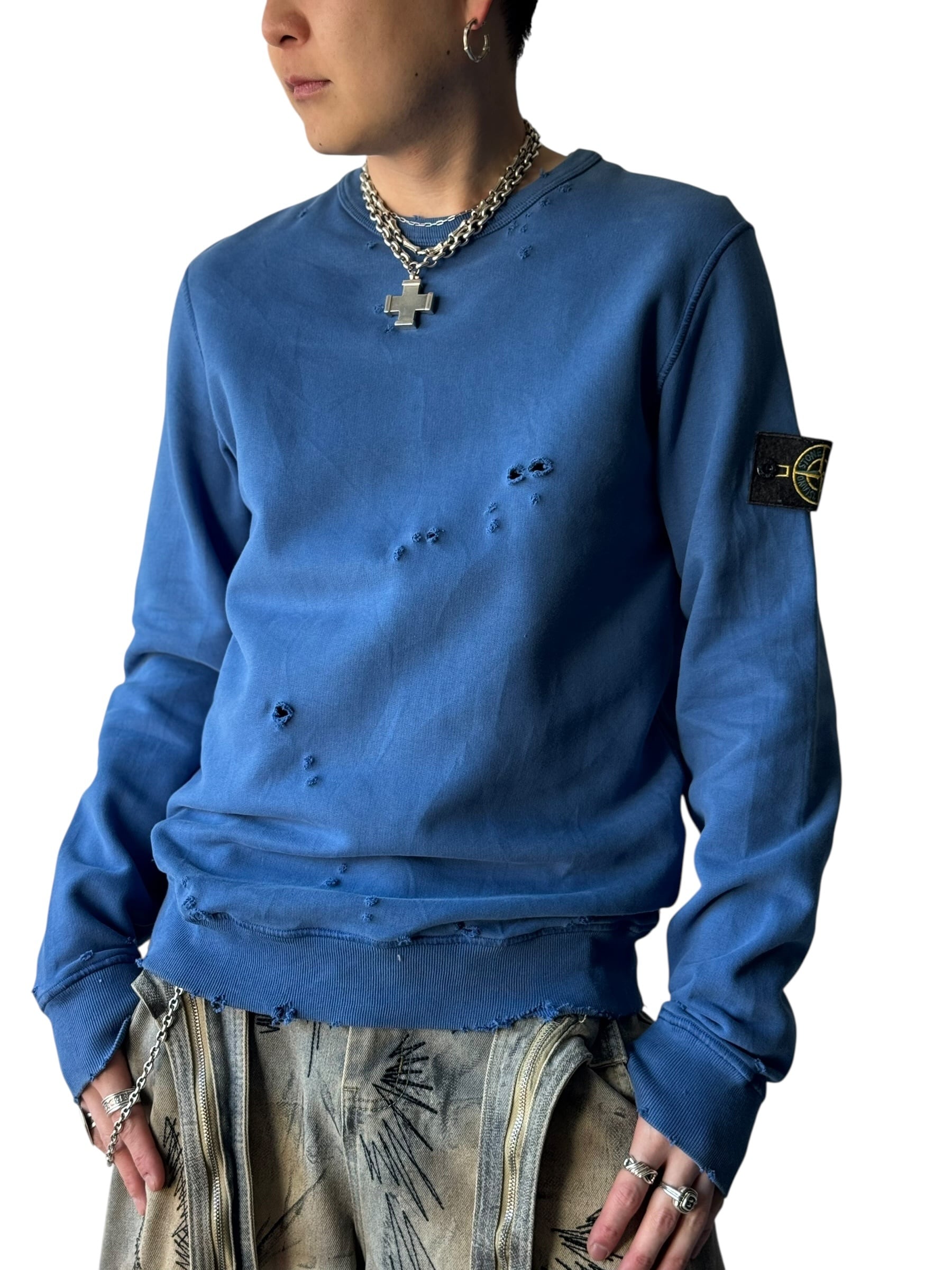 2020AW ♾️STONE ISLAND JUNIOR♾️ "damage crush"custom compass badge crewsweat size 14