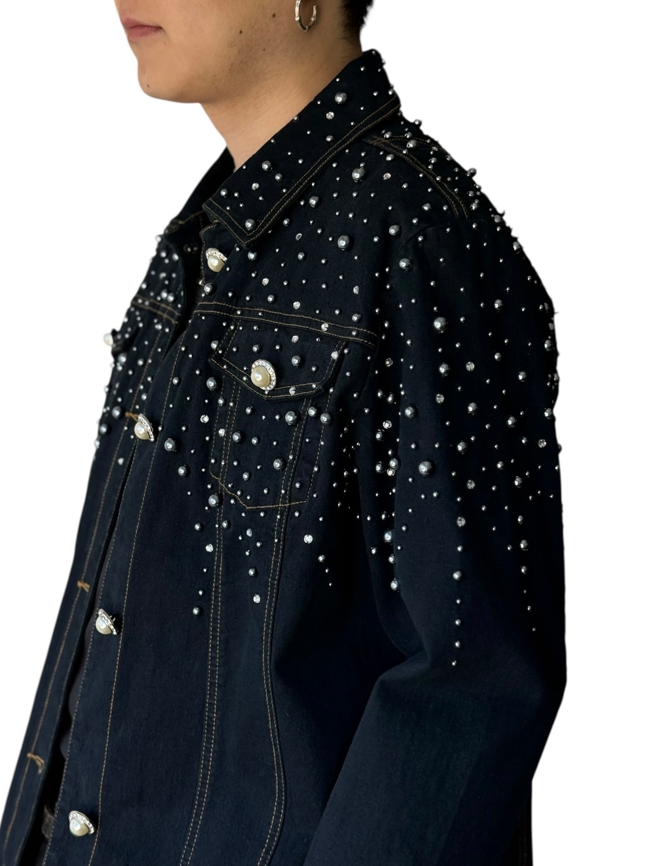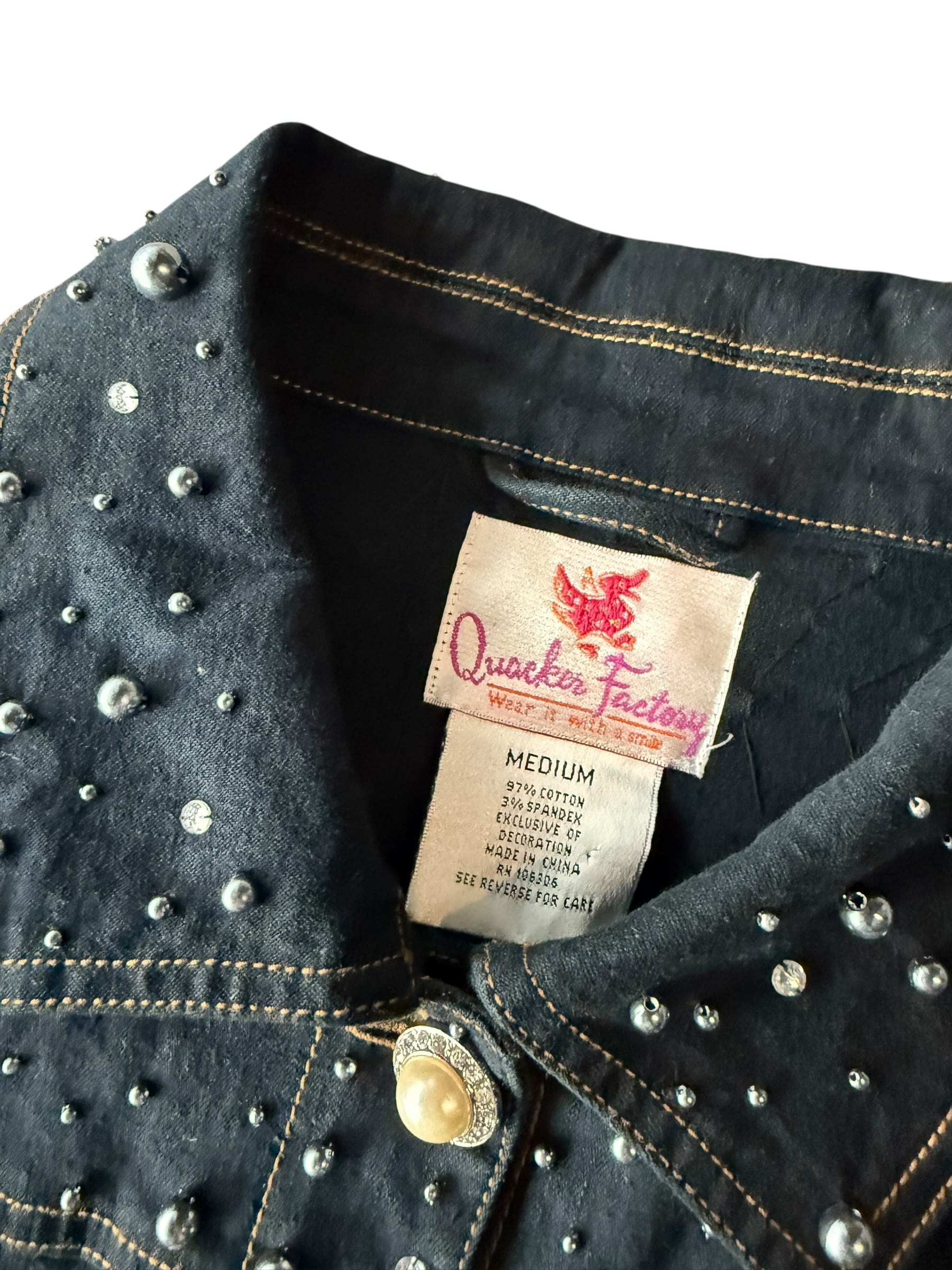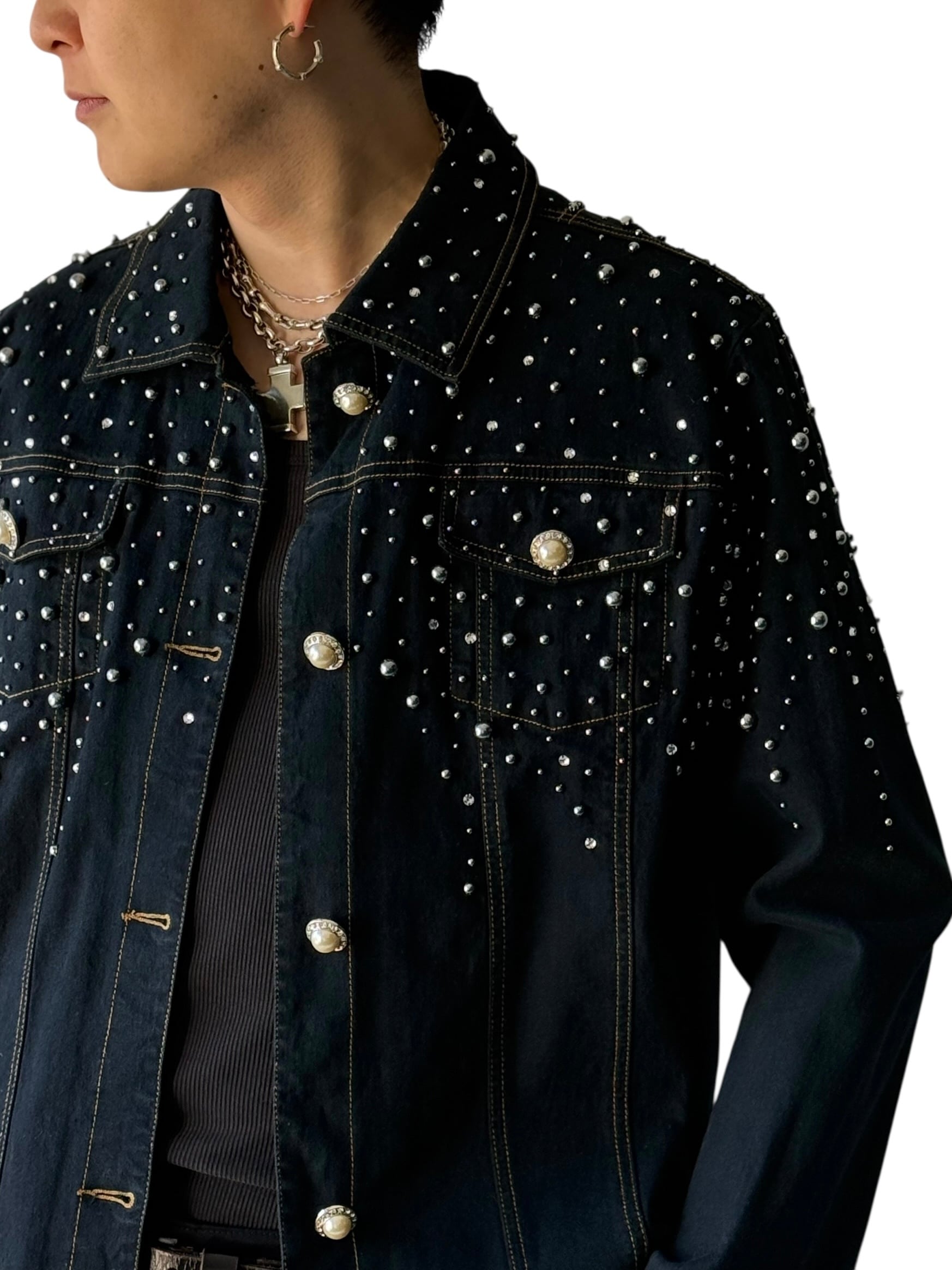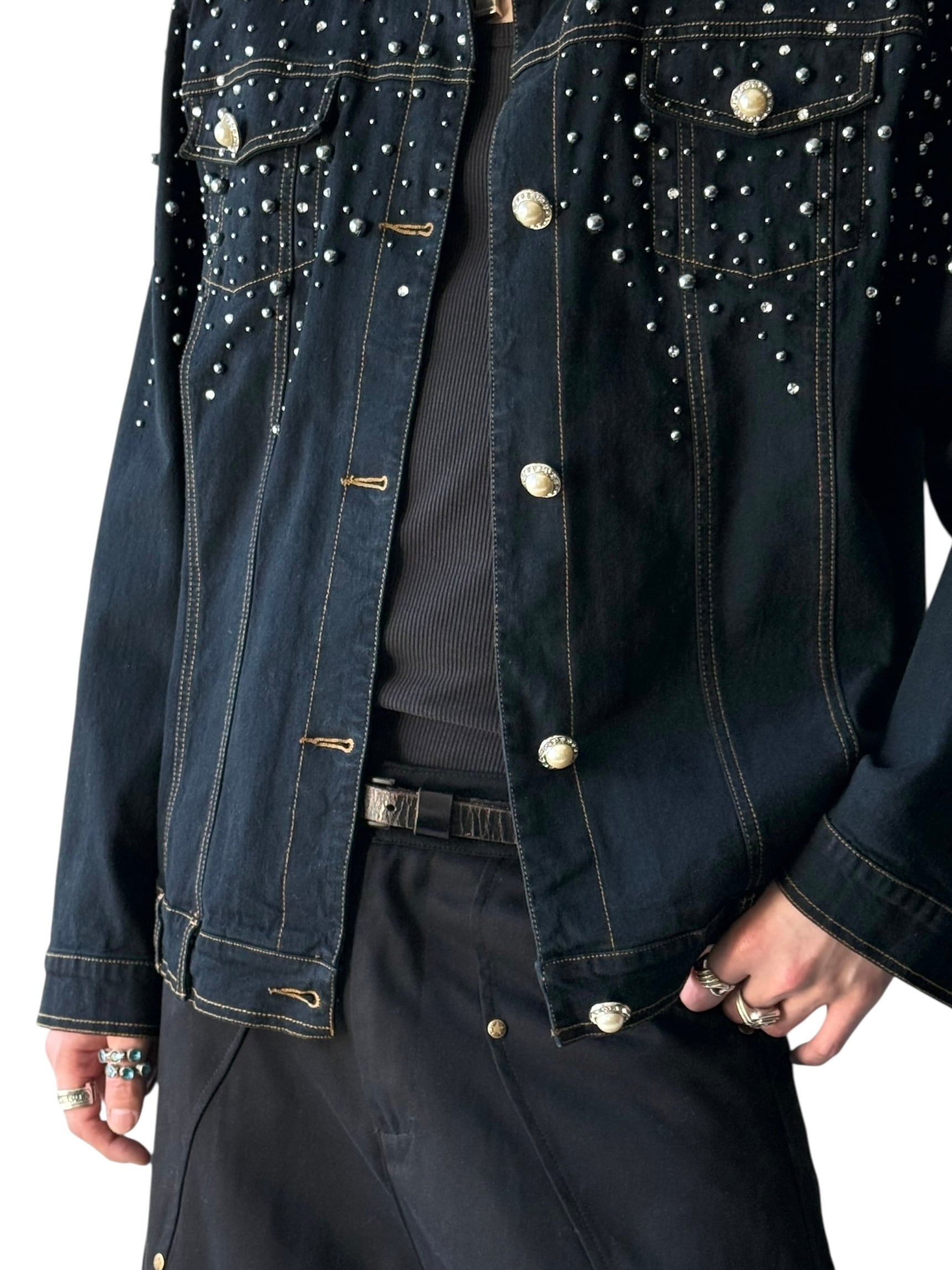 【QUACKER FACTORY】Metal pearl stud design decoration denim trucker jacket