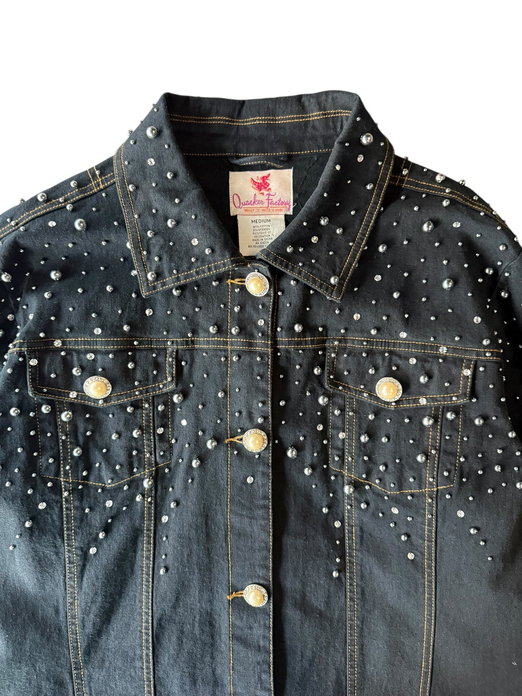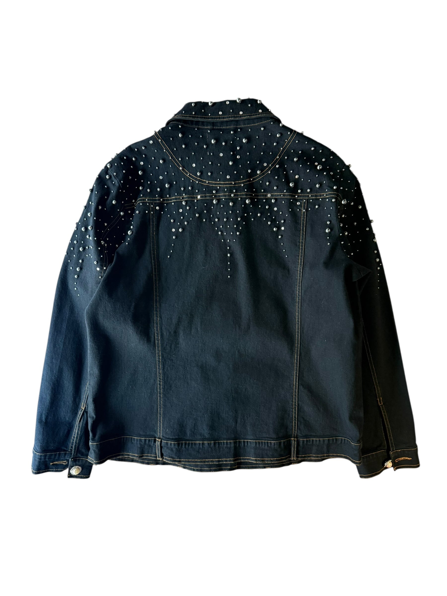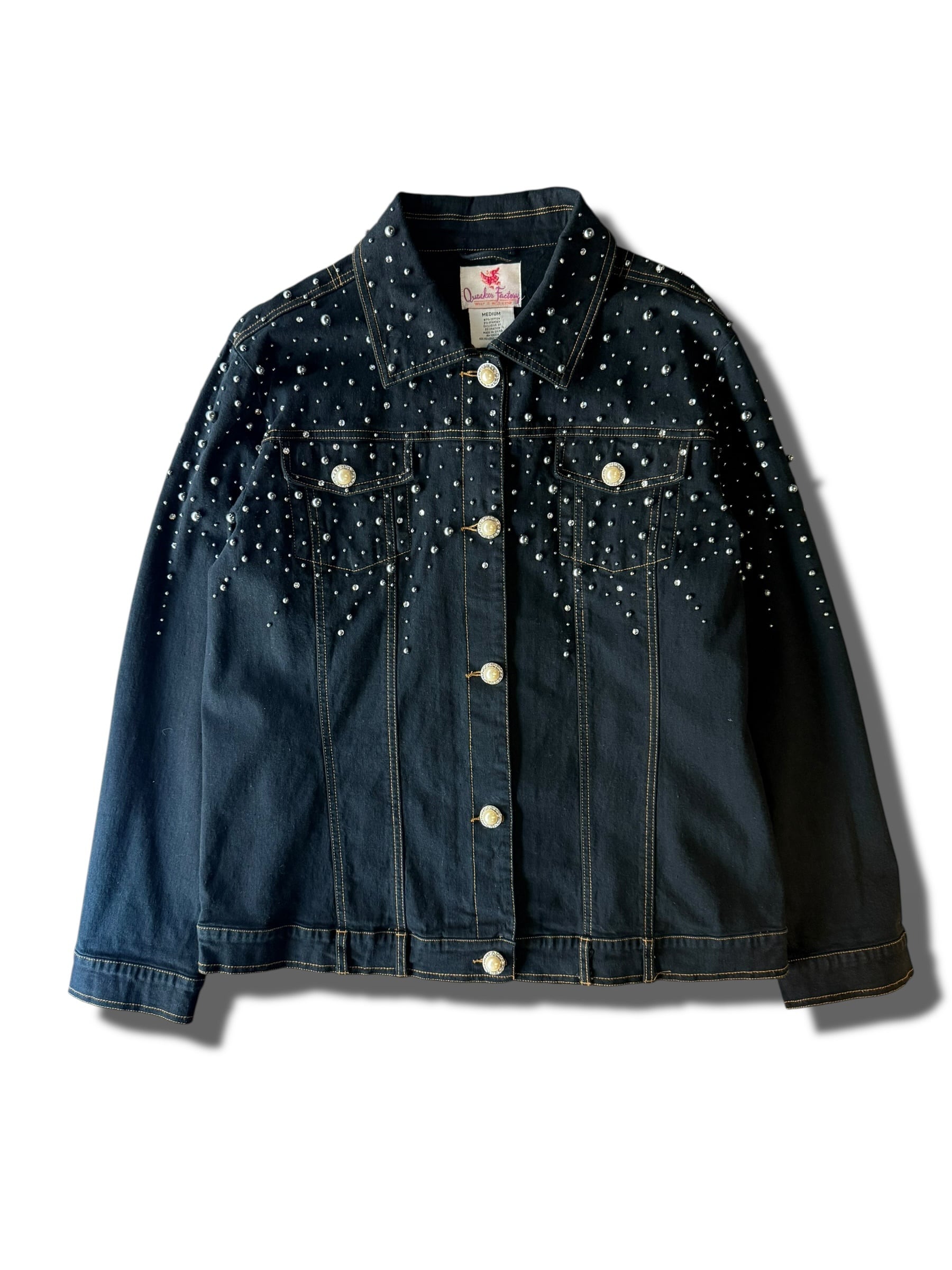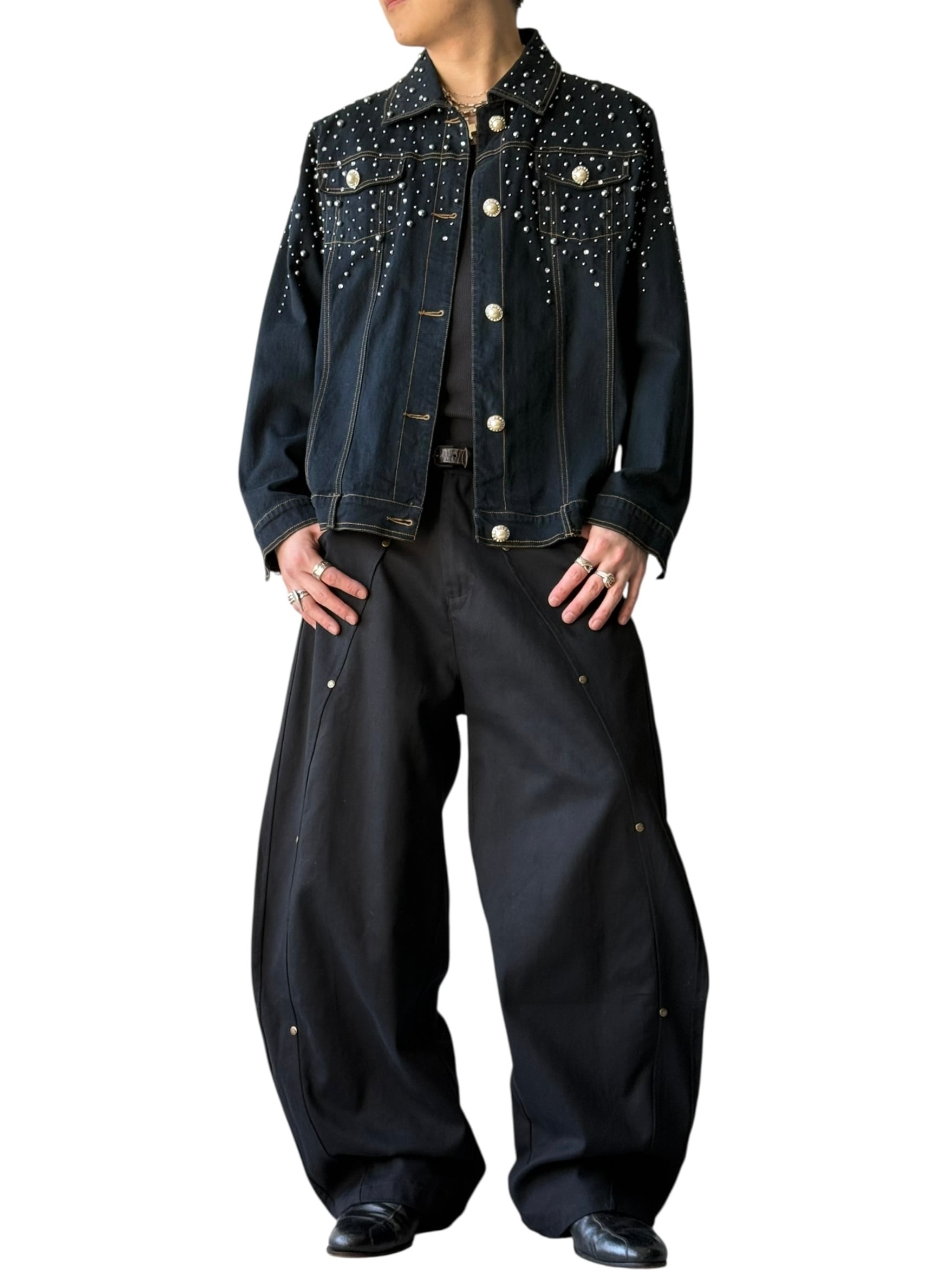 【QUACKER FACTORY】Metal pearl stud design decoration denim trucker jacket