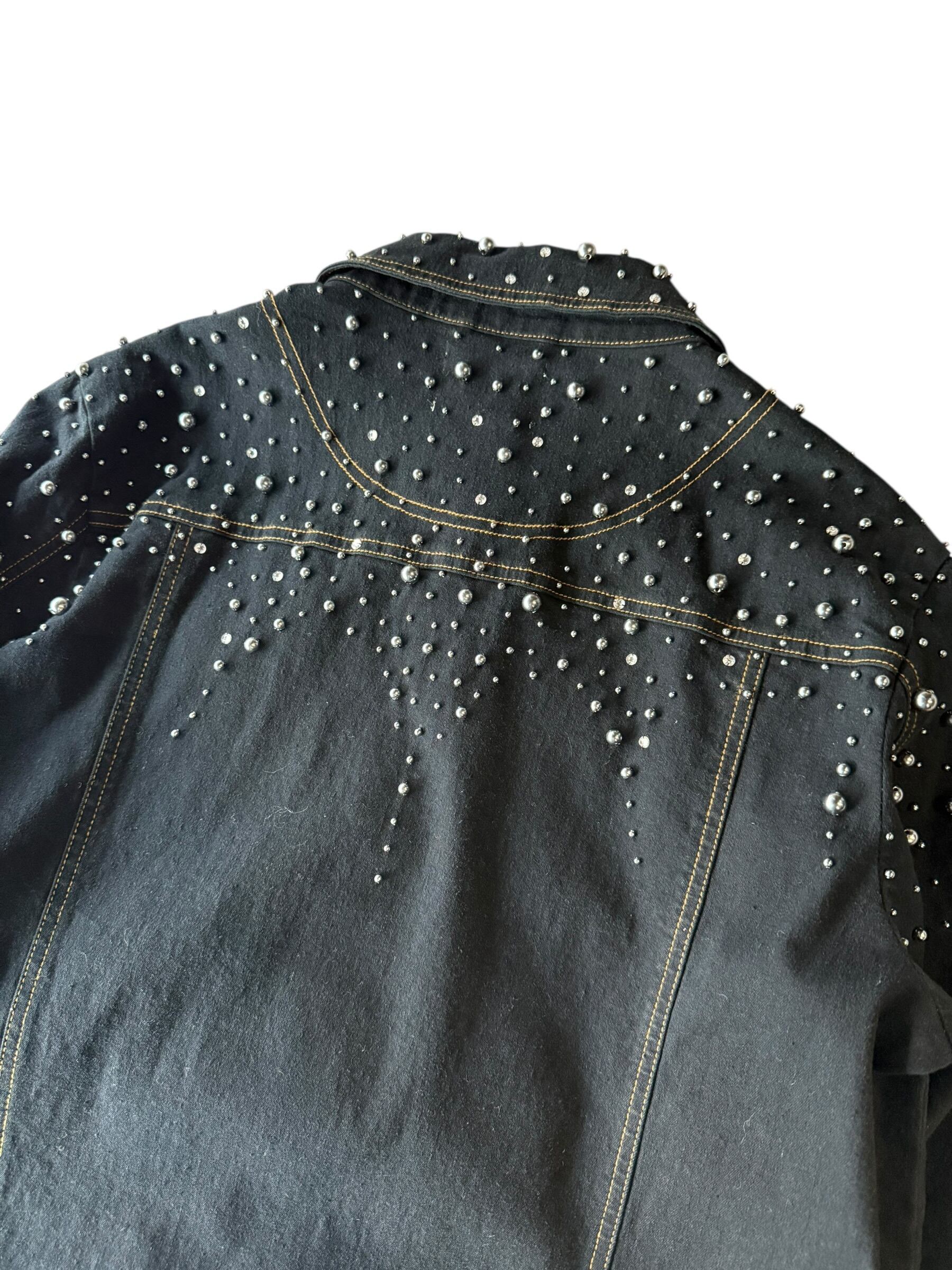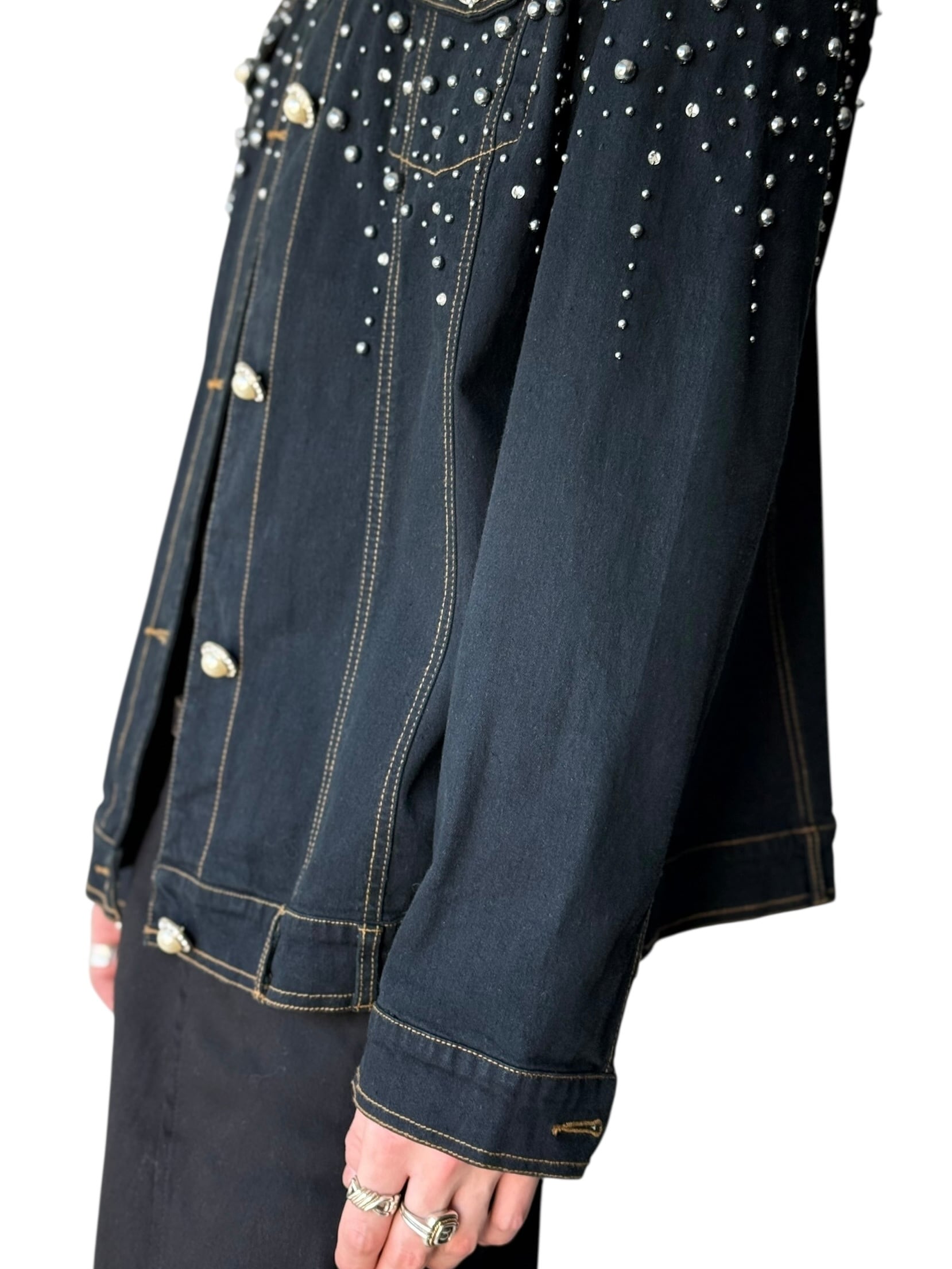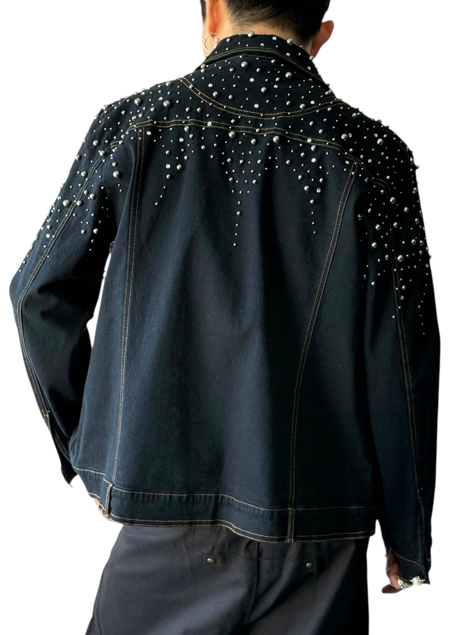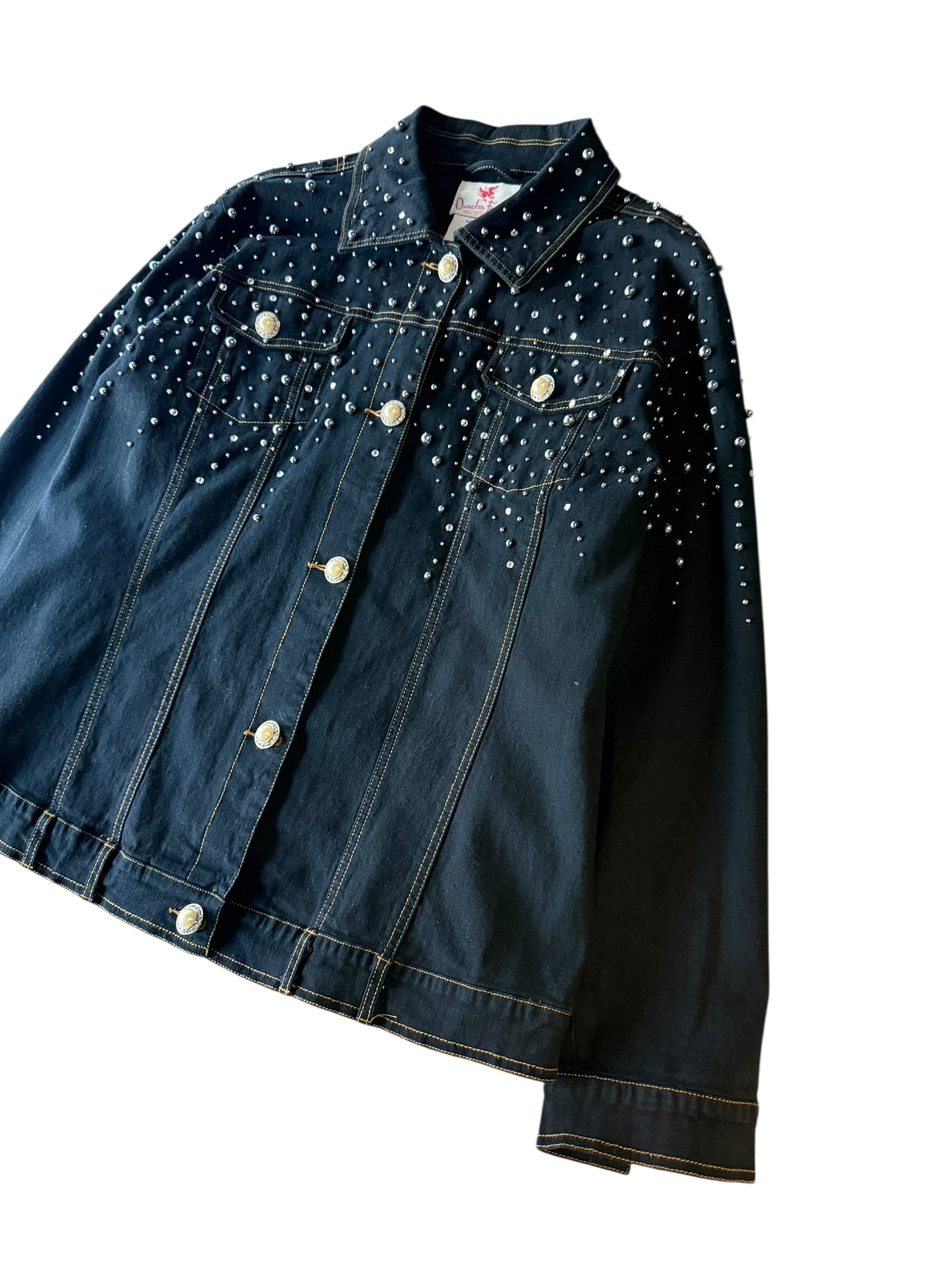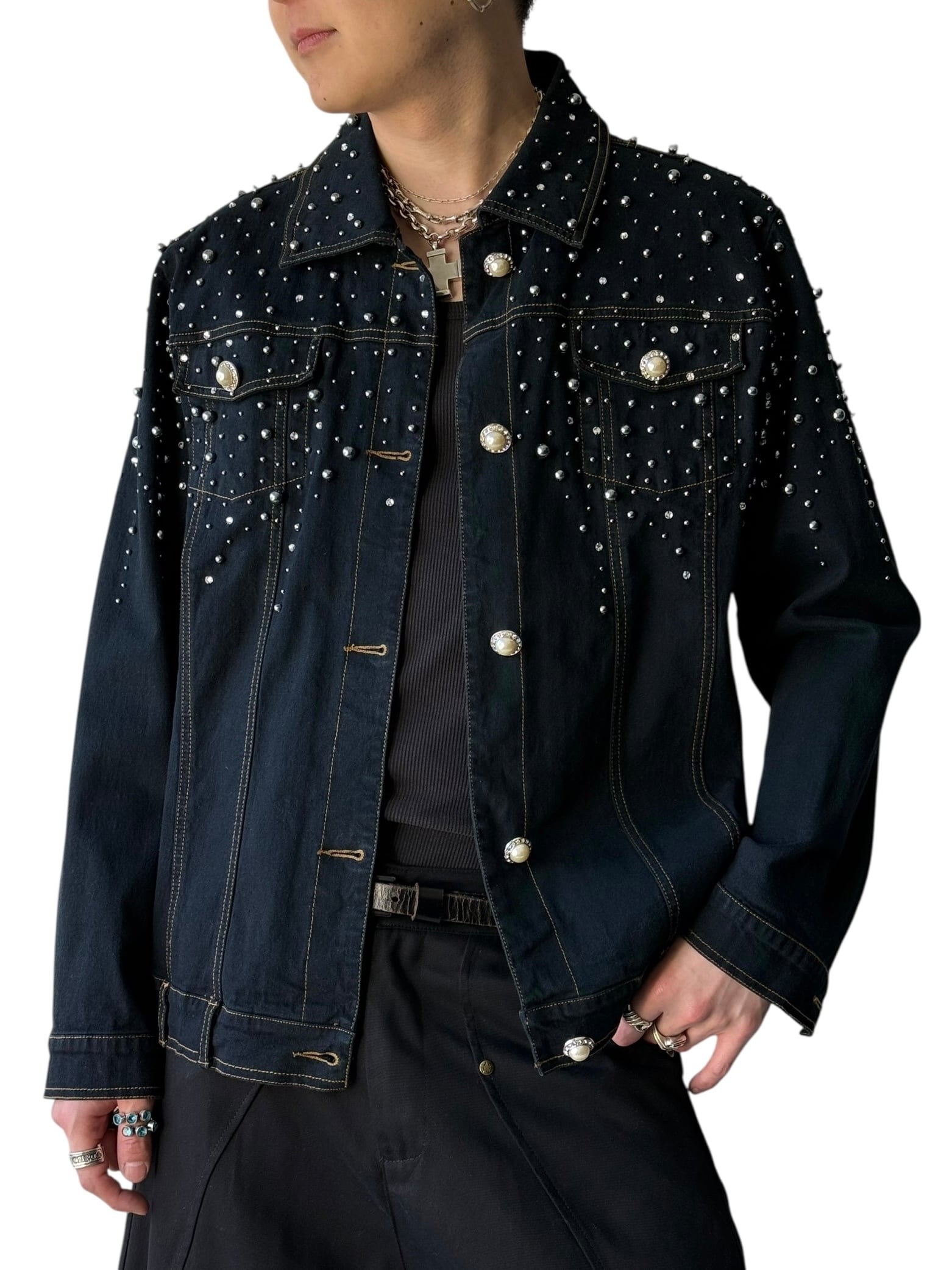 100%使えるブラックデニムジャケットにパール装飾の付いためちゃくちゃお洒落なデザイン✨✨