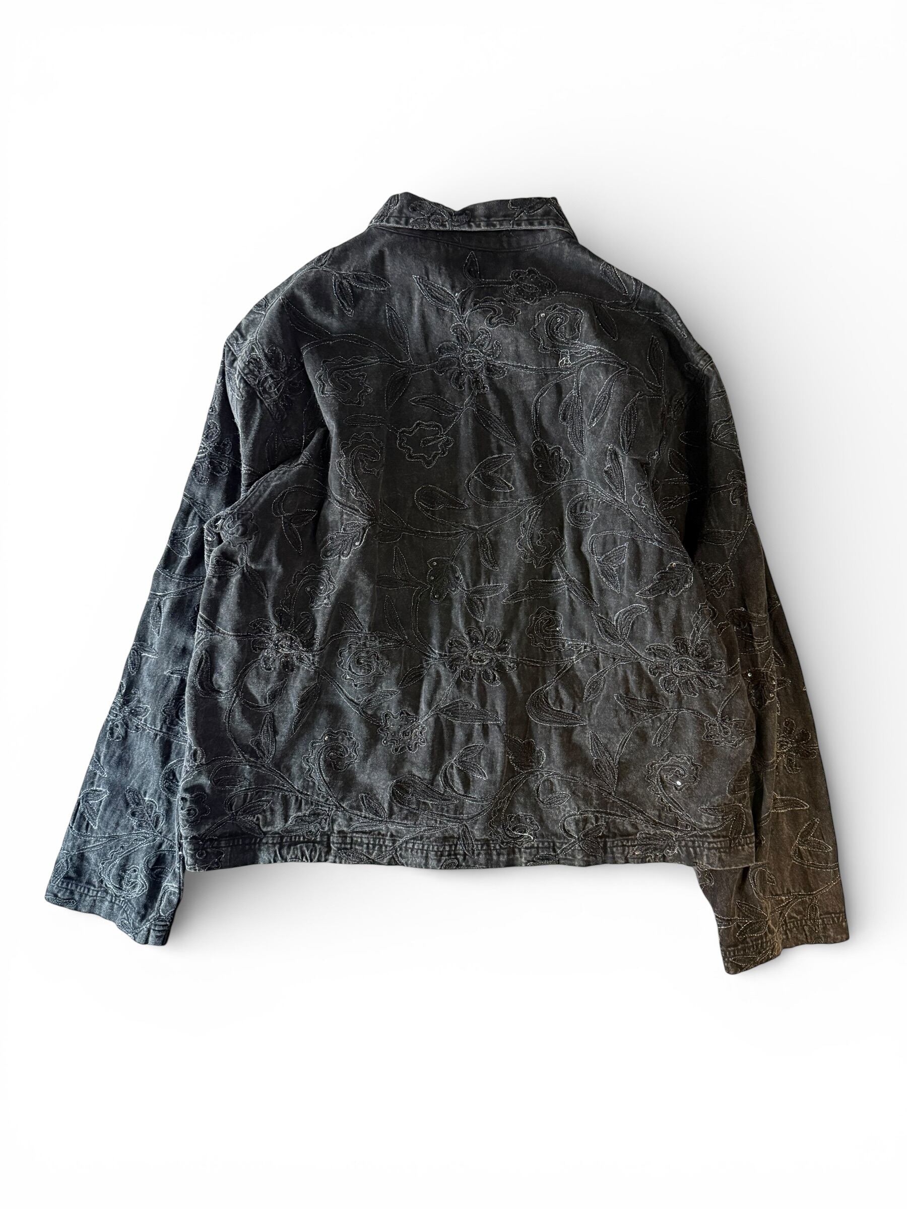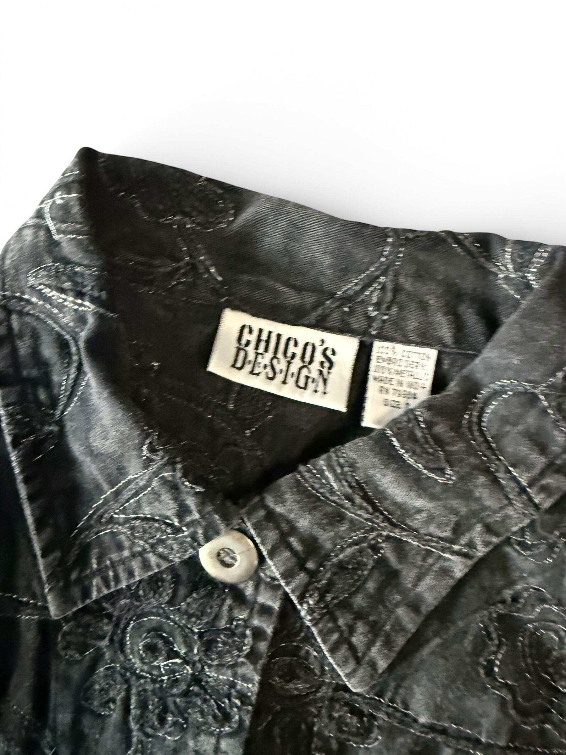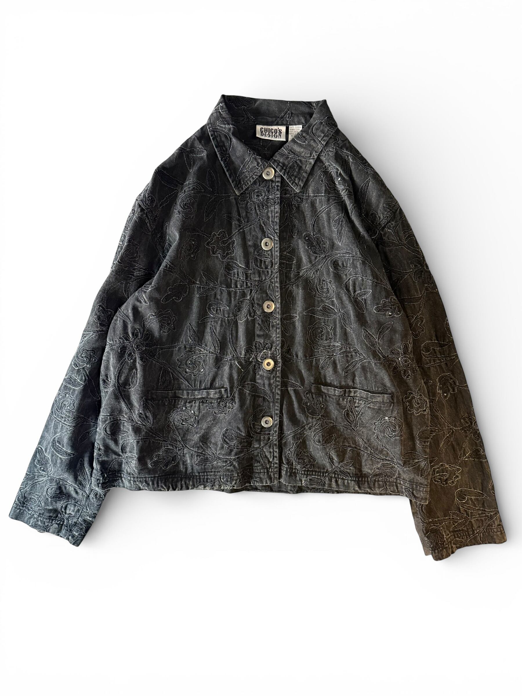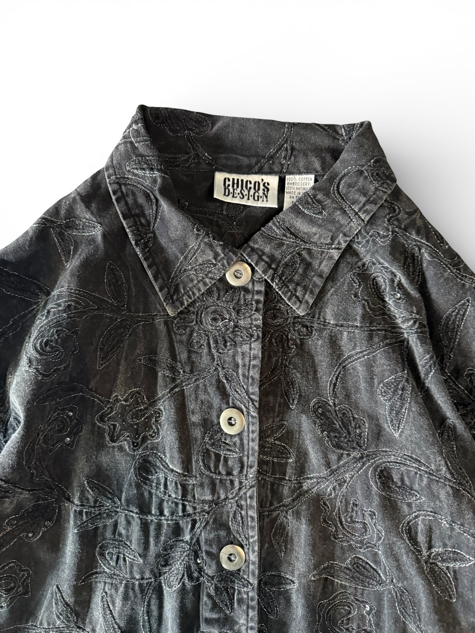 【CHICO'S DESIGN】Floral embroidered black denim short jacket