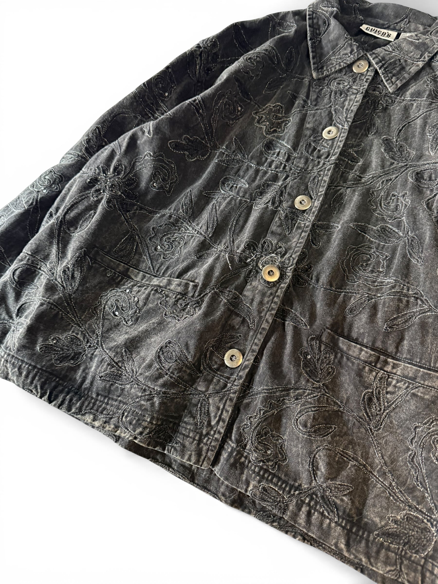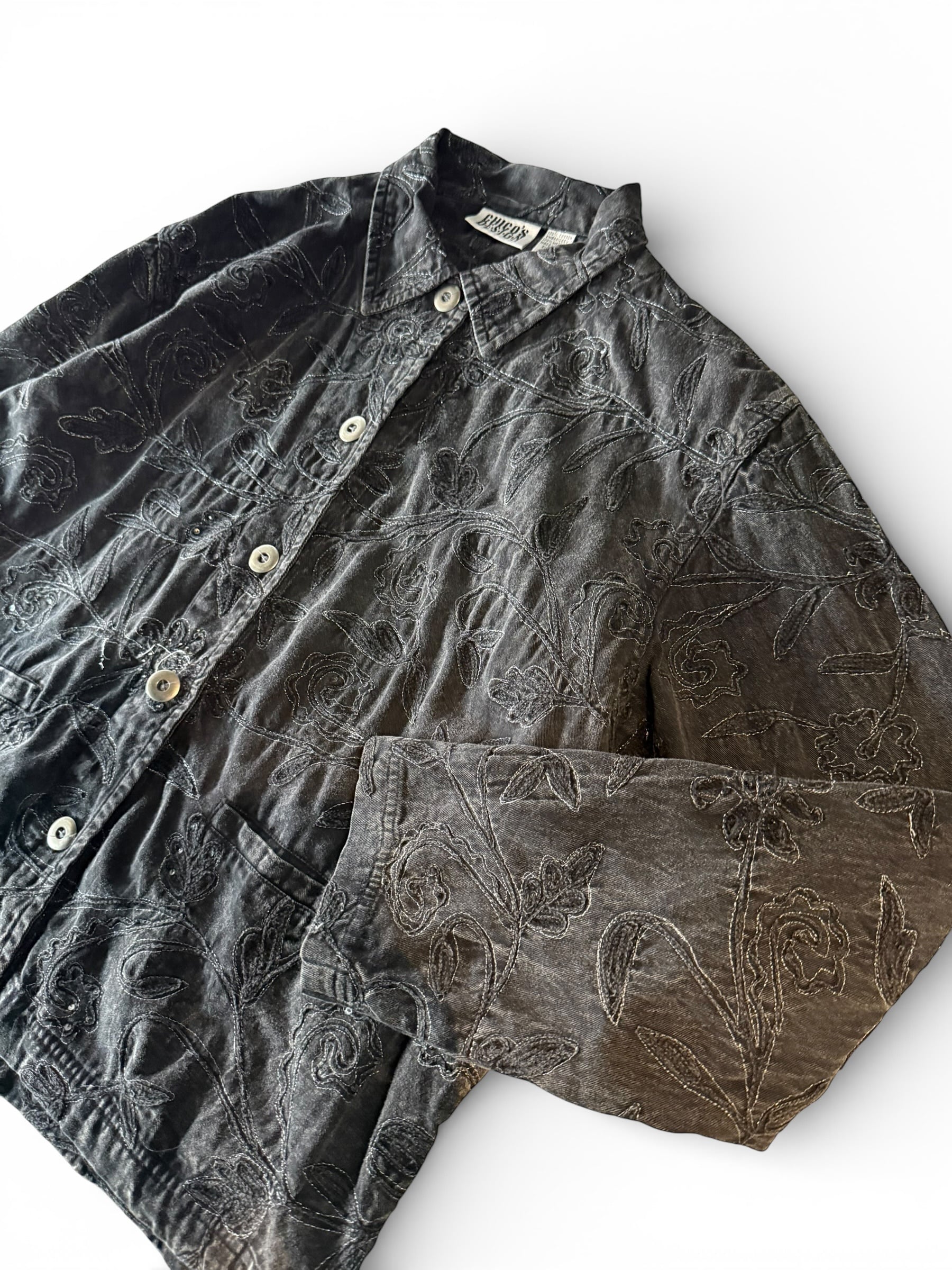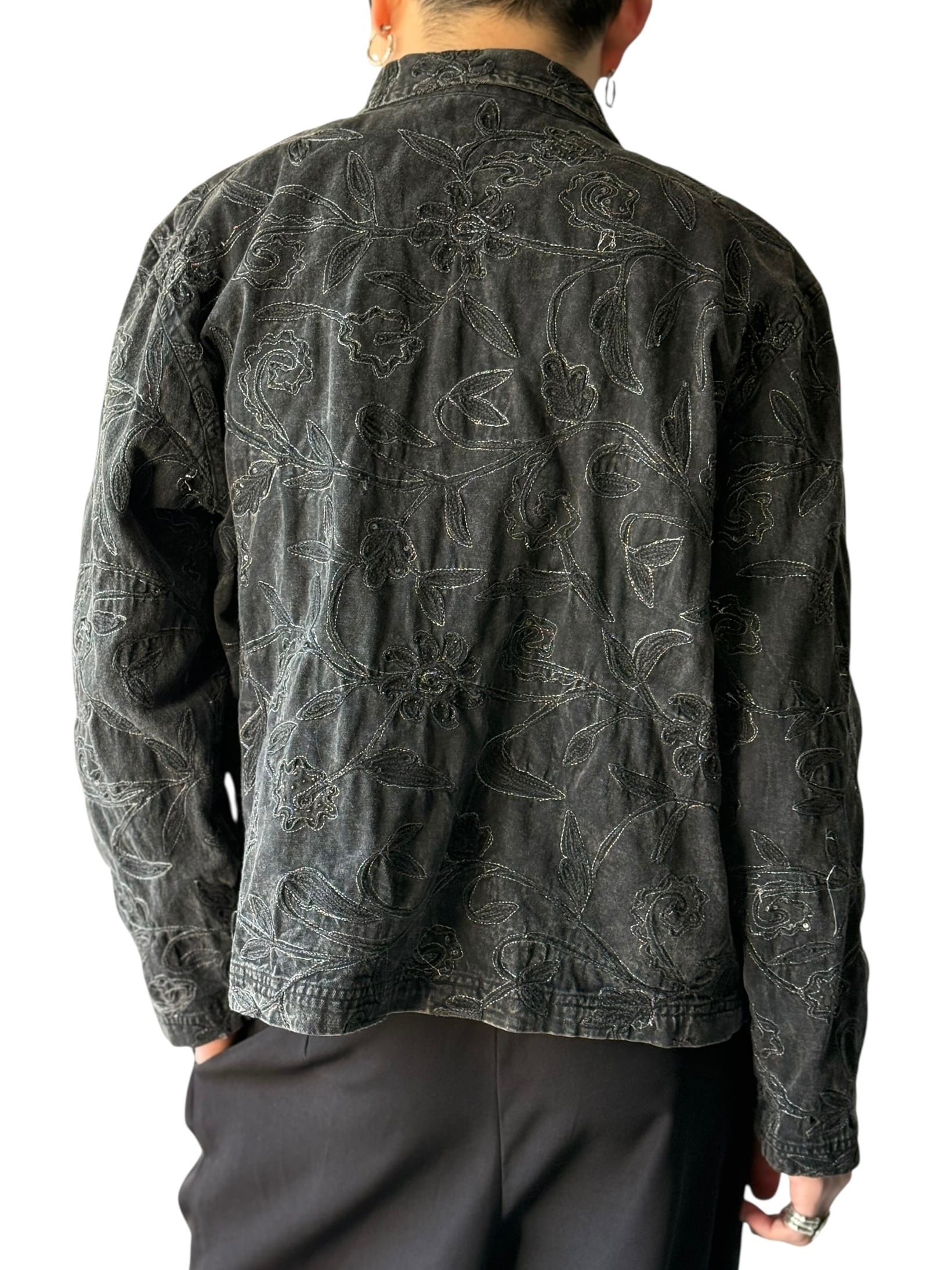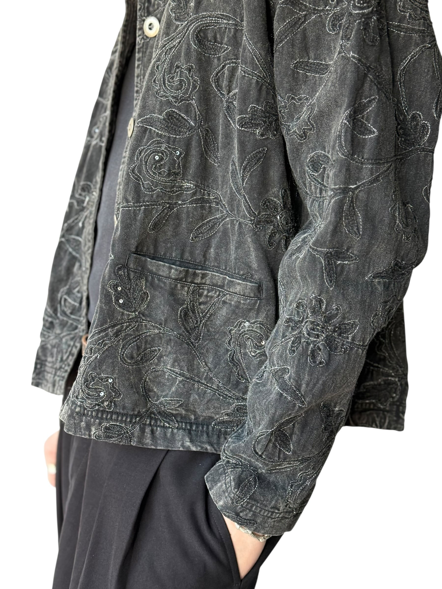 【CHICO'S DESIGN】Floral embroidered black denim short jacket