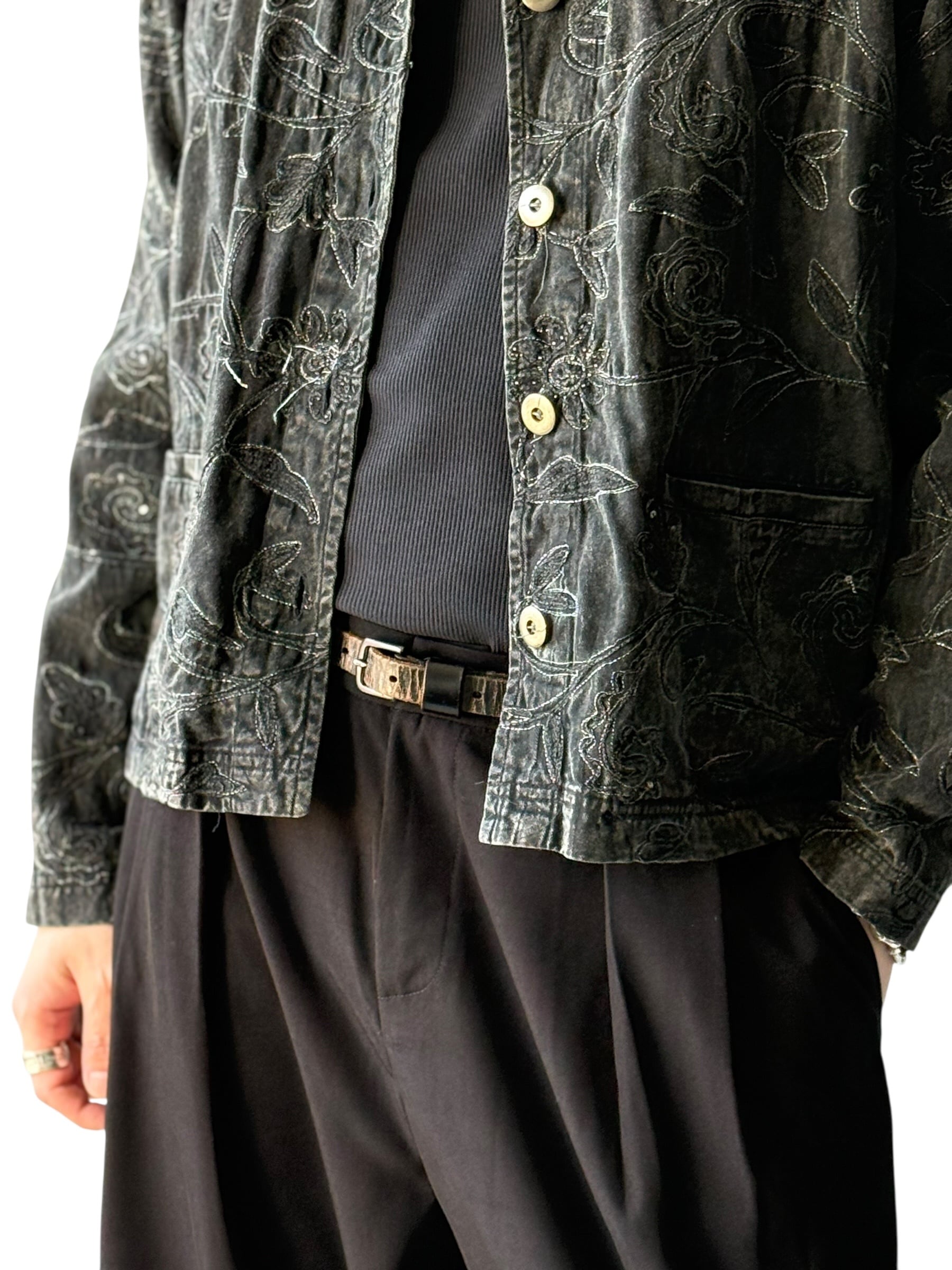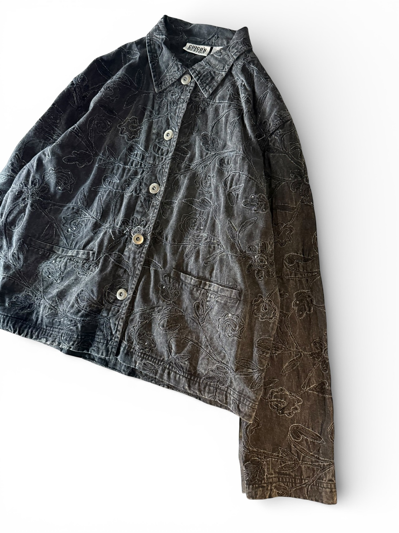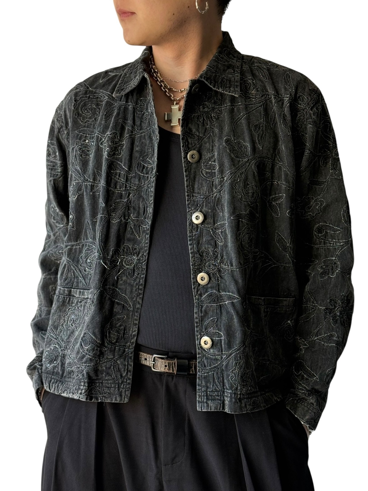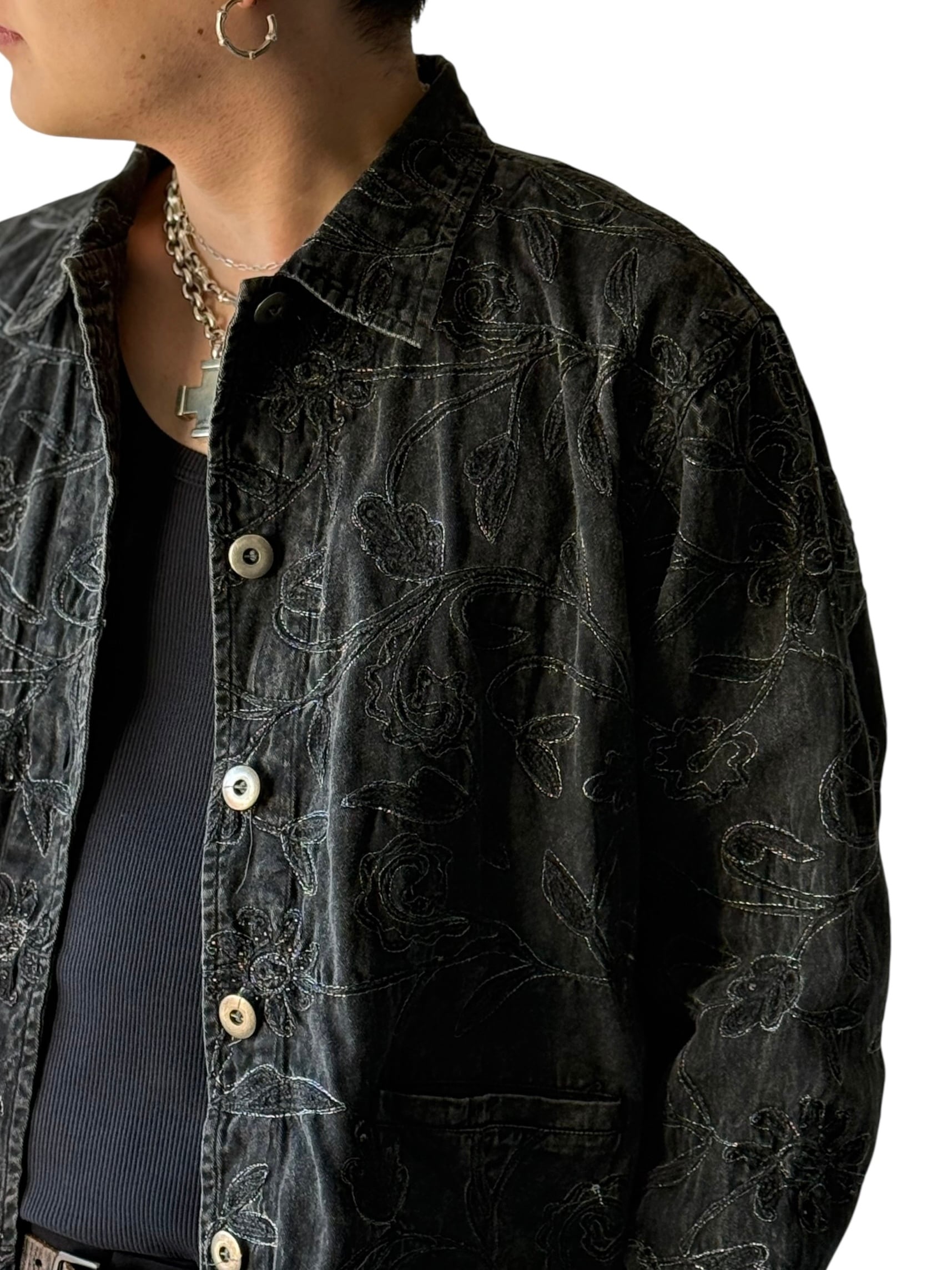 【CHICO'S DESIGN】Floral embroidered black denim short jacket