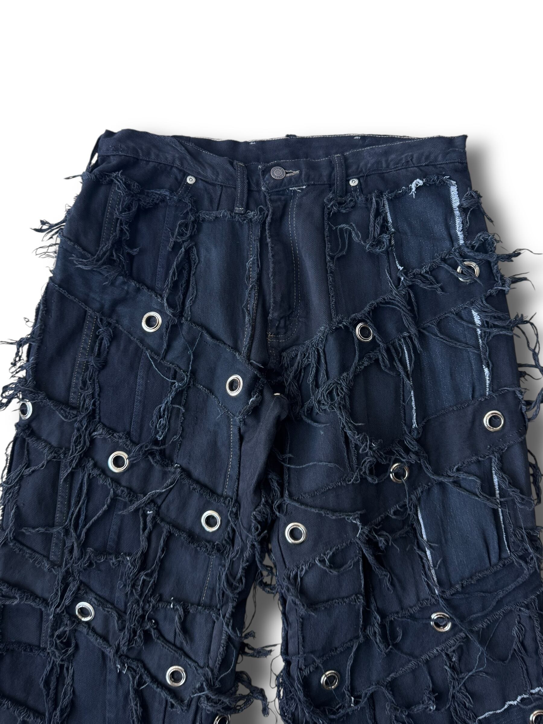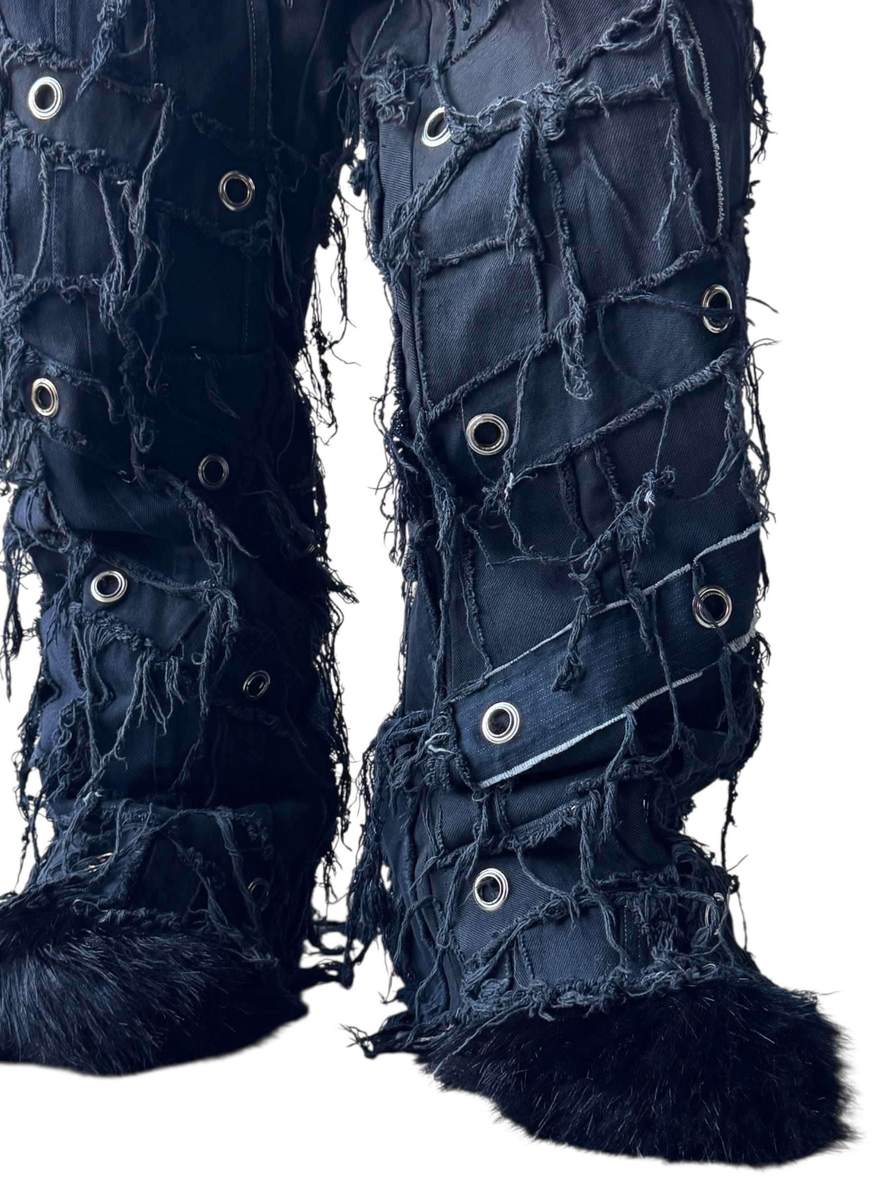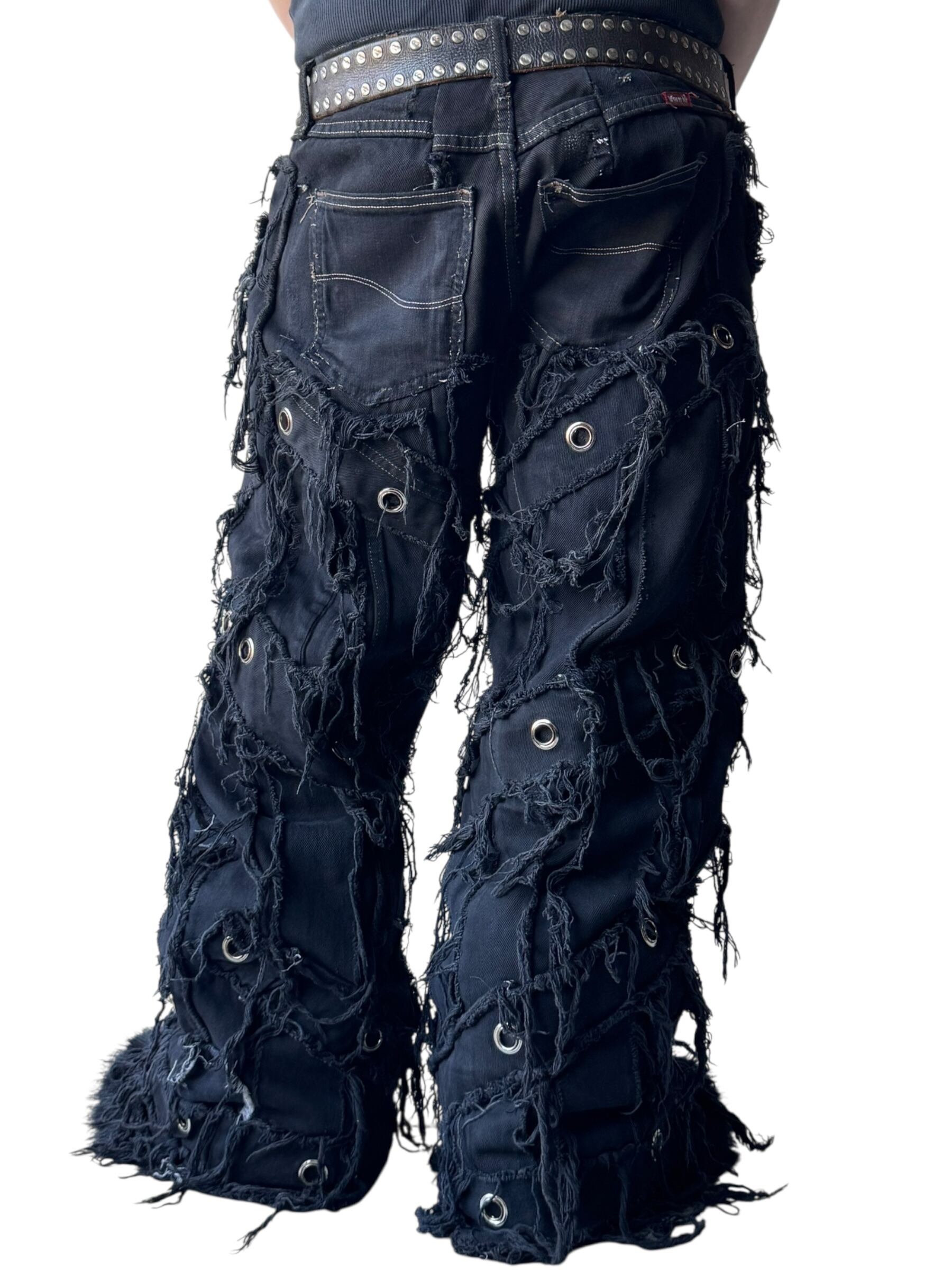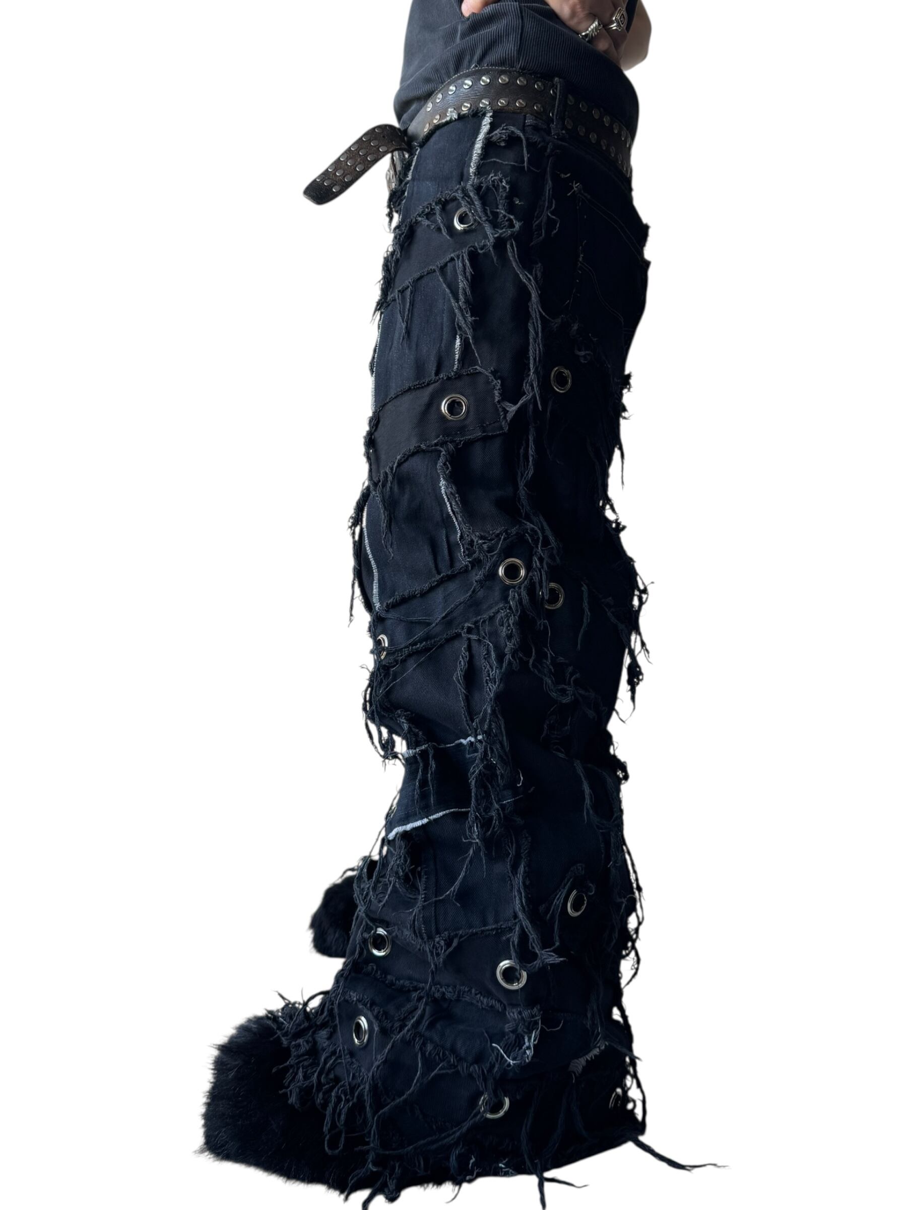 数本のデニムを足して作られているので通常ではあり得ない存在感抜群なメガワイドシルエット❗️