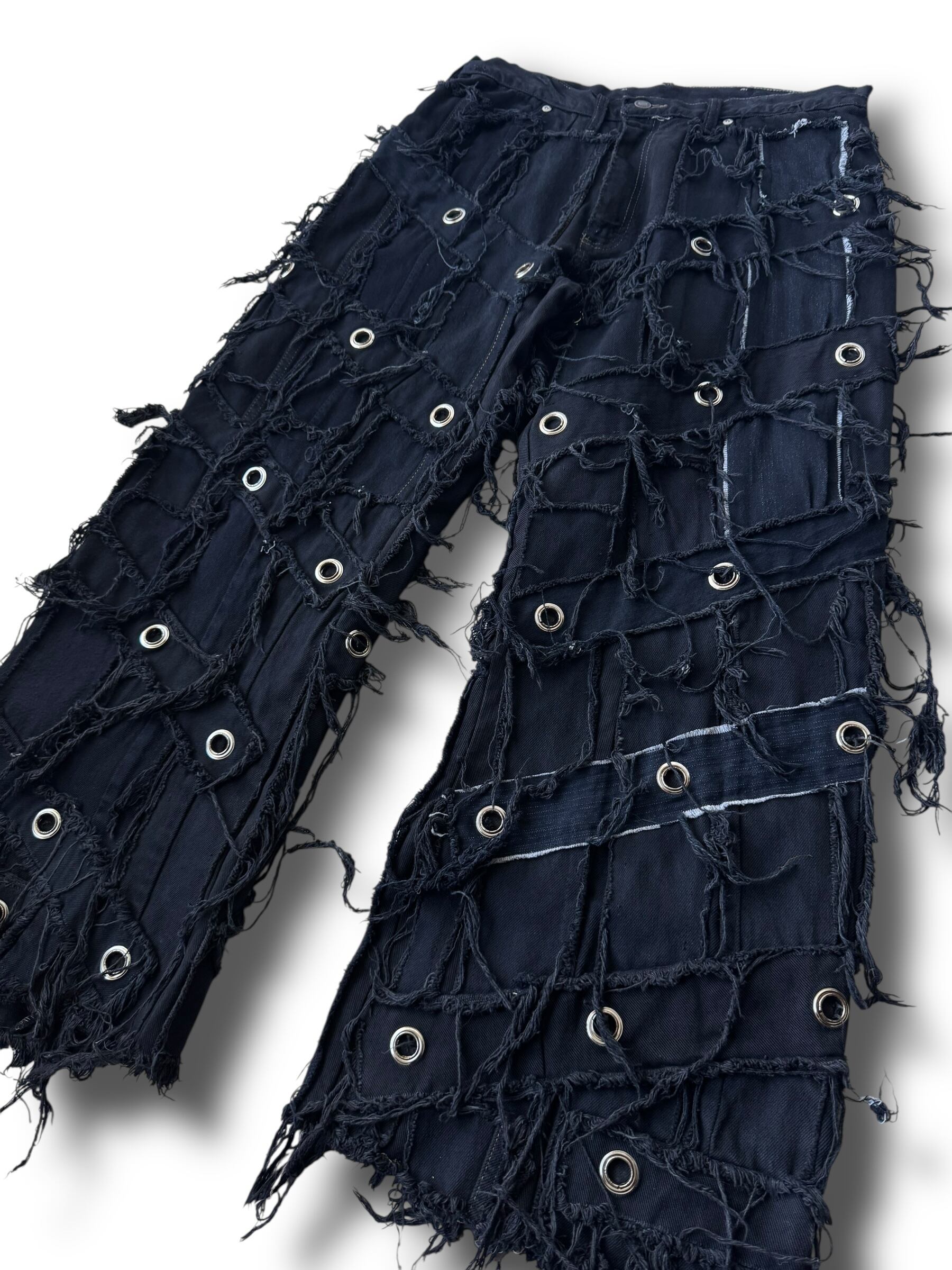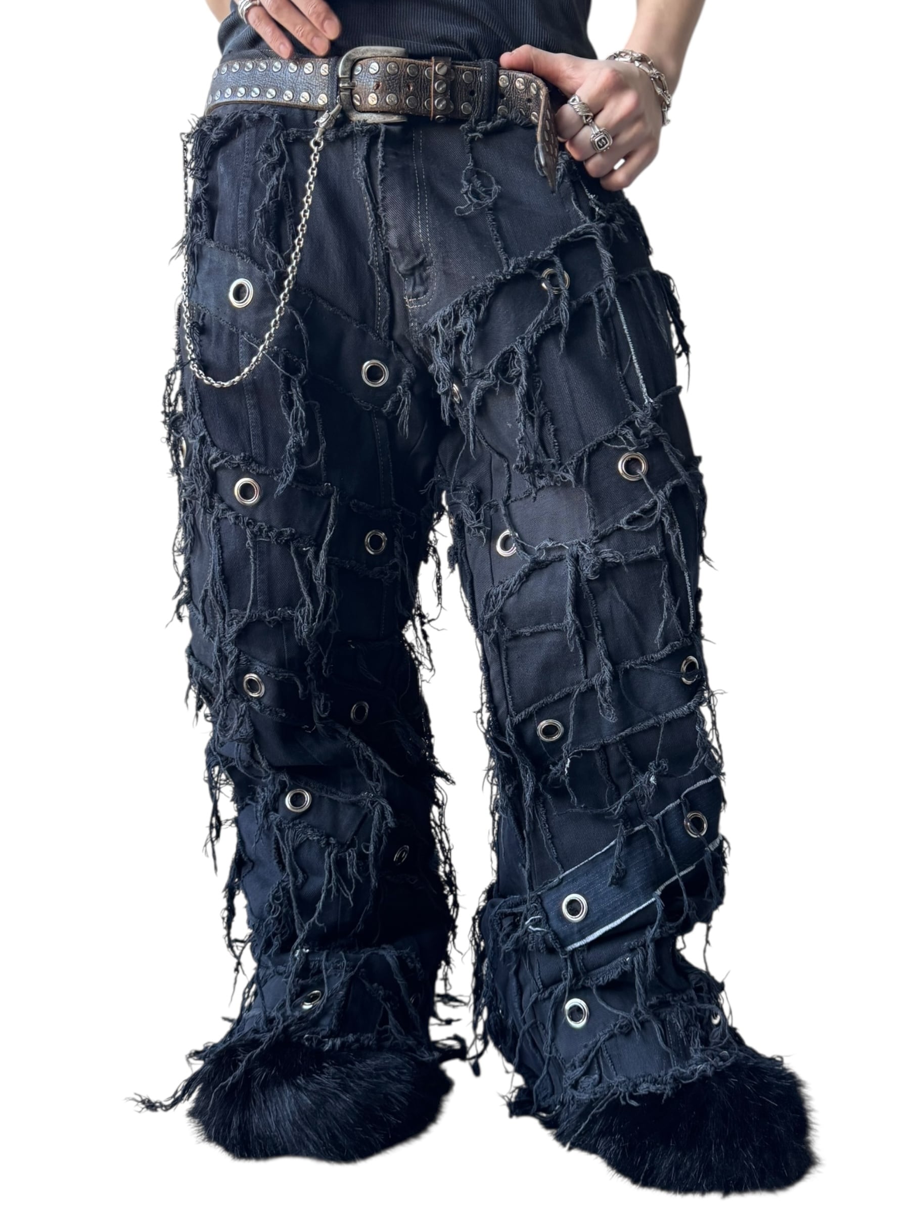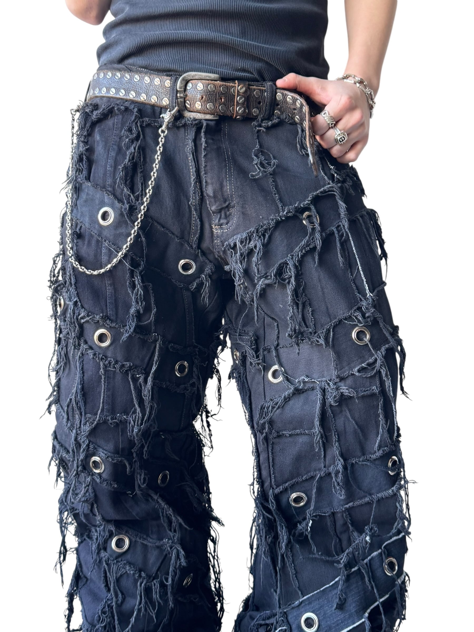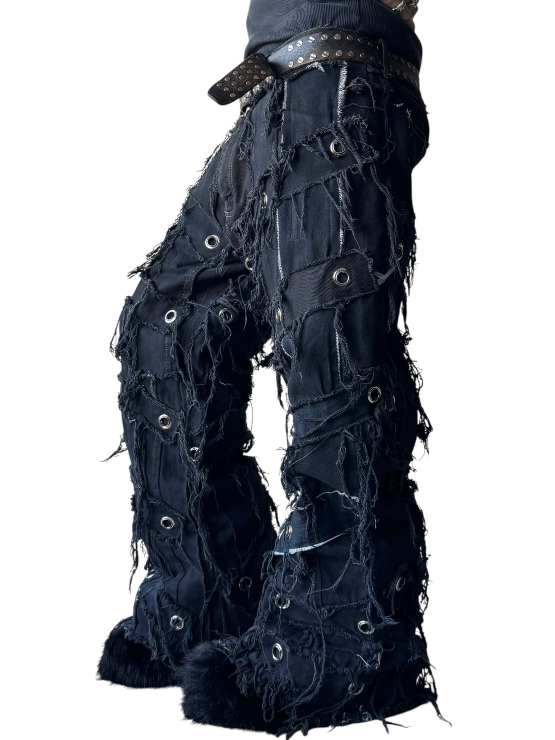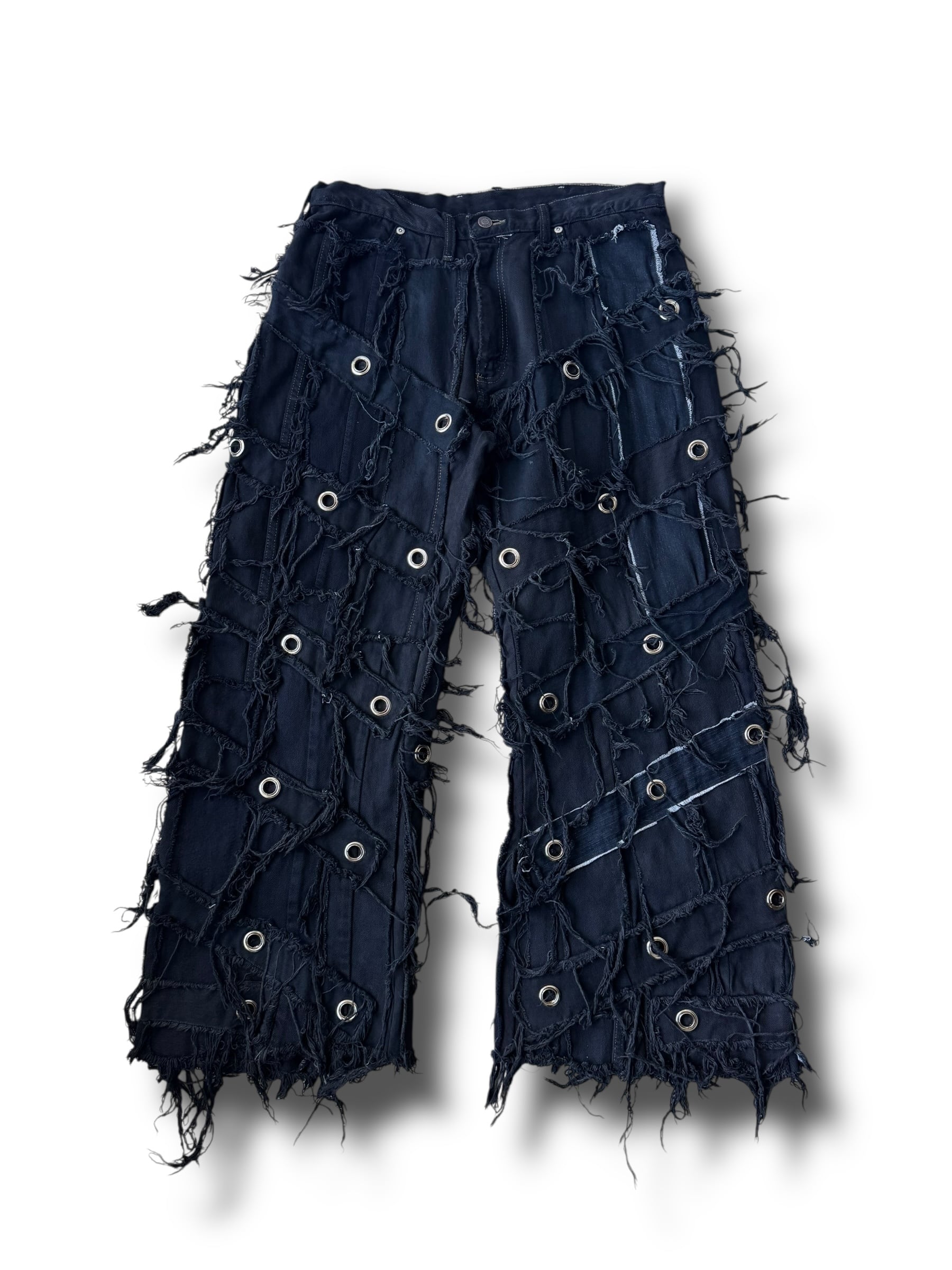 数本のデニムを足して作られているので通常ではあり得ない存在感抜群なメガワイドシルエット❗️
