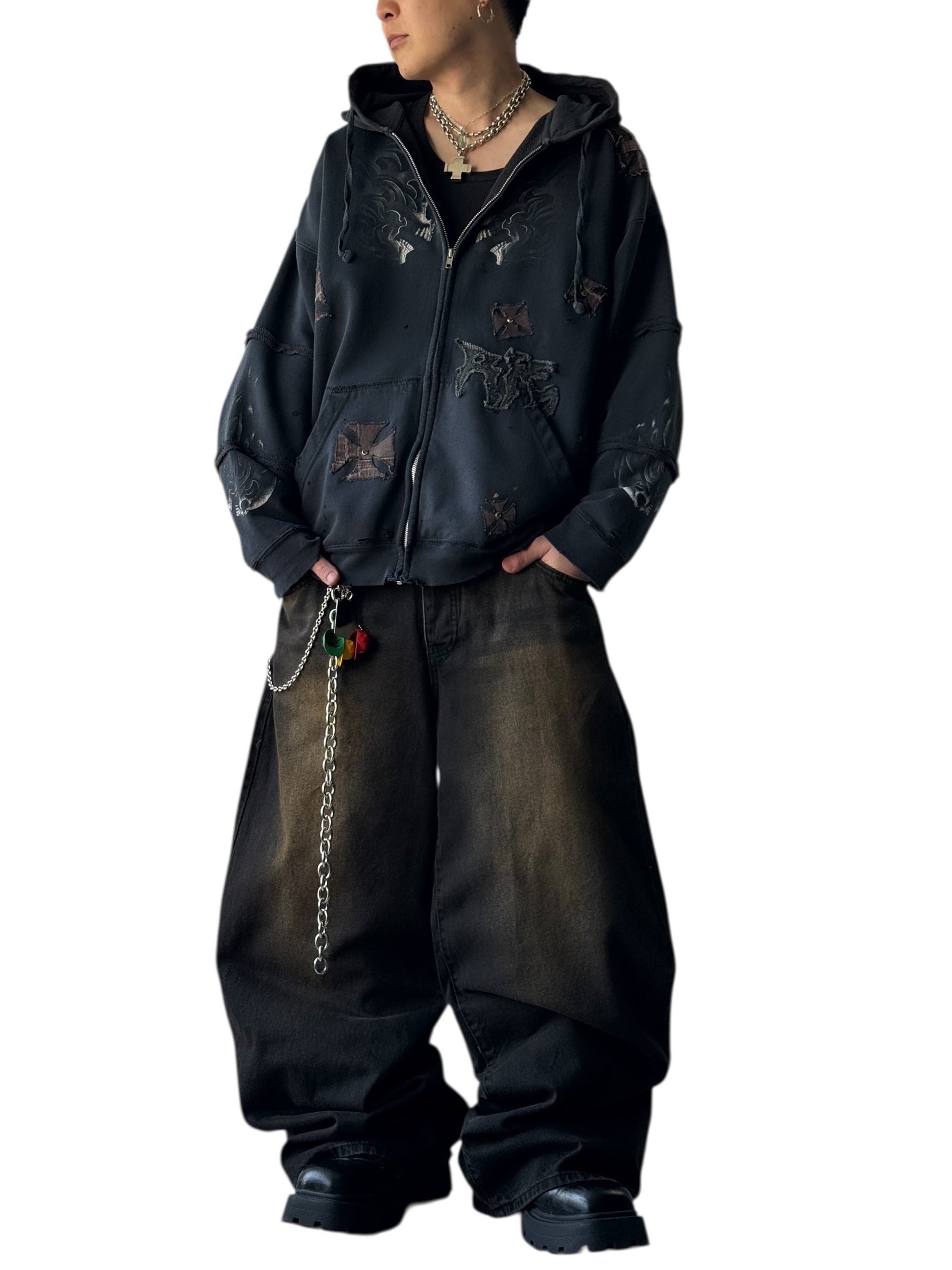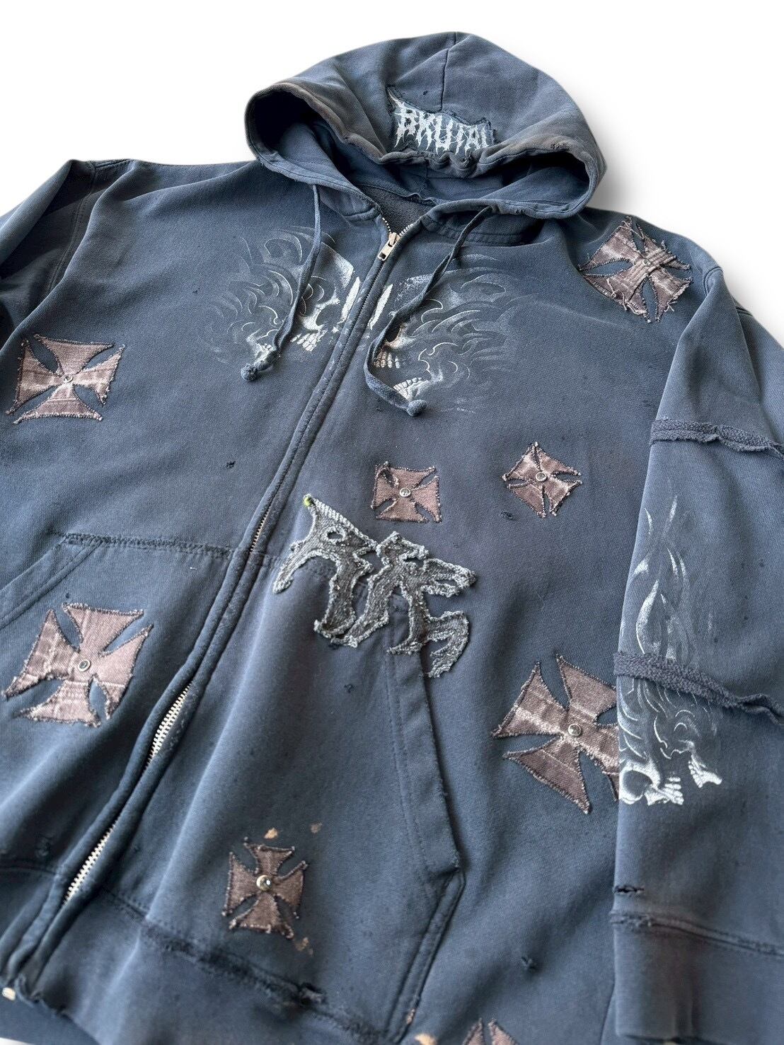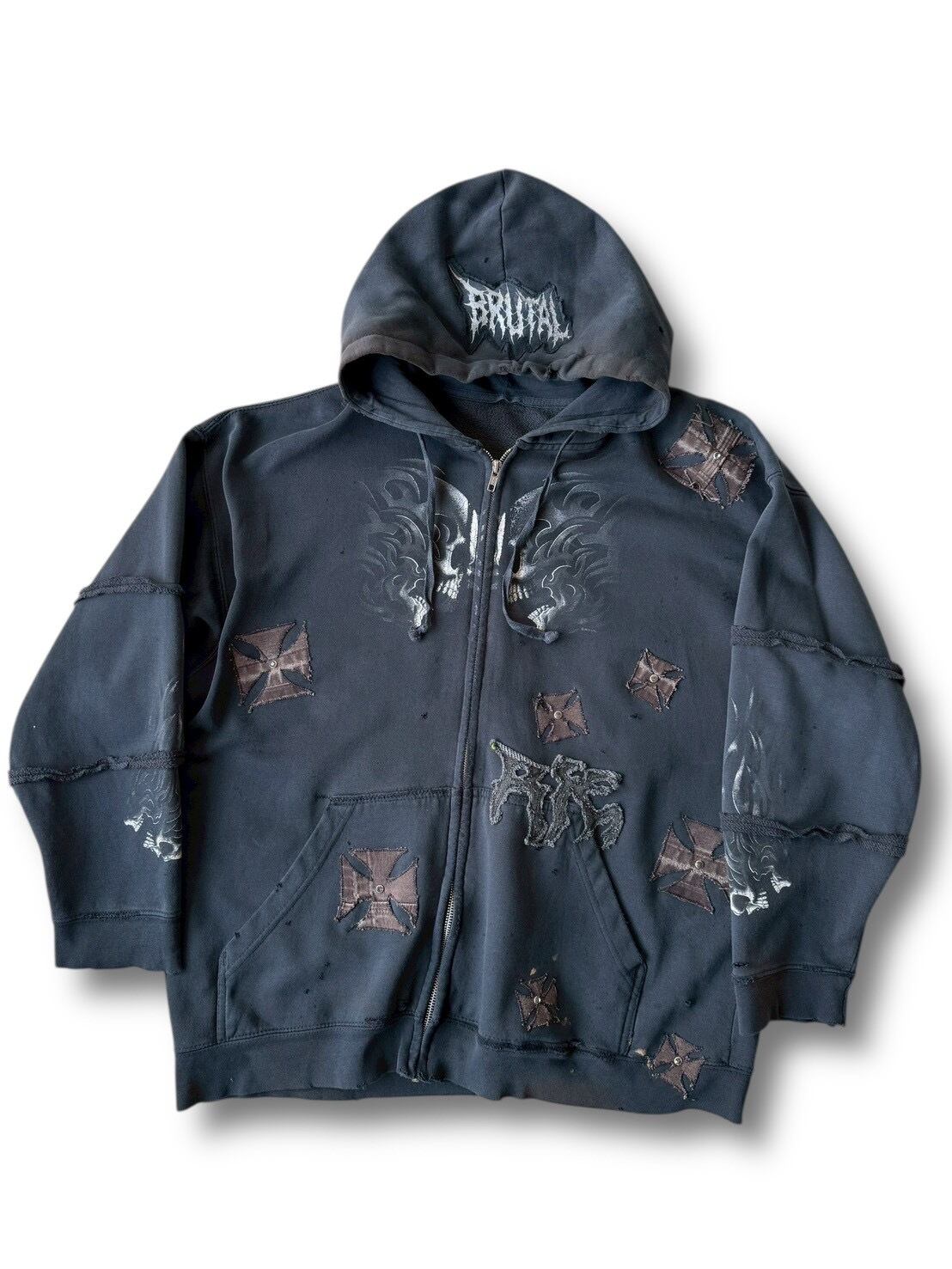 ♾REMADE COLLECTION♾ skull × iron cross motif custom remade design zip up hoodie